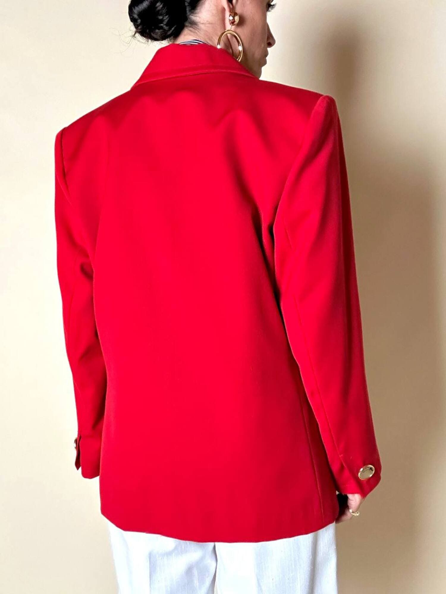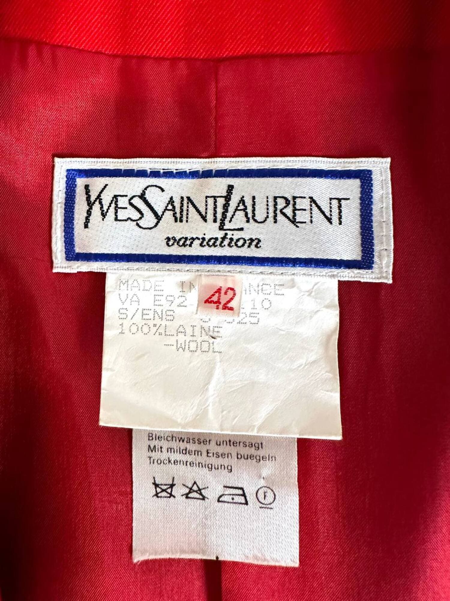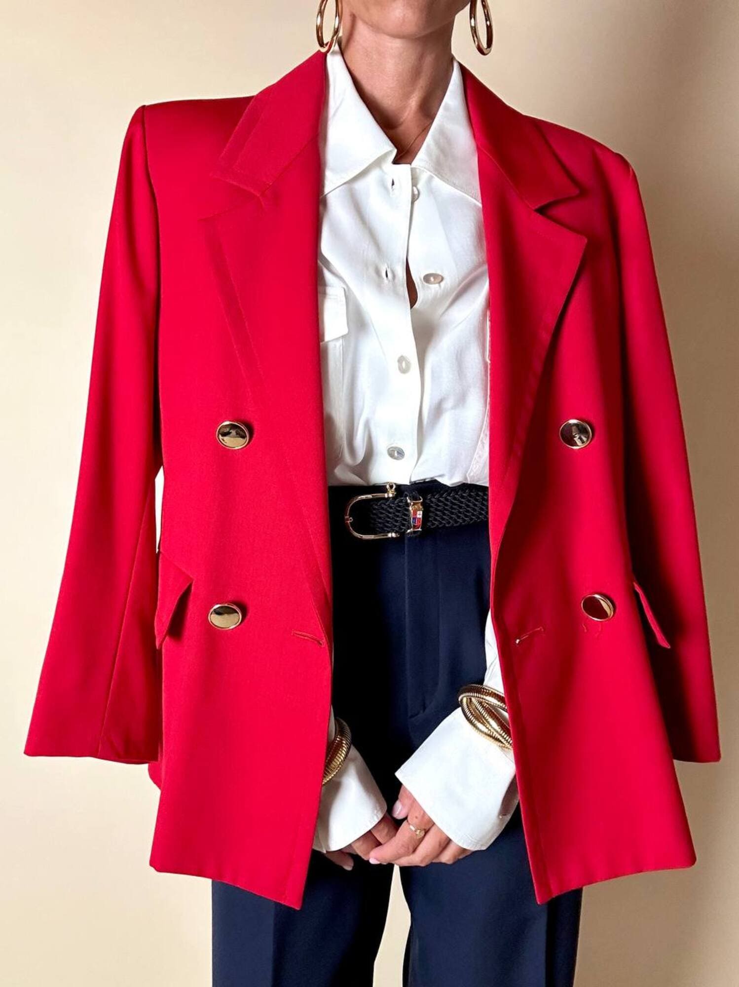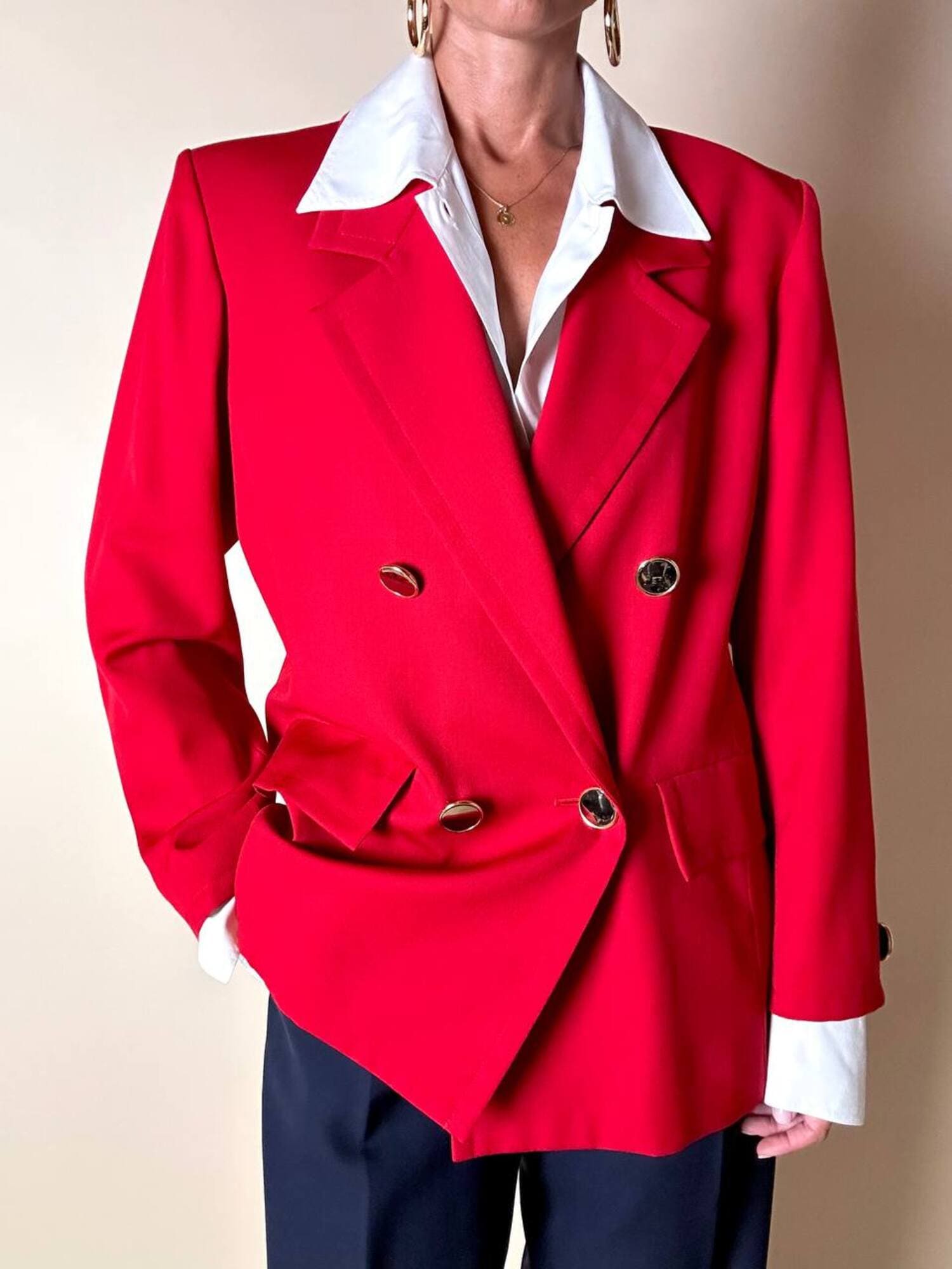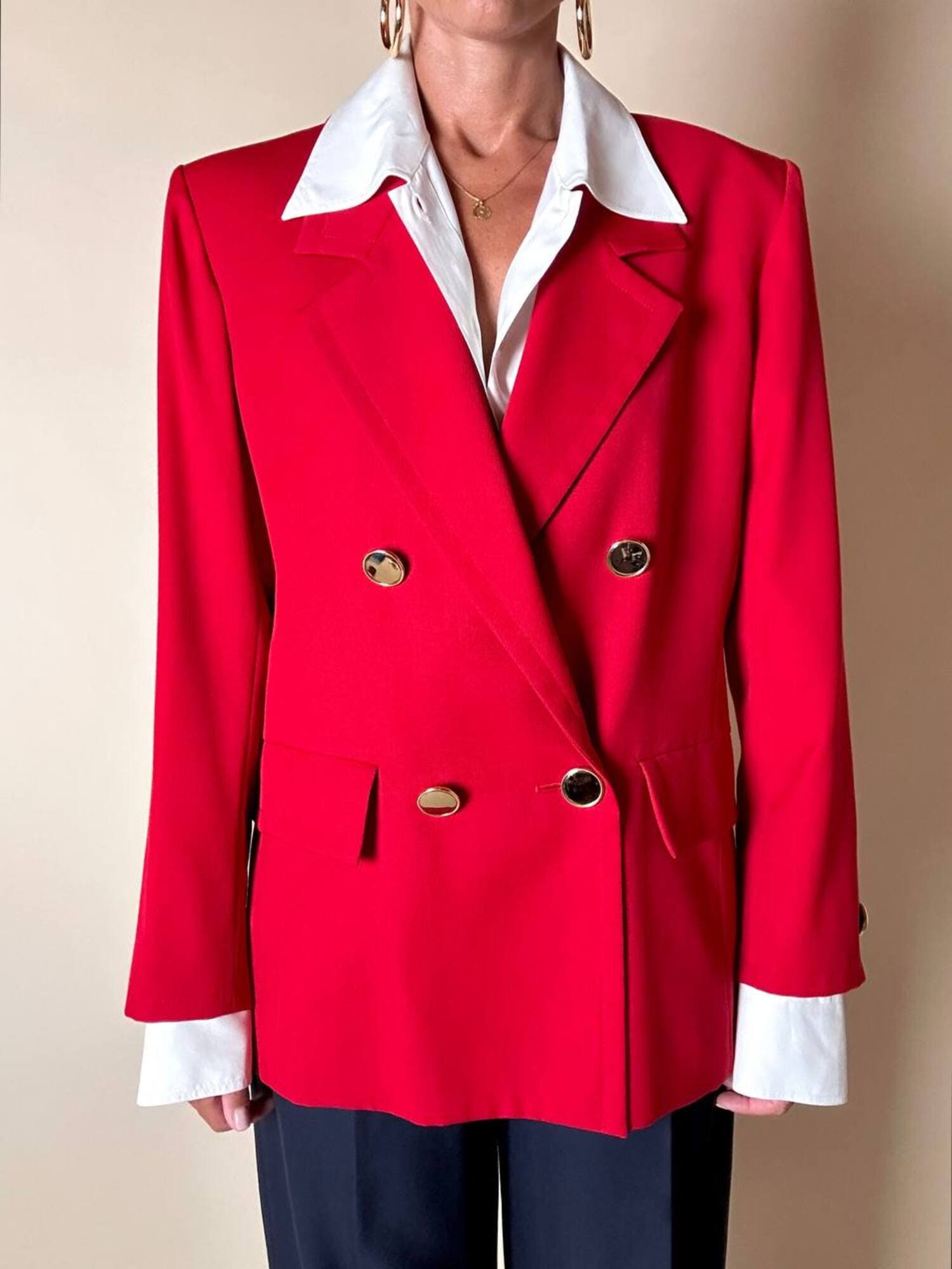 Questo blazer firmato Yves Saint Laurent, linea Variation, espressione raffinata della visione sartoriale della Maison francese, è pensato per chi ama distinguersi con eleganza. Realizzato con un taglio dritto e morbido, abbraccia la figura con disinvoltura, regalando una silhouette decisa. I bottoni dorati rotondi effetto specchio illuminano la giacca con un tocco di audace sofisticatezza. Il rever classico, le due tasche con patta e la fodera tono su tono completano la costruzione impeccabile di un capo pensato per attraversare le stagioni e le mode. Un blazer vintage di lusso da indossare con un semplice jeans o su una gonna a tubino, capace di trasformare ogni outfit in un’affermazione di stile intramontabile.