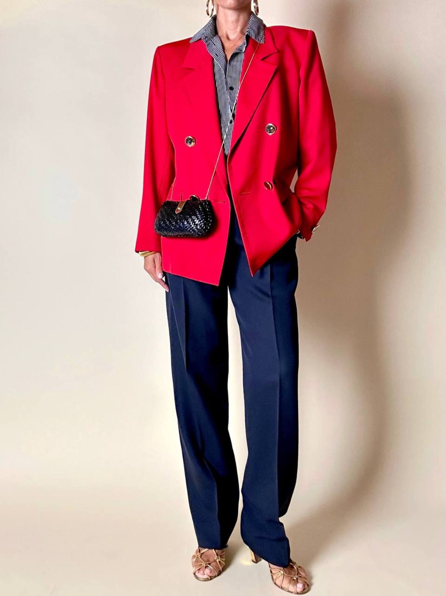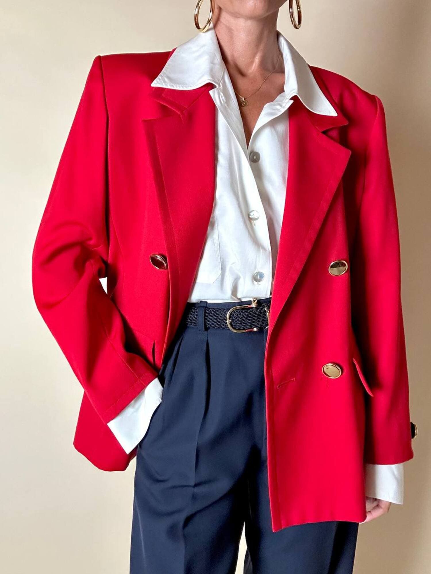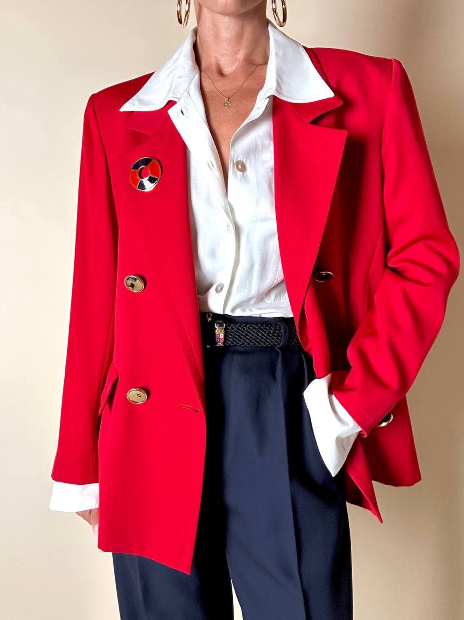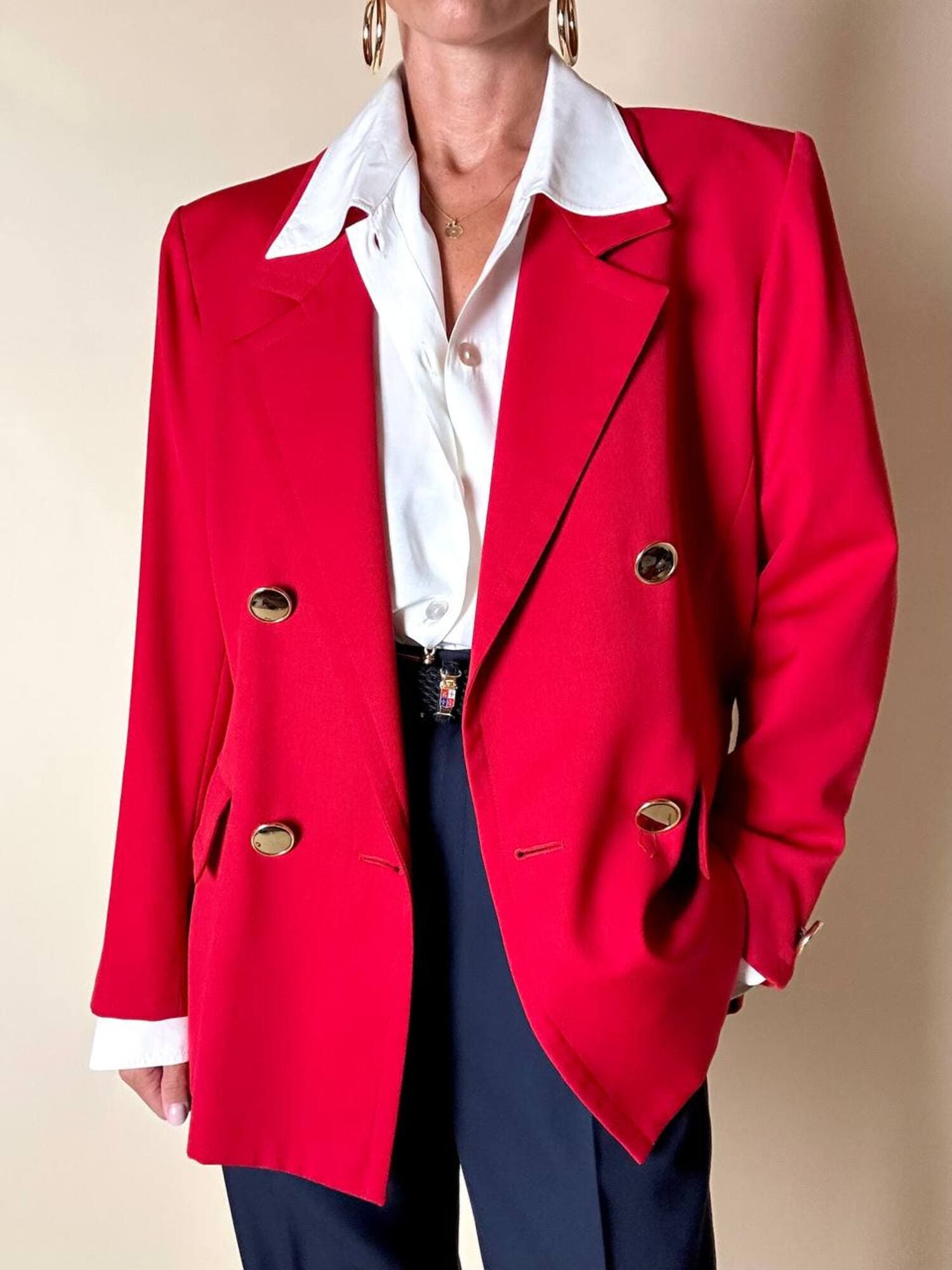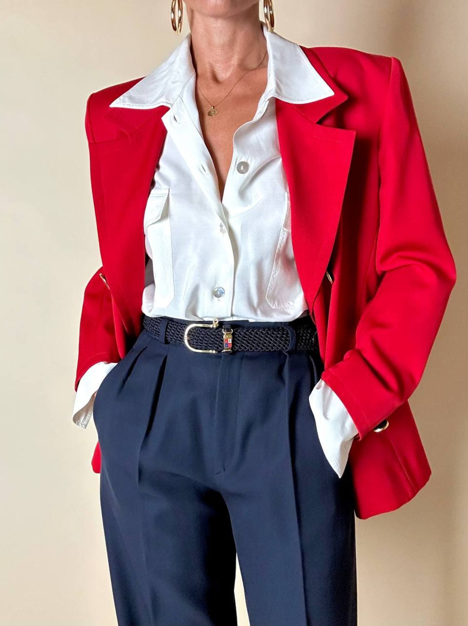 Questo blazer firmato Yves Saint Laurent, linea Variation, espressione raffinata della visione sartoriale della Maison francese, è pensato per chi ama distinguersi con eleganza. Realizzato con un taglio dritto e morbido, abbraccia la figura con disinvoltura, regalando una silhouette decisa. I bottoni dorati rotondi effetto specchio illuminano la giacca con un tocco di audace sofisticatezza. Il rever classico, le due tasche con patta e la fodera tono su tono completano la costruzione impeccabile di un capo pensato per attraversare le stagioni e le mode. Un blazer vintage di lusso da indossare con un semplice jeans o su una gonna a tubino, capace di trasformare ogni outfit in un’affermazione di stile intramontabile.