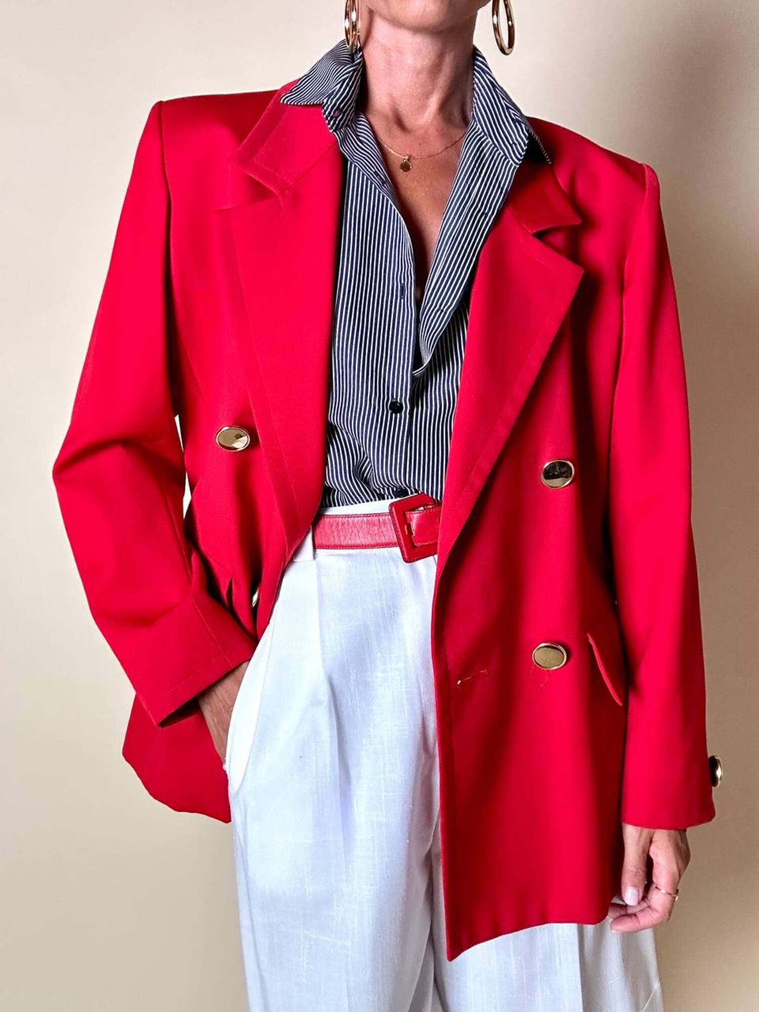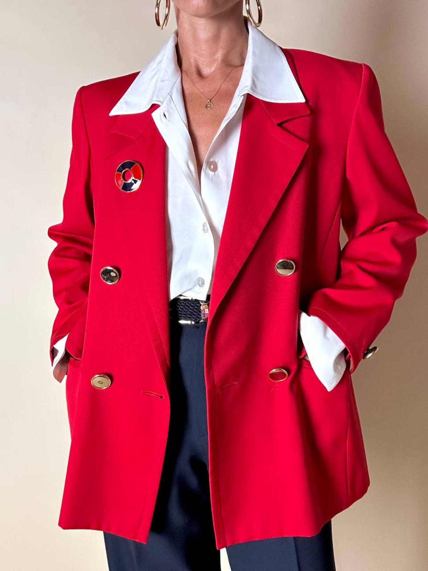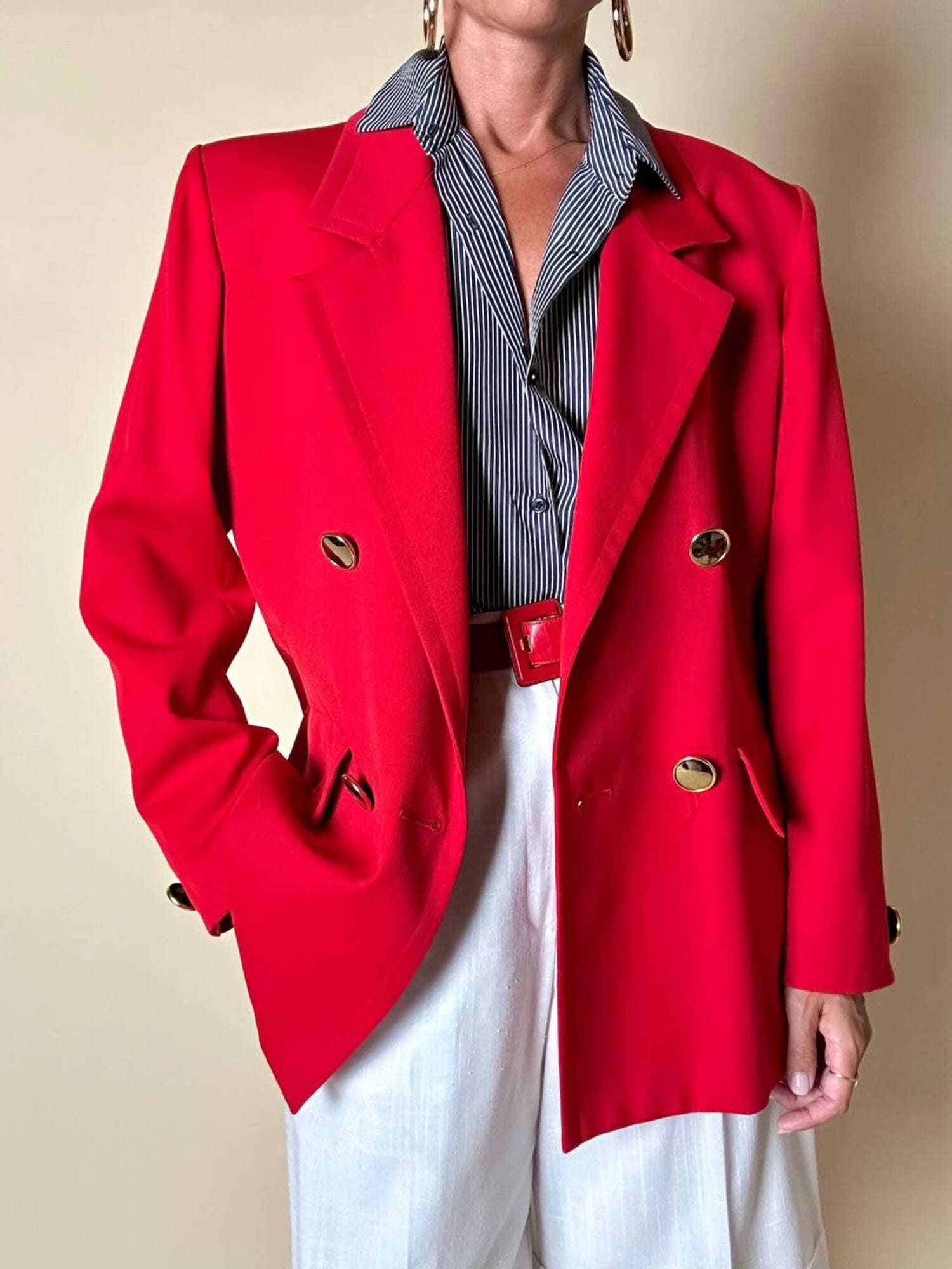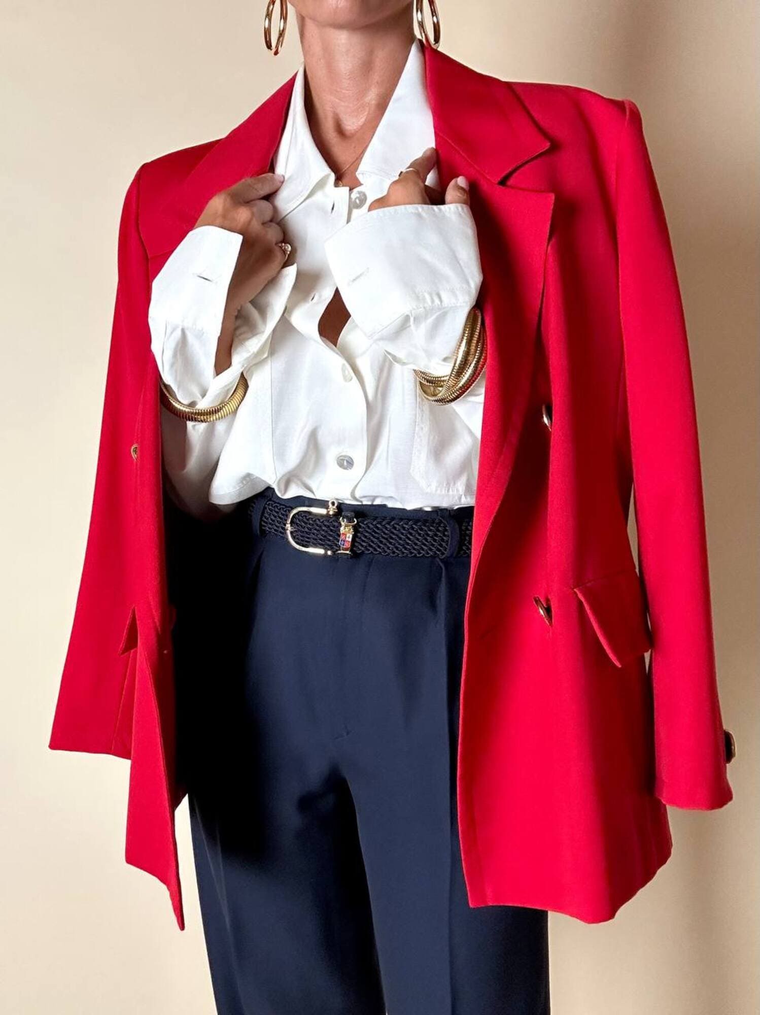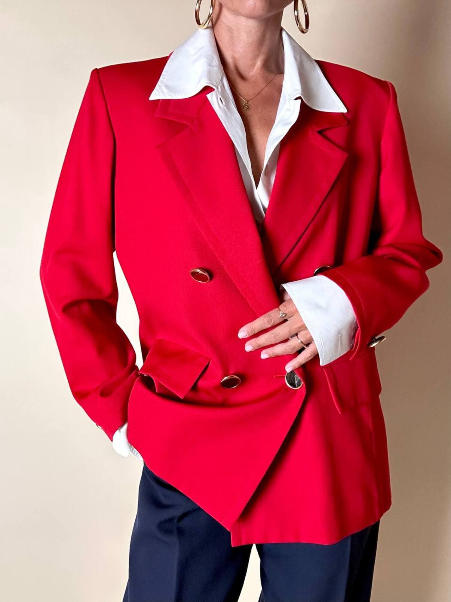 Questo blazer firmato Yves Saint Laurent, linea Variation, espressione raffinata della visione sartoriale della Maison francese, è pensato per chi ama distinguersi con eleganza. Realizzato con un taglio dritto e morbido, abbraccia la figura con disinvoltura, regalando una silhouette decisa. I bottoni dorati rotondi effetto specchio illuminano la giacca con un tocco di audace sofisticatezza. Il rever classico, le due tasche con patta e la fodera tono su tono completano la costruzione impeccabile di un capo pensato per attraversare le stagioni e le mode. Un blazer vintage di lusso da indossare con un semplice jeans o su una gonna a tubino, capace di trasformare ogni outfit in un’affermazione di stile intramontabile.