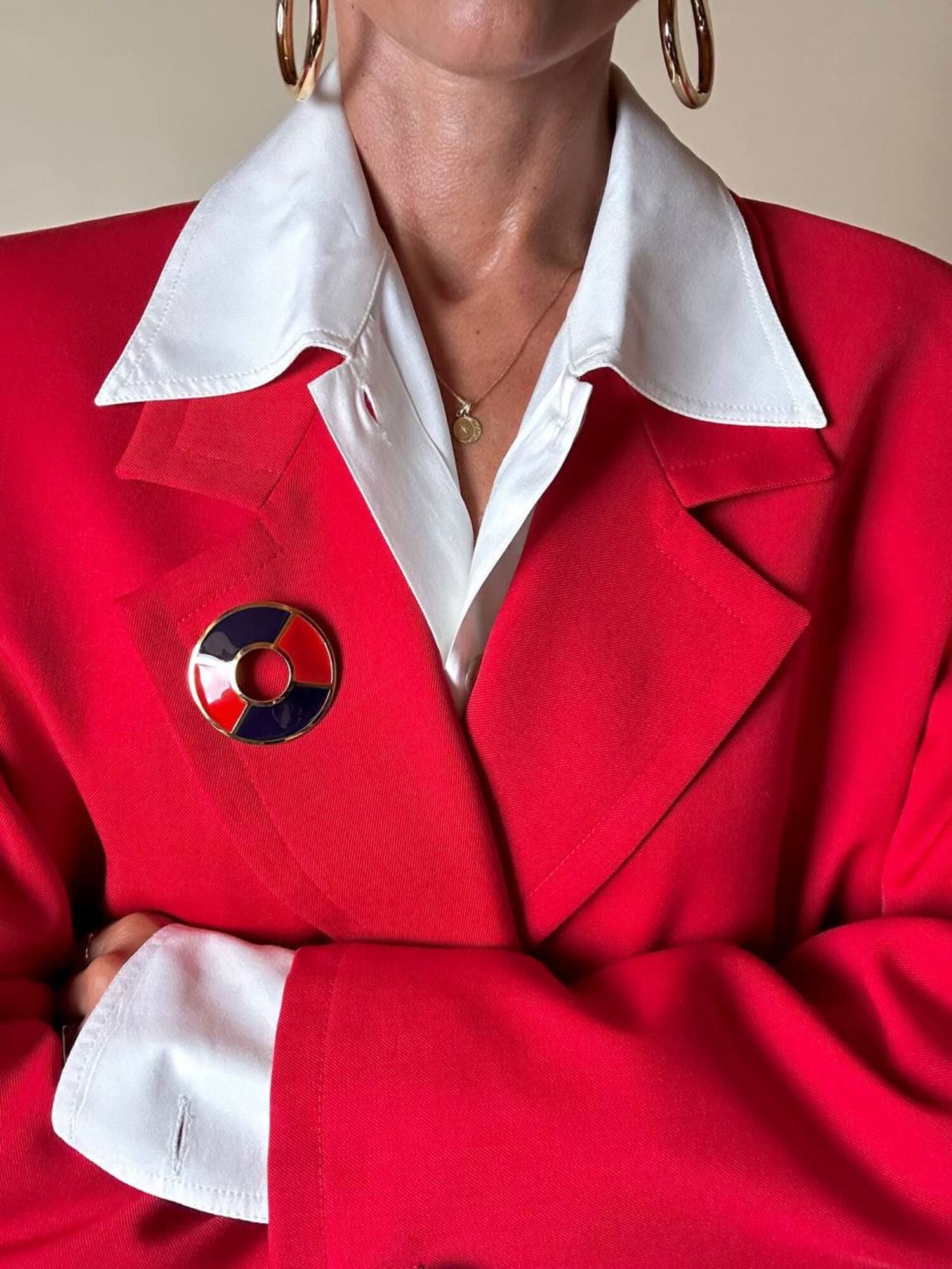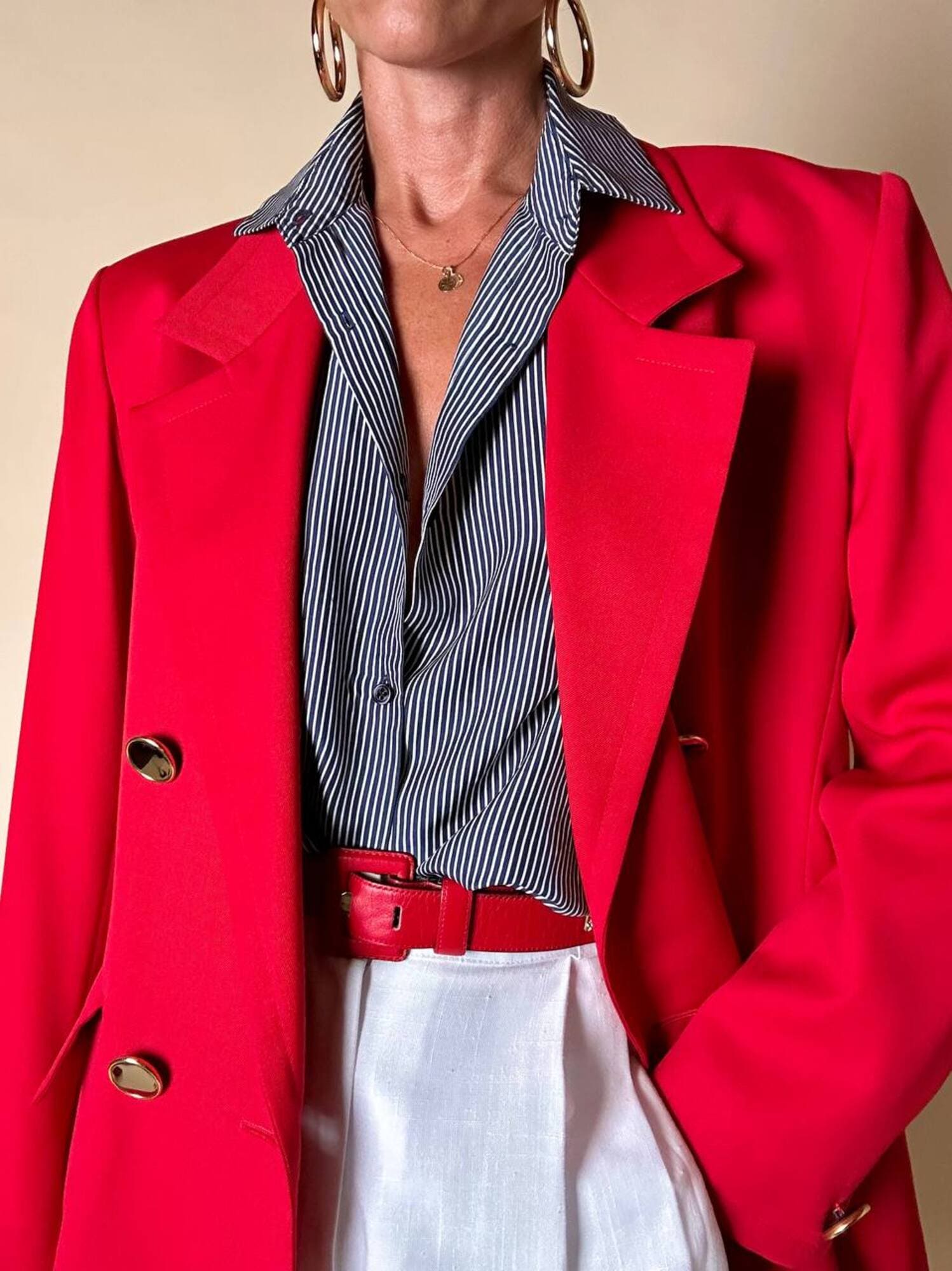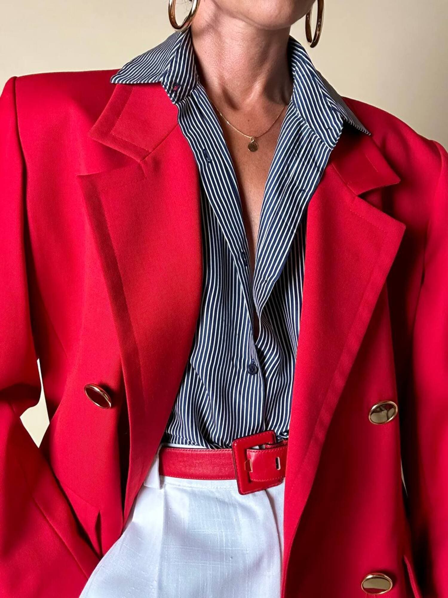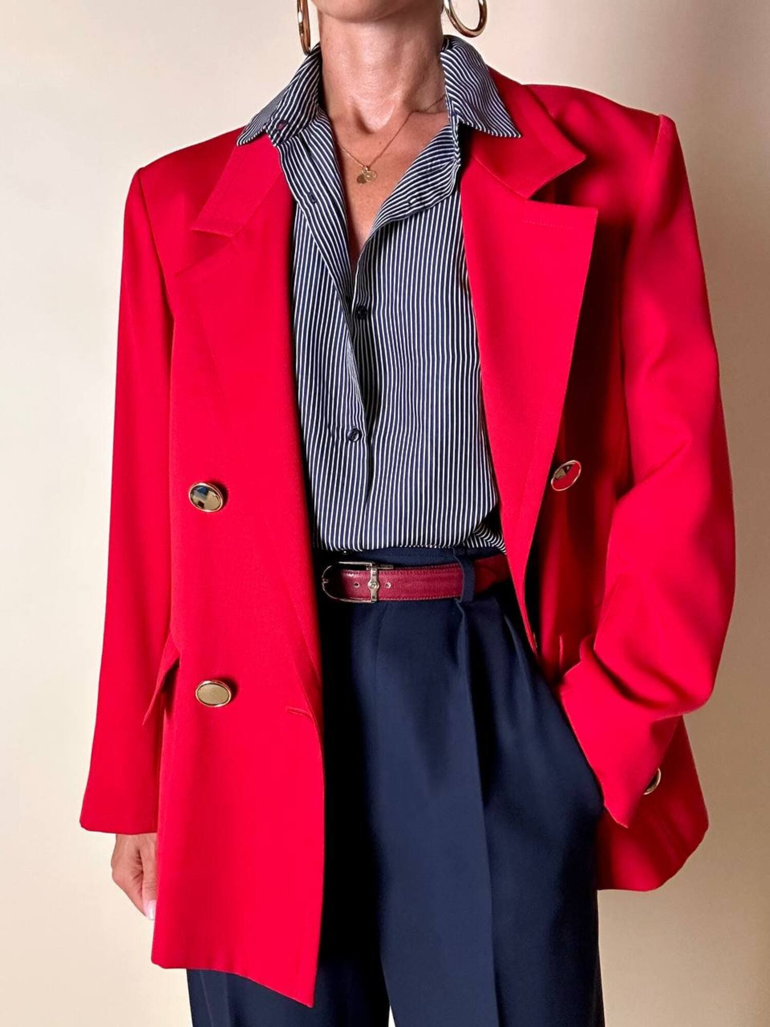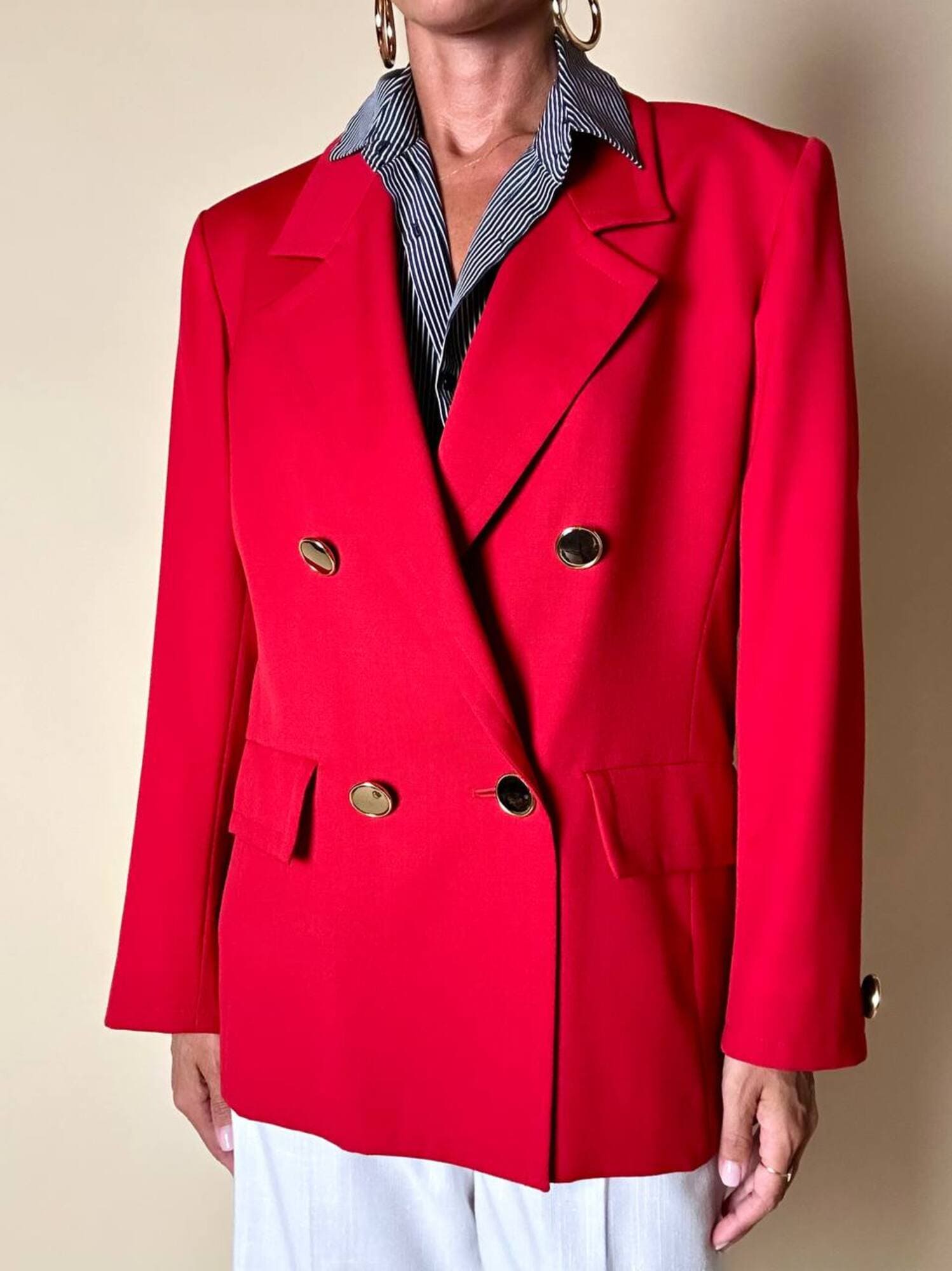 Questo blazer firmato Yves Saint Laurent, linea Variation, espressione raffinata della visione sartoriale della Maison francese, è pensato per chi ama distinguersi con eleganza. Realizzato con un taglio dritto e morbido, abbraccia la figura con disinvoltura, regalando una silhouette decisa. I bottoni dorati rotondi effetto specchio illuminano la giacca con un tocco di audace sofisticatezza. Il rever classico, le due tasche con patta e la fodera tono su tono completano la costruzione impeccabile di un capo pensato per attraversare le stagioni e le mode. Un blazer vintage di lusso da indossare con un semplice jeans o su una gonna a tubino, capace di trasformare ogni outfit in un’affermazione di stile intramontabile.