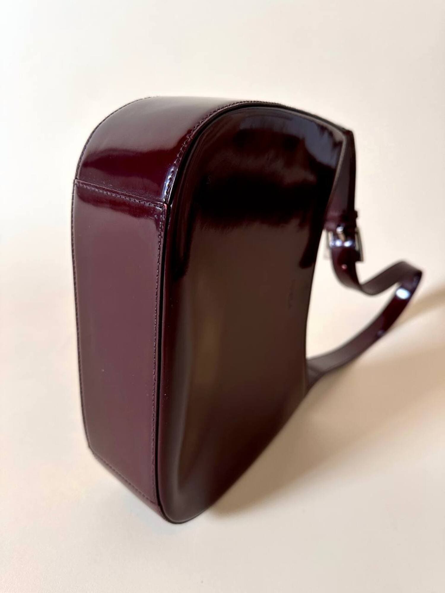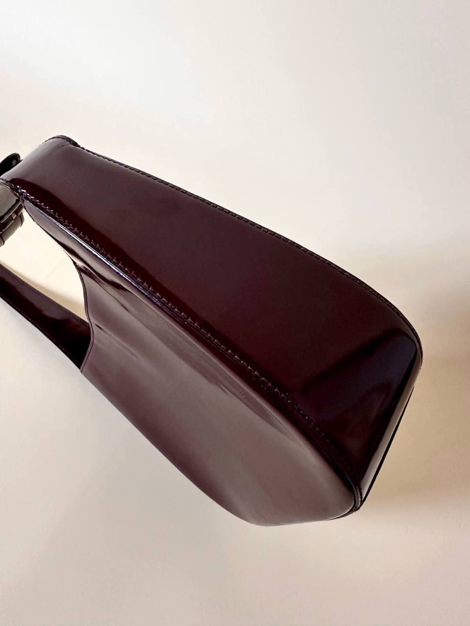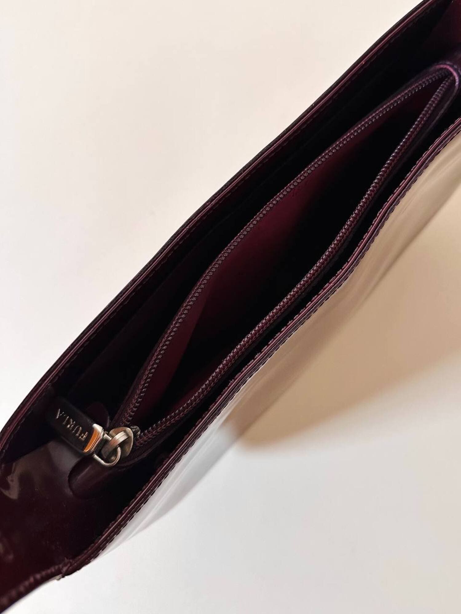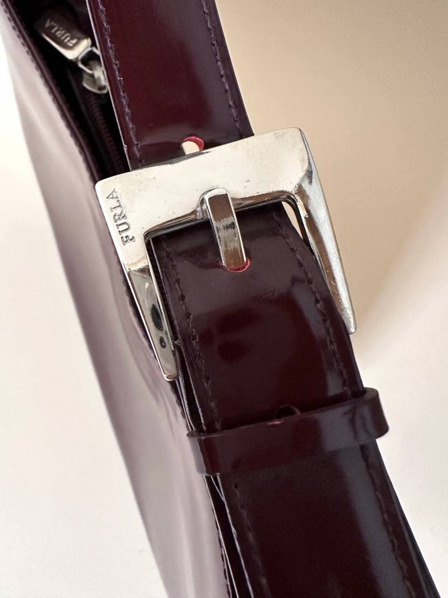 Questa borsa a spalla Furla è realizzata in pelle verniciata color bordeaux, una tonalità che il brand descrive spesso come “ciliegia” o “vinaccia”. La finitura lucida esalta la ricchezza del colore e dona al modello un carattere sofisticato, perfetto per accompagnare sia outfit quotidiani sia look serali. La silhouette è quella della classica hobo a mezzaluna, un modello estremamente versatile che richiama il fascino dello stile Y2K, tornato oggi protagonista nelle tendenze moda. Il design rimane pulito e minimal, valorizzato dal logo Furla impresso discretamente sulla parte frontale. Il manico è regolabile tramite una fibbia in metallo color argento, che aggiunge un dettaglio luminoso e rende la borsa pratica da indossare. L’interno è studiato per essere funzionale pur mantenendo la compattezza del modello: la borsa presenta una fodera in tessuto logato allover e tre scomparti, di cui quello centrale con chiusura a zip. Il tiralampo firmato e il logo a caldo sul lato esterno completano una costruzione curata nei dettagli, segno distintivo della qualità Furla. Perfetta per chi cerca una borsa chic, minimalista e contemporanea, questa hobo bag è un accessorio che aggiunge un tocco raffinato a qualsiasi guardaroba.