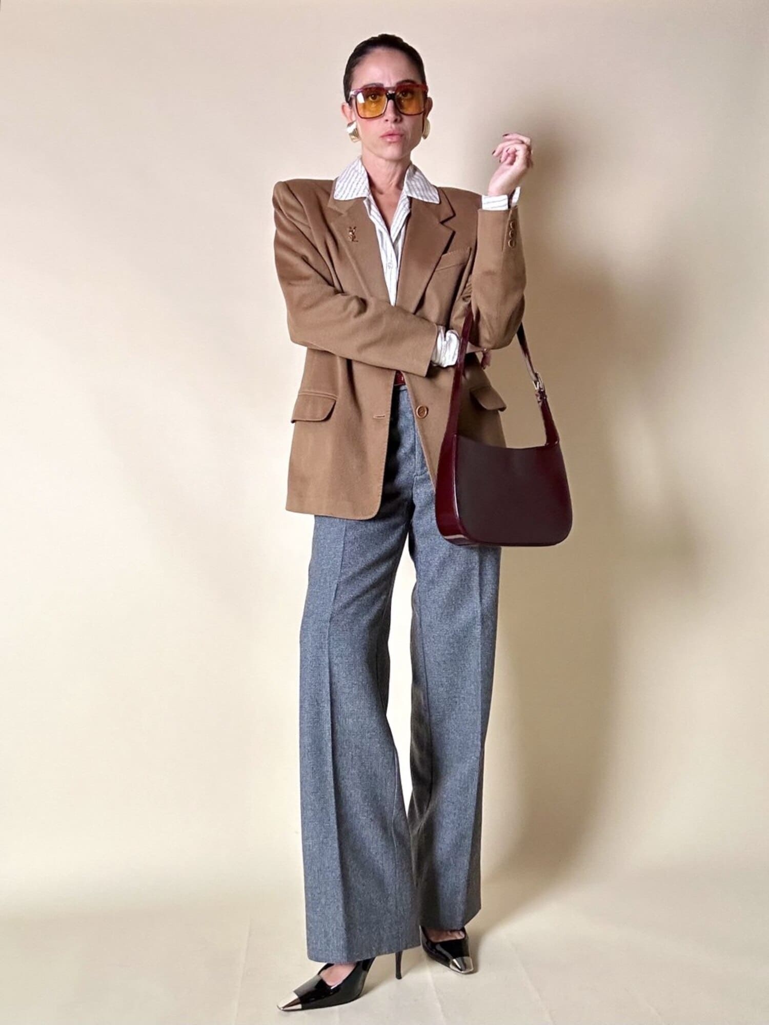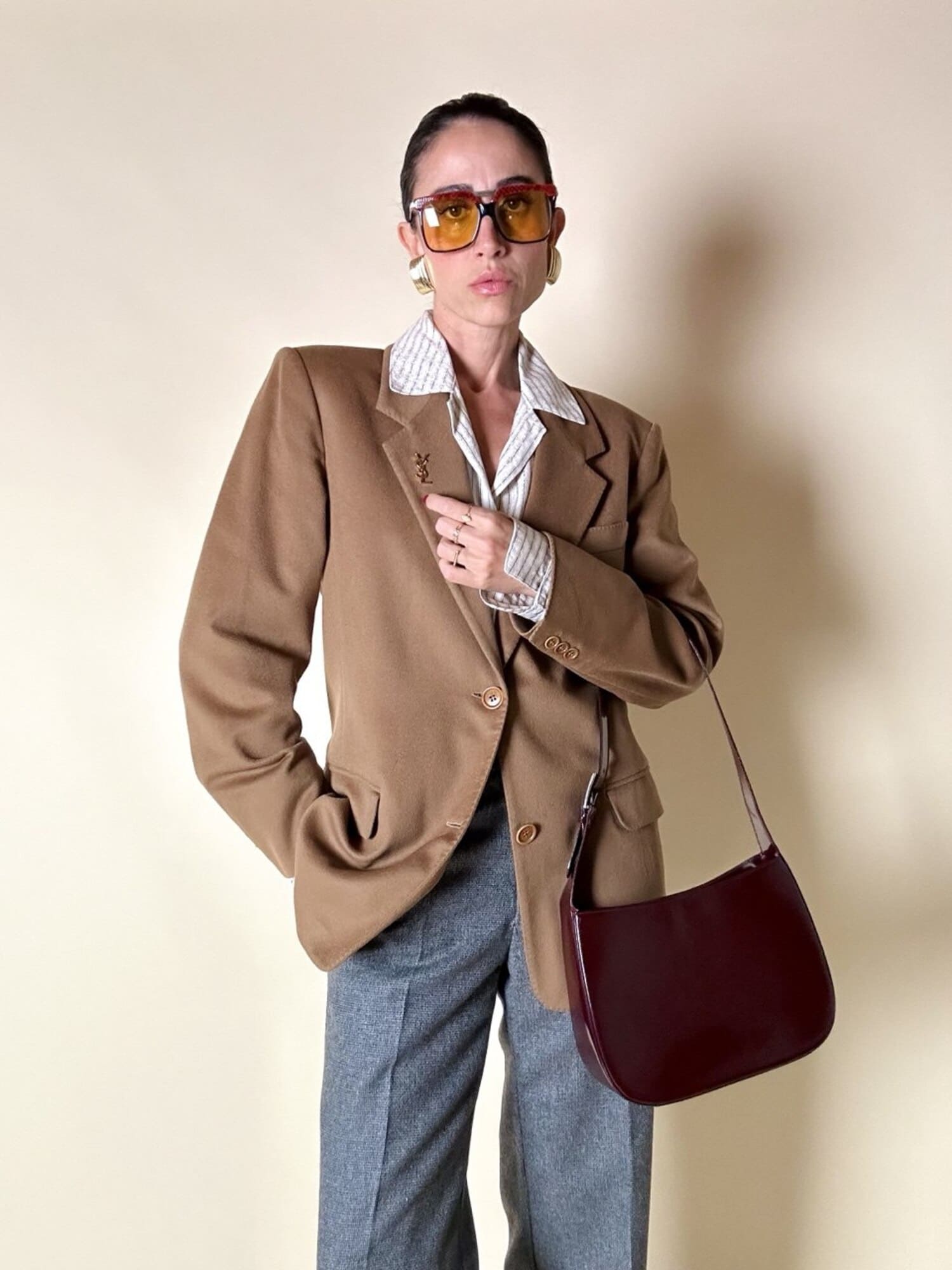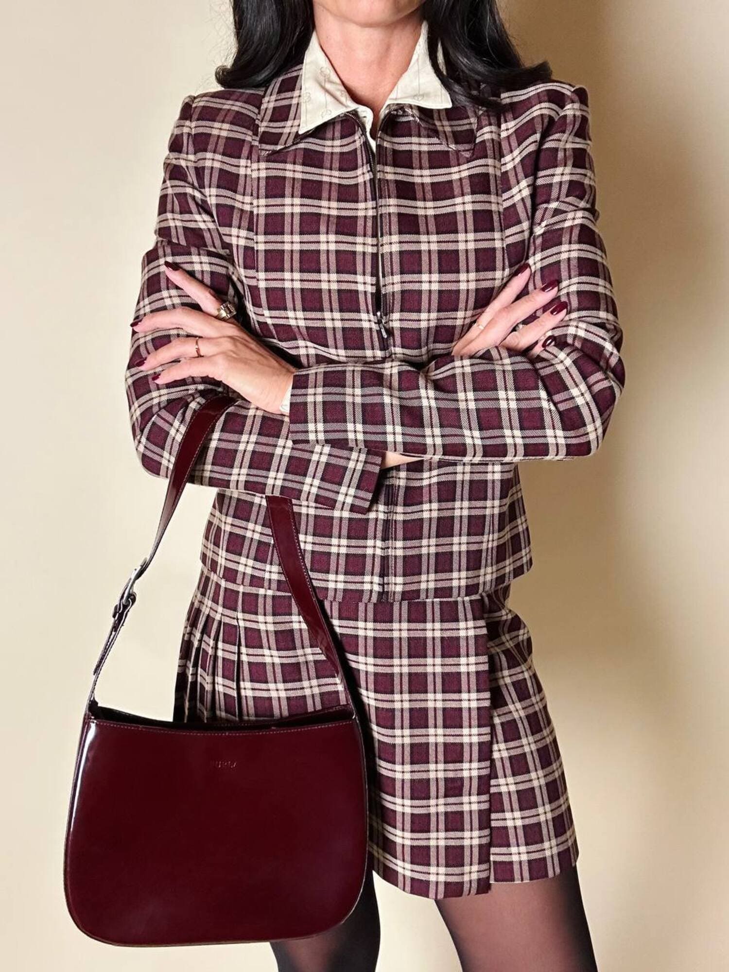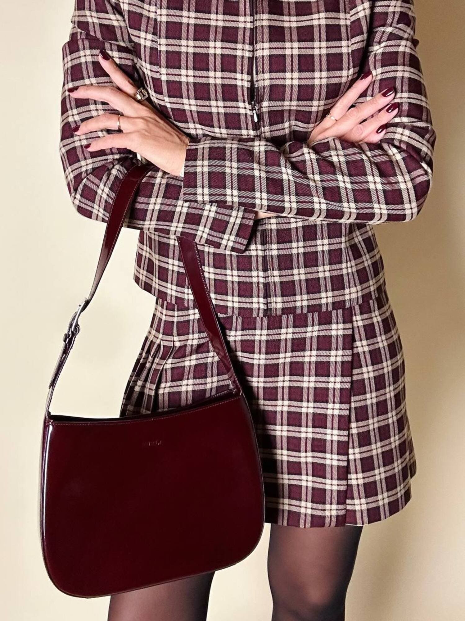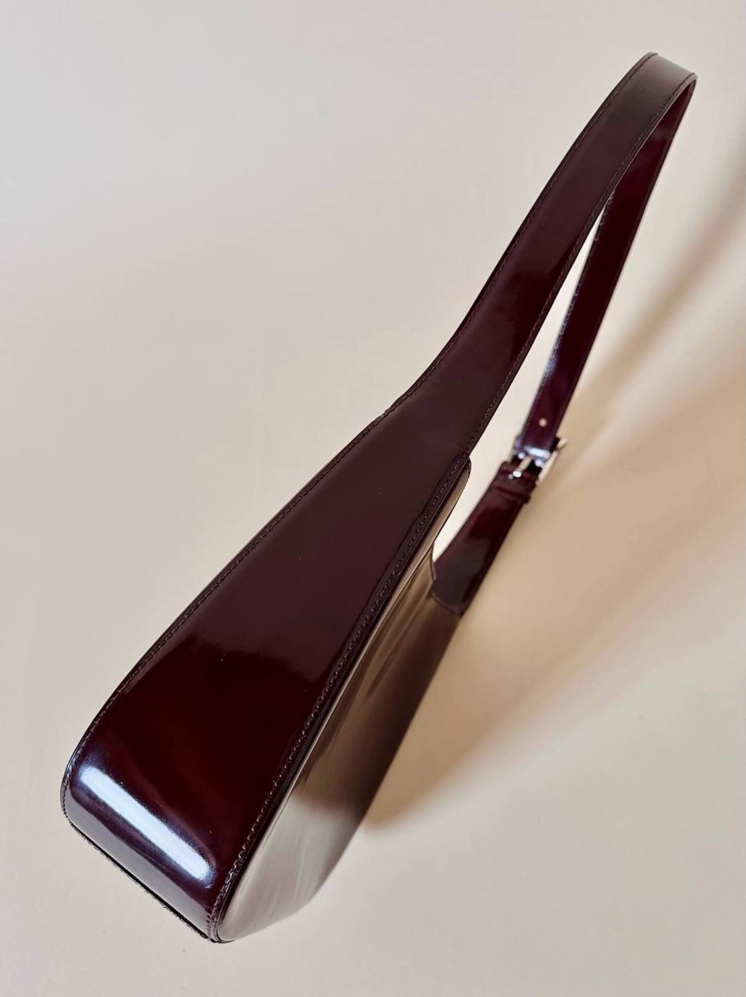 Questa borsa a spalla Furla è realizzata in pelle verniciata color bordeaux, una tonalità che il brand descrive spesso come “ciliegia” o “vinaccia”. La finitura lucida esalta la ricchezza del colore e dona al modello un carattere sofisticato, perfetto per accompagnare sia outfit quotidiani sia look serali. La silhouette è quella della classica hobo a mezzaluna, un modello estremamente versatile che richiama il fascino dello stile Y2K, tornato oggi protagonista nelle tendenze moda. Il design rimane pulito e minimal, valorizzato dal logo Furla impresso discretamente sulla parte frontale. Il manico è regolabile tramite una fibbia in metallo color argento, che aggiunge un dettaglio luminoso e rende la borsa pratica da indossare. L’interno è studiato per essere funzionale pur mantenendo la compattezza del modello: la borsa presenta una fodera in tessuto logato allover e tre scomparti, di cui quello centrale con chiusura a zip. Il tiralampo firmato e il logo a caldo sul lato esterno completano una costruzione curata nei dettagli, segno distintivo della qualità Furla. Perfetta per chi cerca una borsa chic, minimalista e contemporanea, questa hobo bag è un accessorio che aggiunge un tocco raffinato a qualsiasi guardaroba.