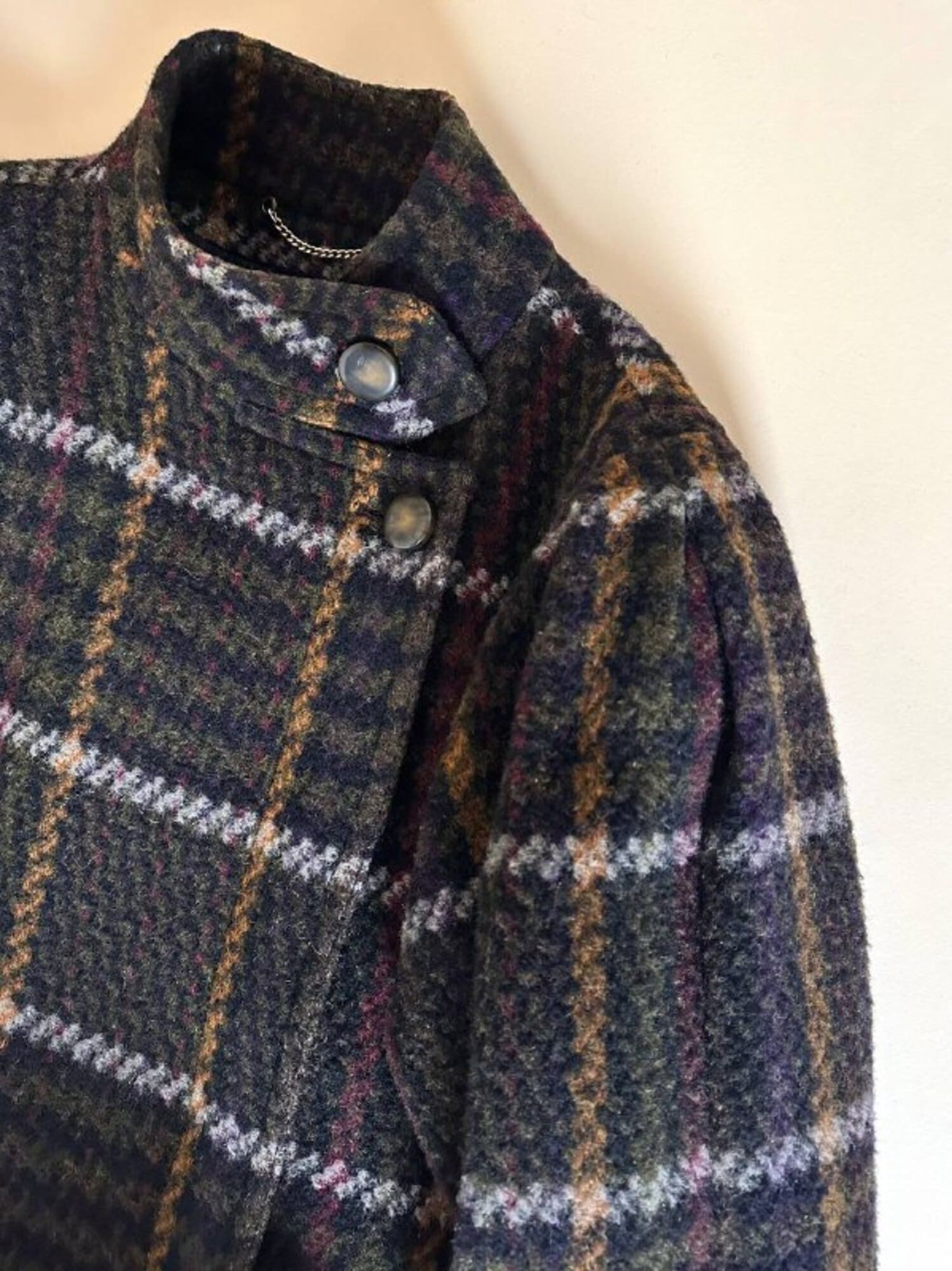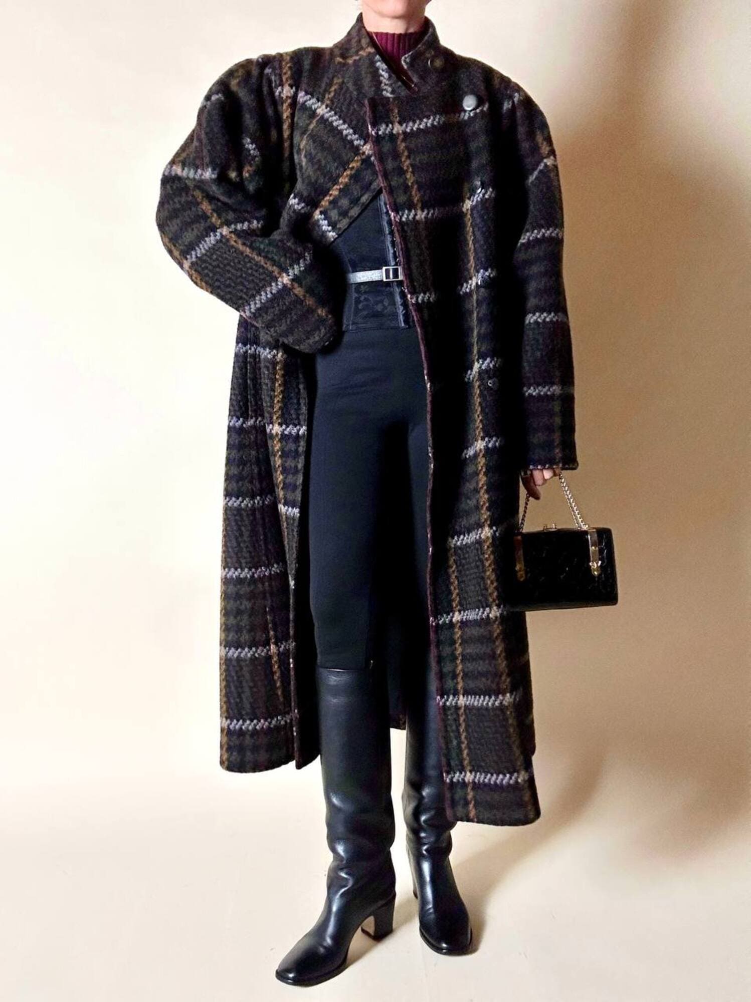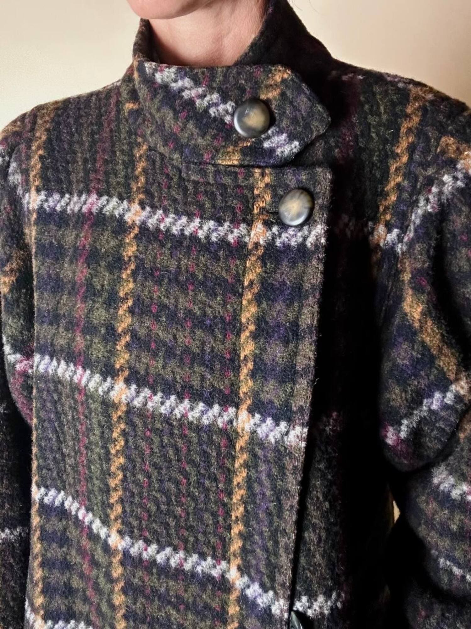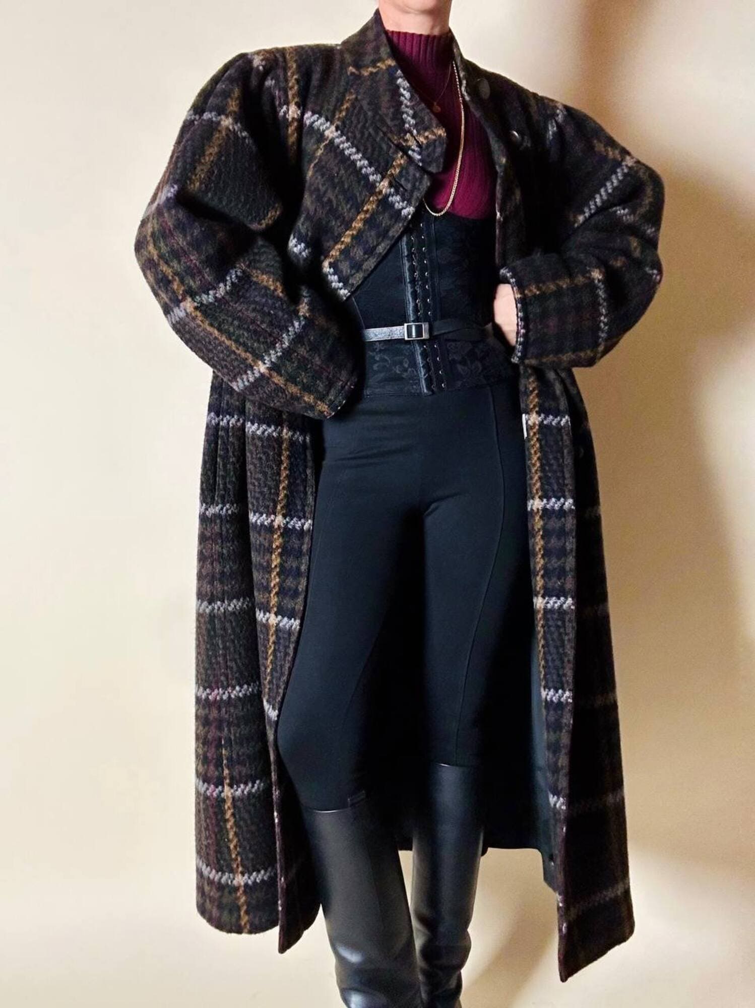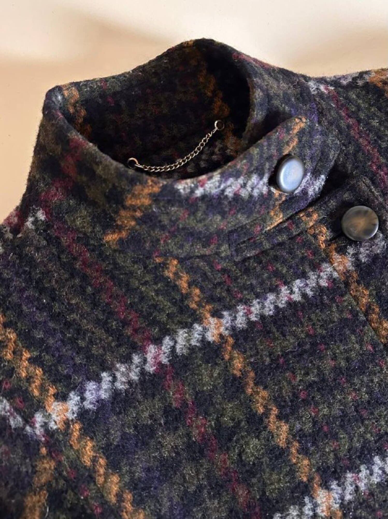 Questo cappotto lungo in pura lana vergine firmato Fashion By Classic celebra la tradizione del tartan con un’estetica contemporanea e ricercata. Il modello lungo e svasato valorizza la silhouette con fluidità, mentre la costruzione doppiopetto si distingue grazie all’abbottonatura asimmetrica, dettaglio sofisticato che aggiunge dinamismo e personalità al design. I primi due bottoni, grandi e a vista, sono realizzati in resina effetto corno, scelti per dare carattere e un accento materico. Il resto dell’abbottonatura rimane a scomparsa, garantendo una linea pulita ed essenziale. Le tasche laterali a filo aggiungono funzionalità mantenendo la linea rigorosa. Completamente foderato in nero, assicura massimo comfort, struttura impeccabile e una vestibilità perfetta. Un cappotto caldo, sofisticato e dall’anima iconica, ideale per chi ama un’estetica classica e intramontabile.