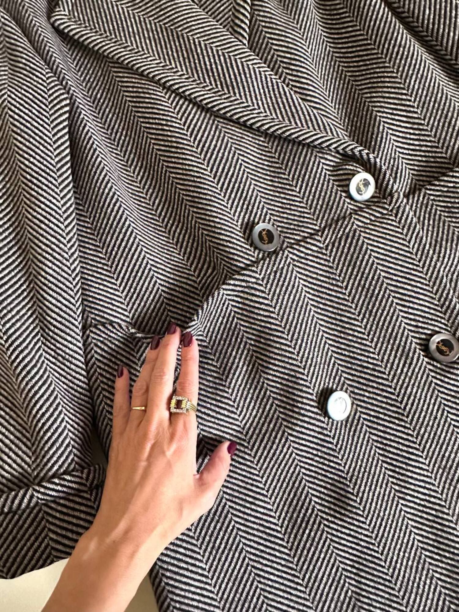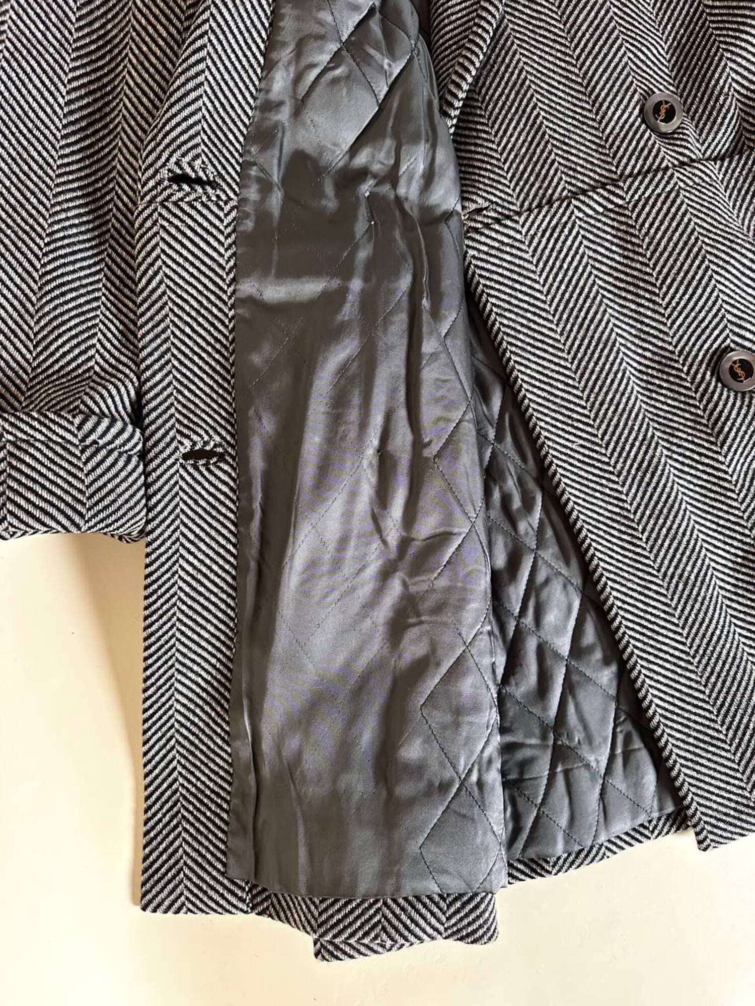 Cappotto sartoriale in lana spinata con bottoni Yves Saint Laurent