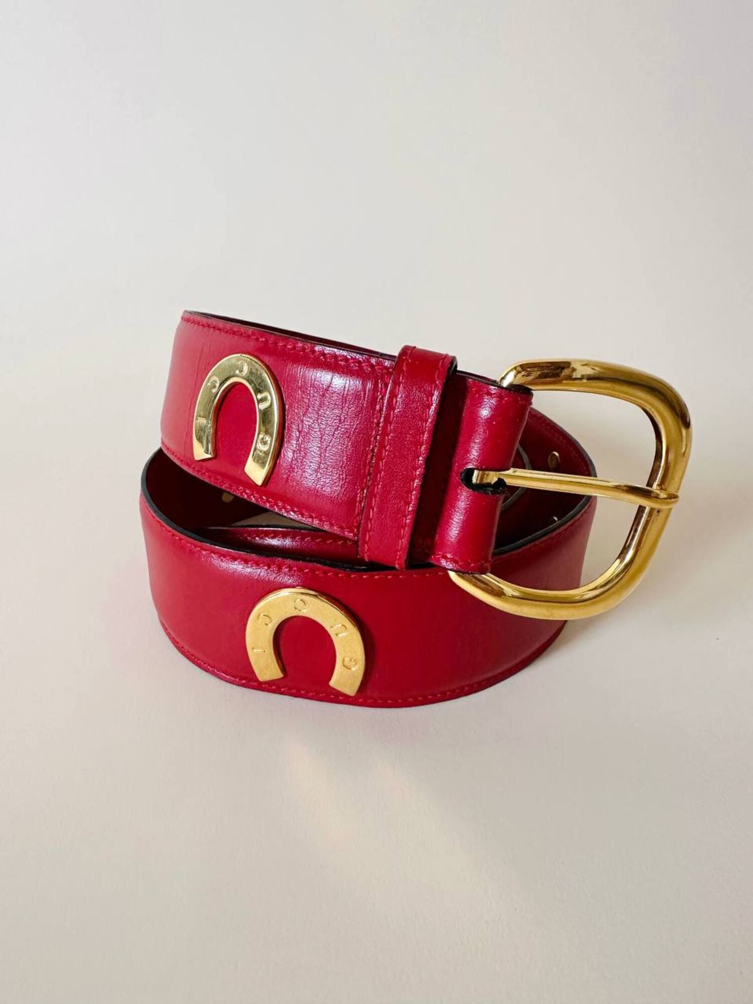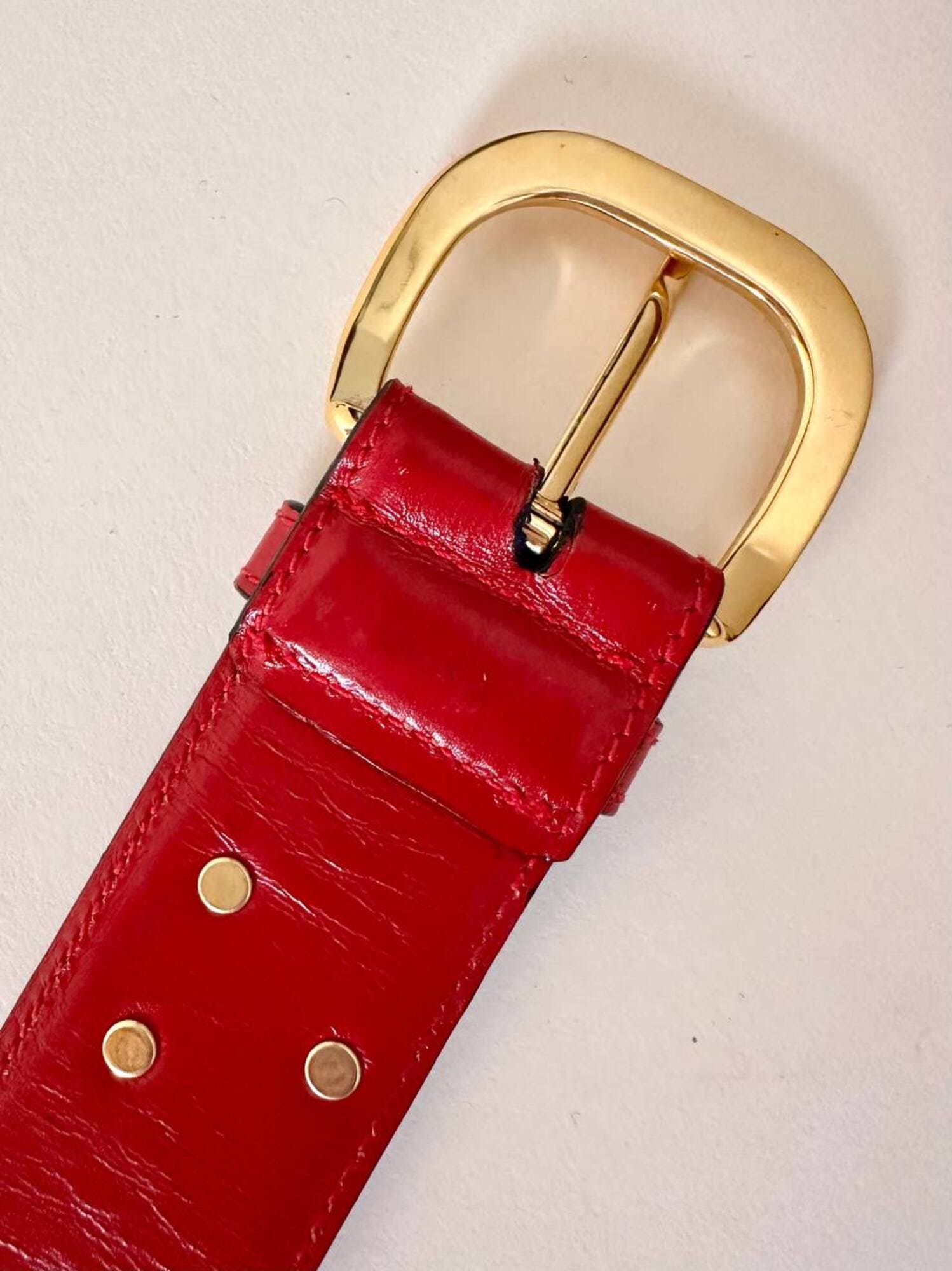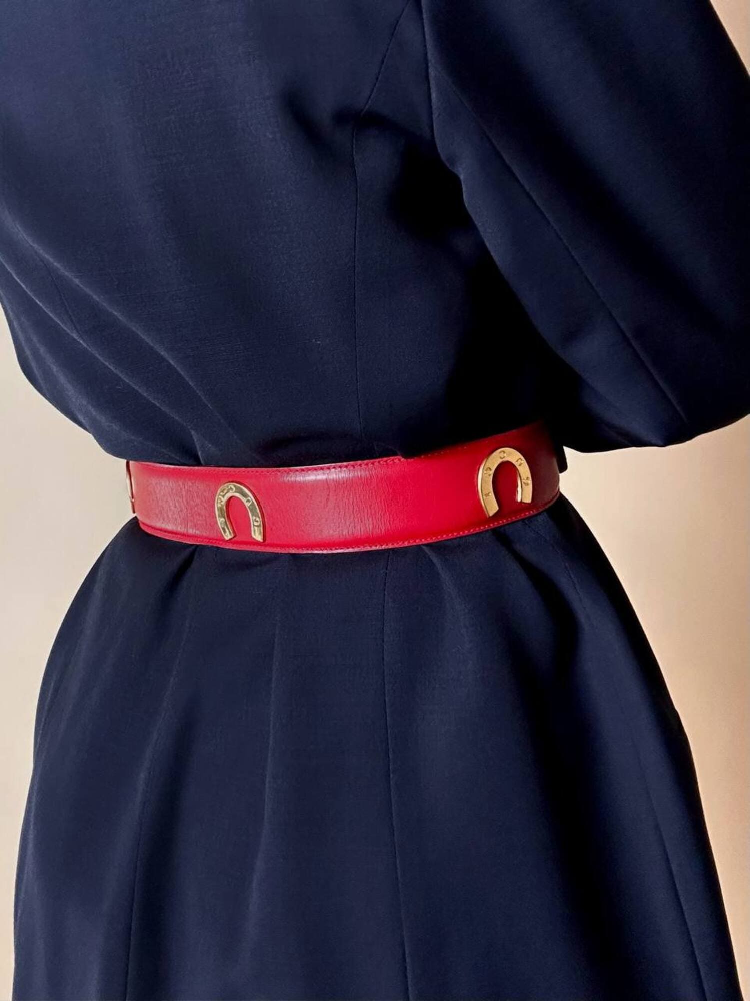 Questa cintura Gucci vintage in pelle rossa, impreziosita da borchie dorate a forma di ferro di cavallo, è un pezzo raro, carico di personalità e perfetto per chi ama distinguersi con eleganza. L’hardware in metallo dorato dona luce e carattere, mentre la tonalità rosso intenso della pelle richiama una femminilità decisa e sofisticata. Un accessorio che incarna l’estetica iconica di Gucci, pur senza marcature interne, come spesso accade nei pezzi d’archivio o nei capi provenienti da collezioni passate. Ogni dettaglio, dalla finitura delle borchie al taglio della pelle, restituisce la cura e l’artigianalità che definiscono il DNA della maison fiorentina. Perfetta per elevare un denim sartoriale o per spezzare un total look monocromatico, questa cintura Gucci è una dichiarazione di stile senza tempo, pensata per chi sa riconoscere il valore della moda autentica.
