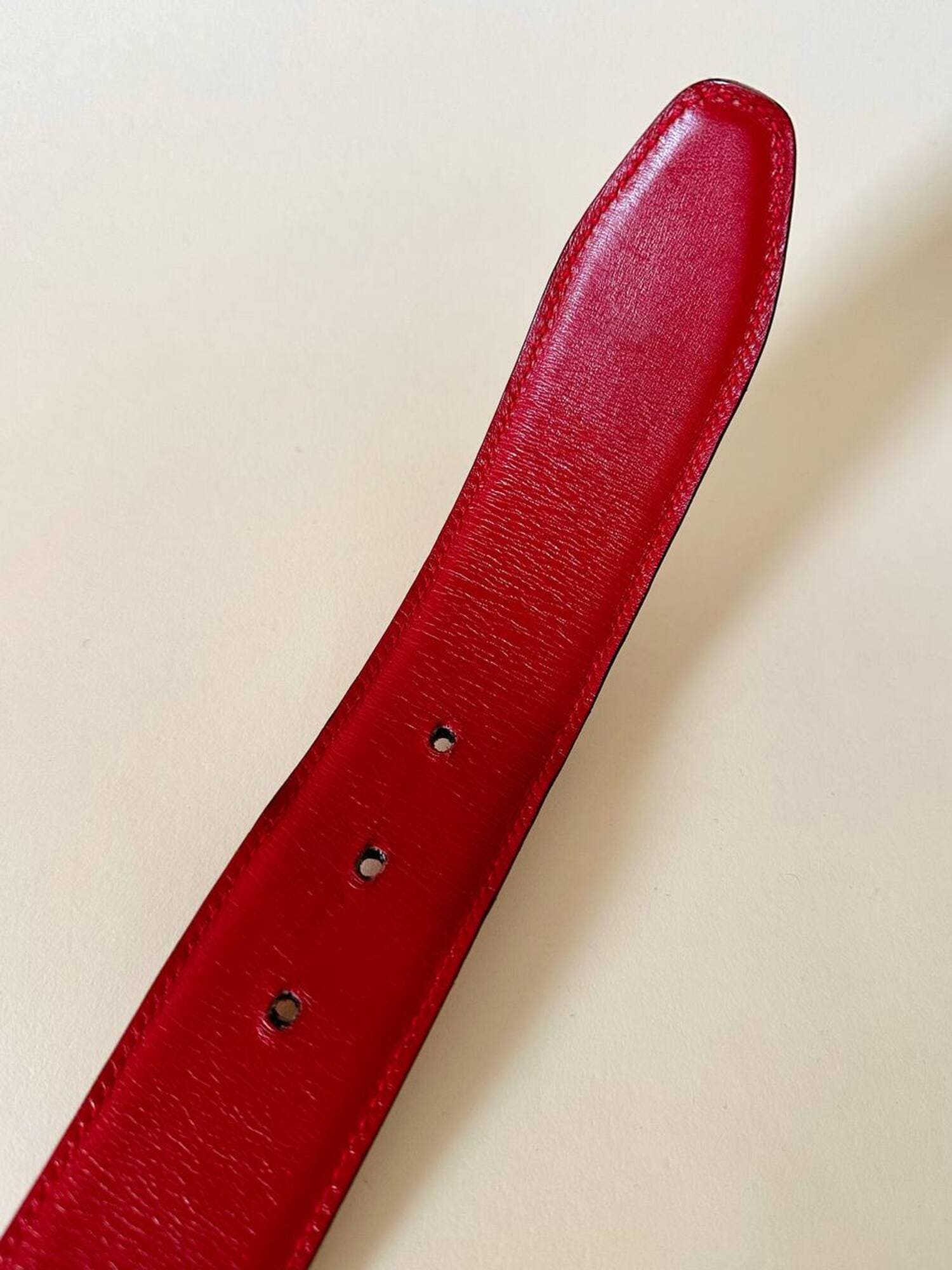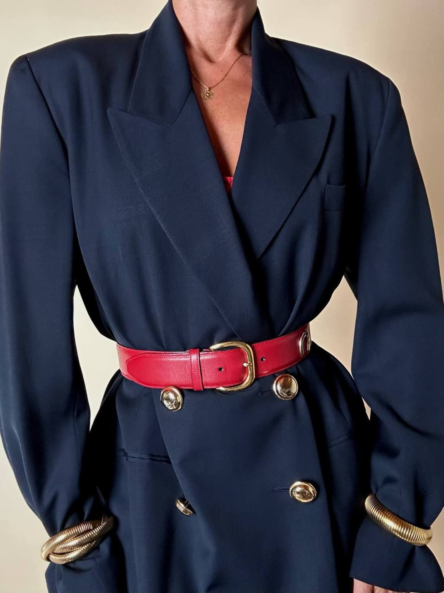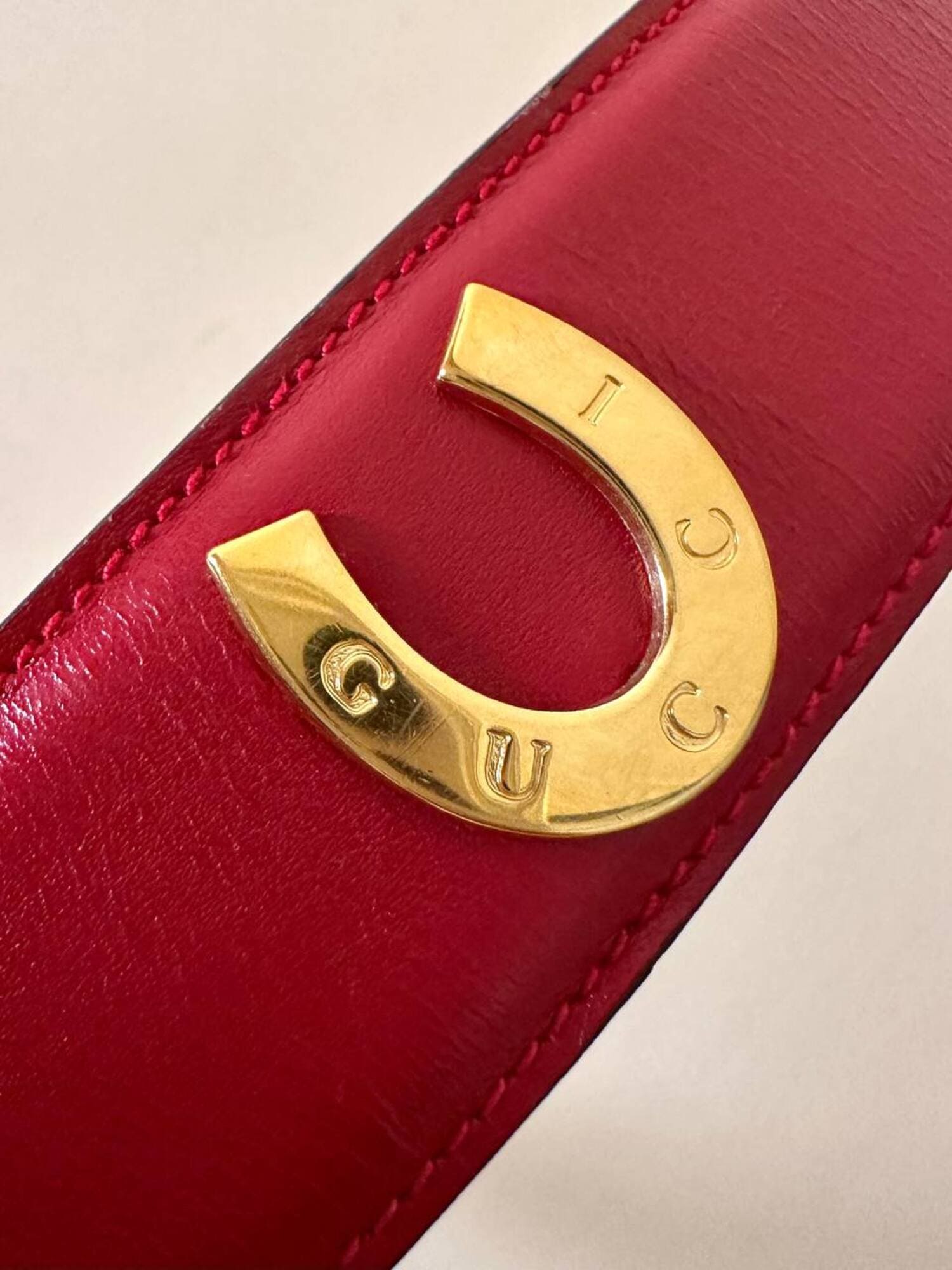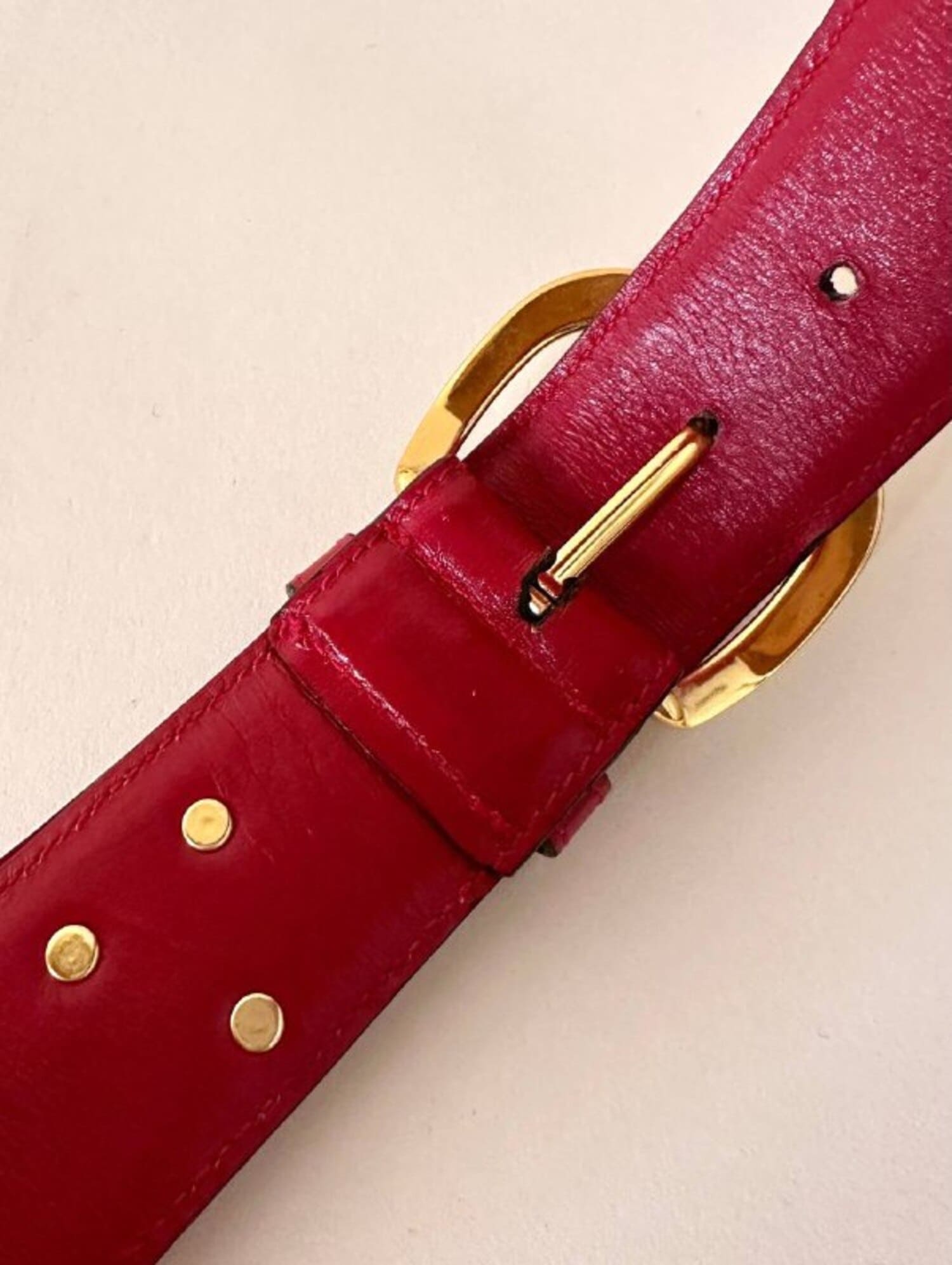Questa cintura Gucci vintage in pelle rossa, impreziosita da borchie dorate a forma di ferro di cavallo, è un pezzo raro, carico di personalità e perfetto per chi ama distinguersi con eleganza. L’hardware in metallo dorato dona luce e carattere, mentre la tonalità rosso intenso della pelle richiama una femminilità decisa e sofisticata. Un accessorio che incarna l’estetica iconica di Gucci, pur senza marcature interne, come spesso accade nei pezzi d’archivio o nei capi provenienti da collezioni passate. Ogni dettaglio, dalla finitura delle borchie al taglio della pelle, restituisce la cura e l’artigianalità che definiscono il DNA della maison fiorentina. Perfetta per elevare un denim sartoriale o per spezzare un total look monocromatico, questa cintura Gucci è una dichiarazione di stile senza tempo, pensata per chi sa riconoscere il valore della moda autentica.