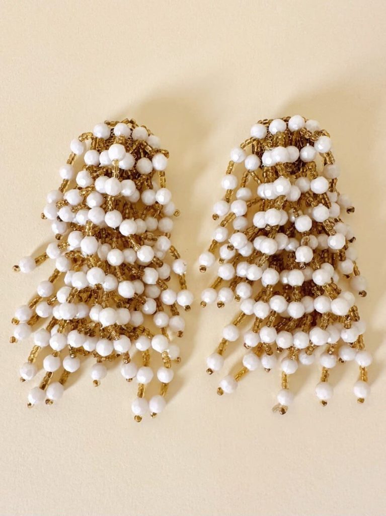 Clip dorate a forma di conchiglia con perle cabochon centrale. Clip a paletta. Punzone sul retro con piccolo quadrifoglio.