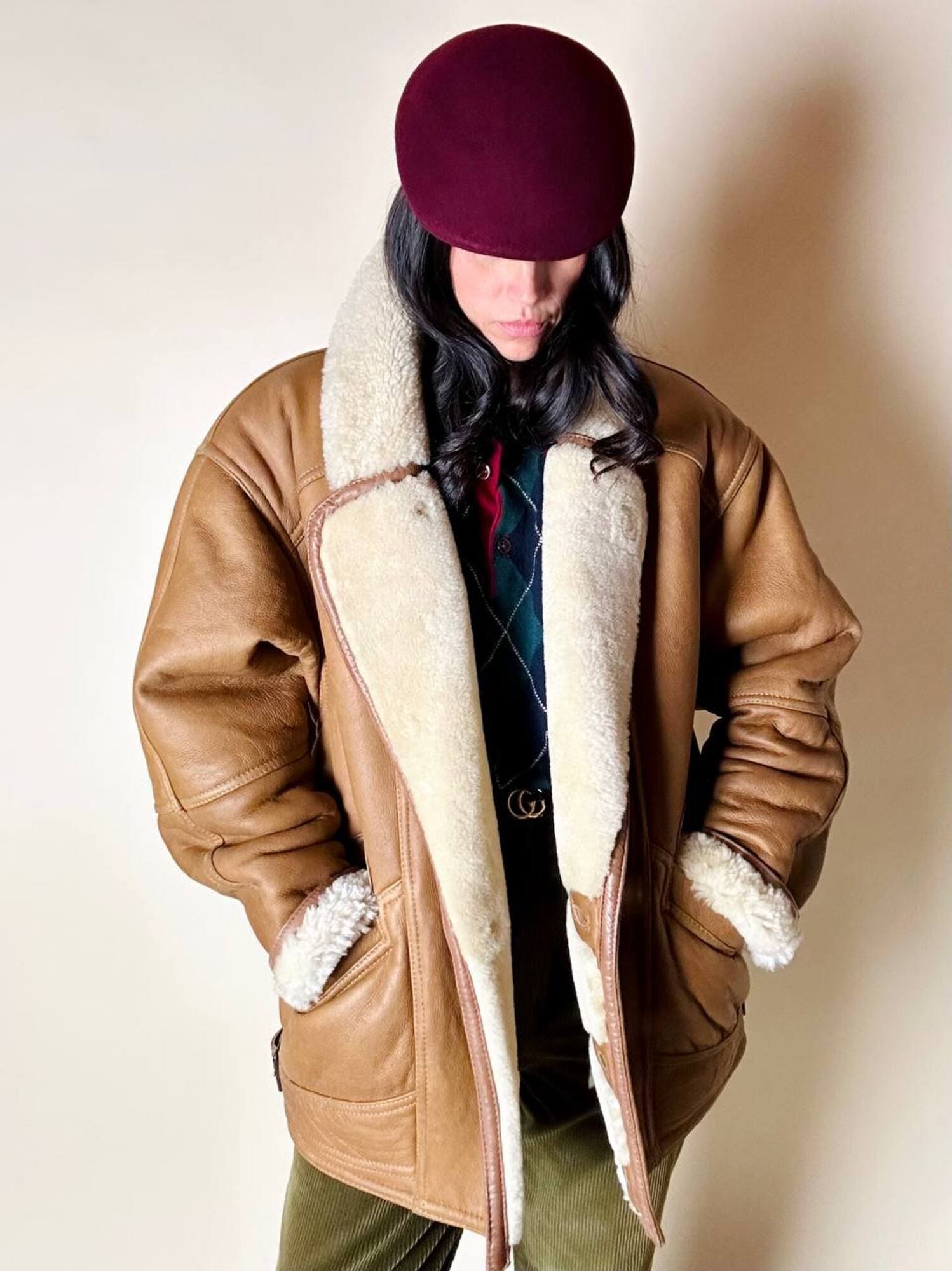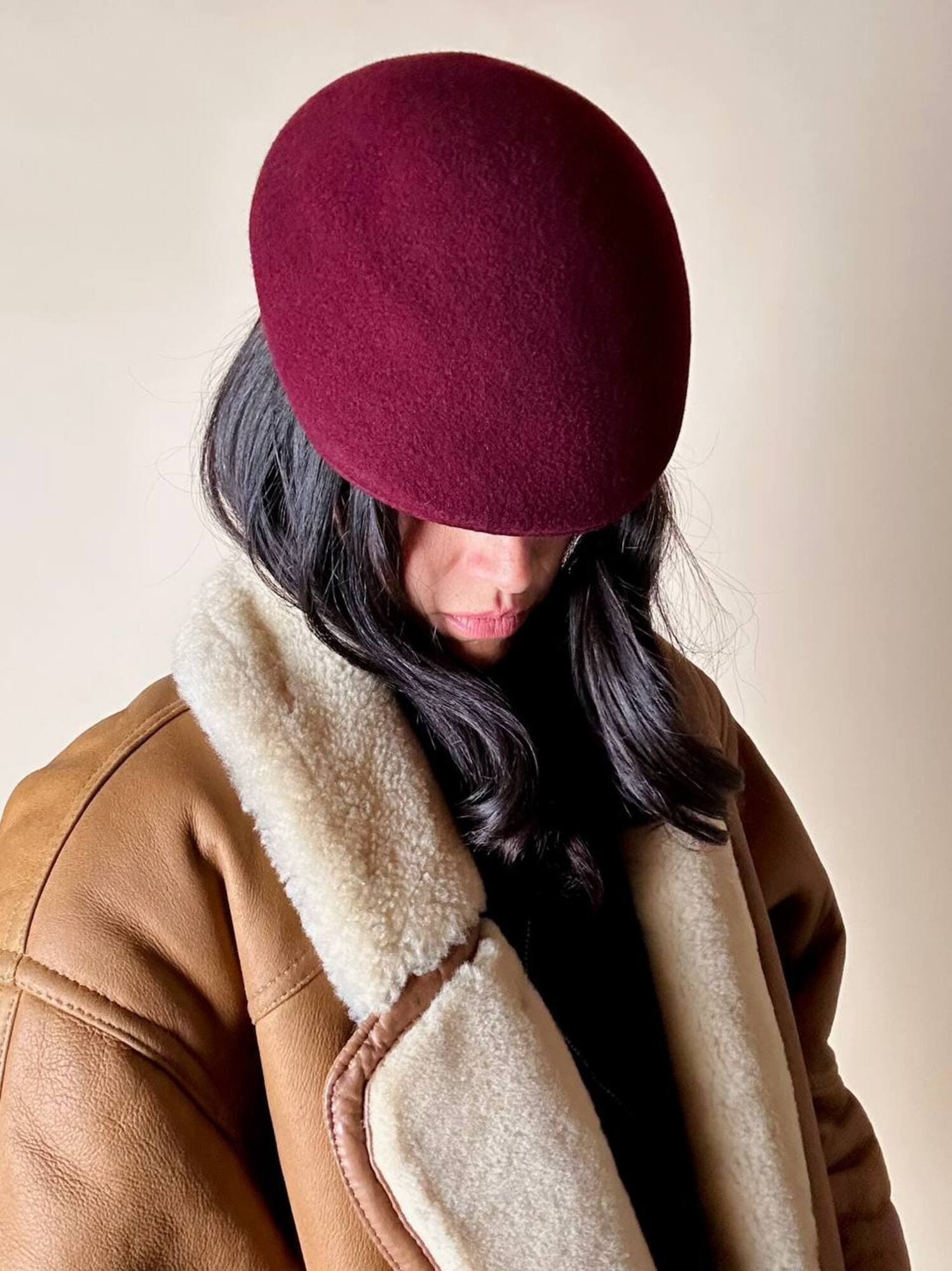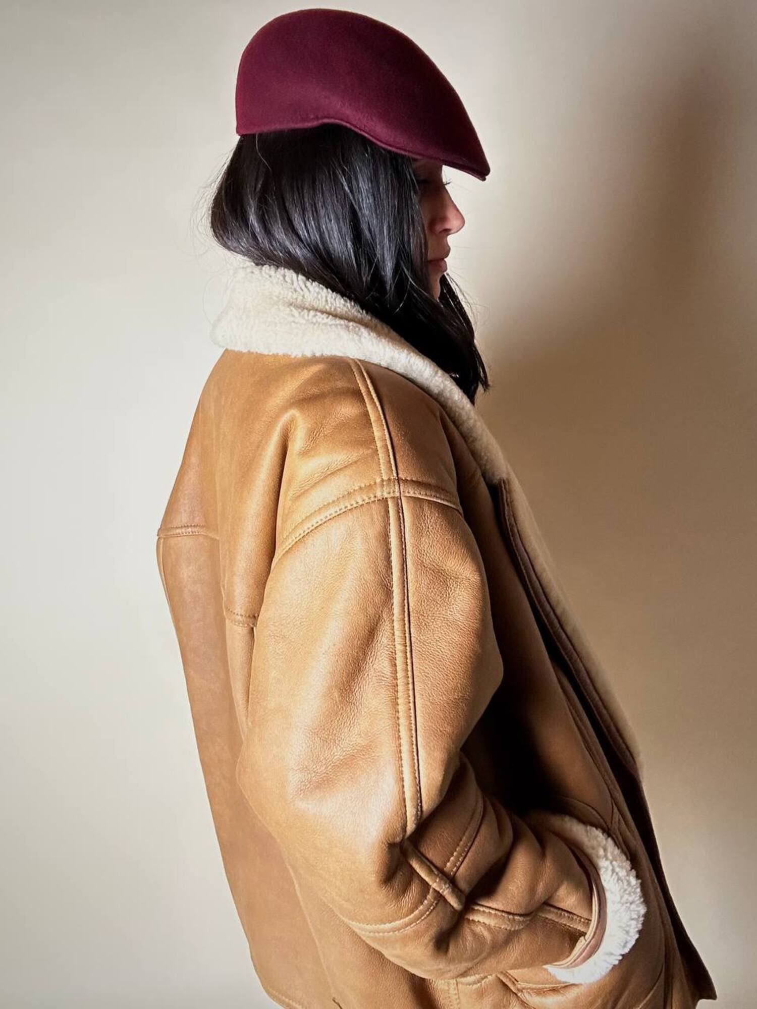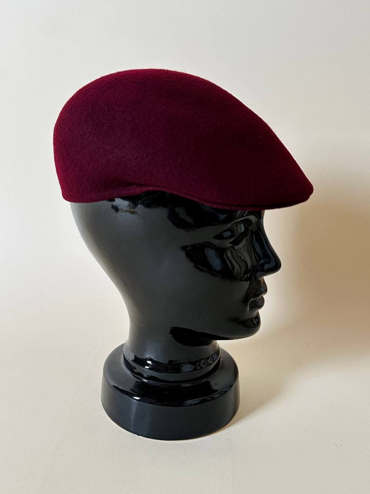 Coppola in feltro di lana bordeaux con rifinitura in pelle cuoio, firmata Fellini Roma, Made in Inghilterra. Un accessorio classico e senza tempo, questa coppola è realizzata in feltro di lana color bordeaux e rifinita internamente con un giro in pelle cuoio, per maggiore comfort. Il design tradizionale conferisce un tocco di eleganza retrò, perfetto per completare look casual o sofisticati con stile. Leggera, resistente e versatile, è un capo ideale per chi cerca un dettaglio di carattere che unisca tradizione e qualità.