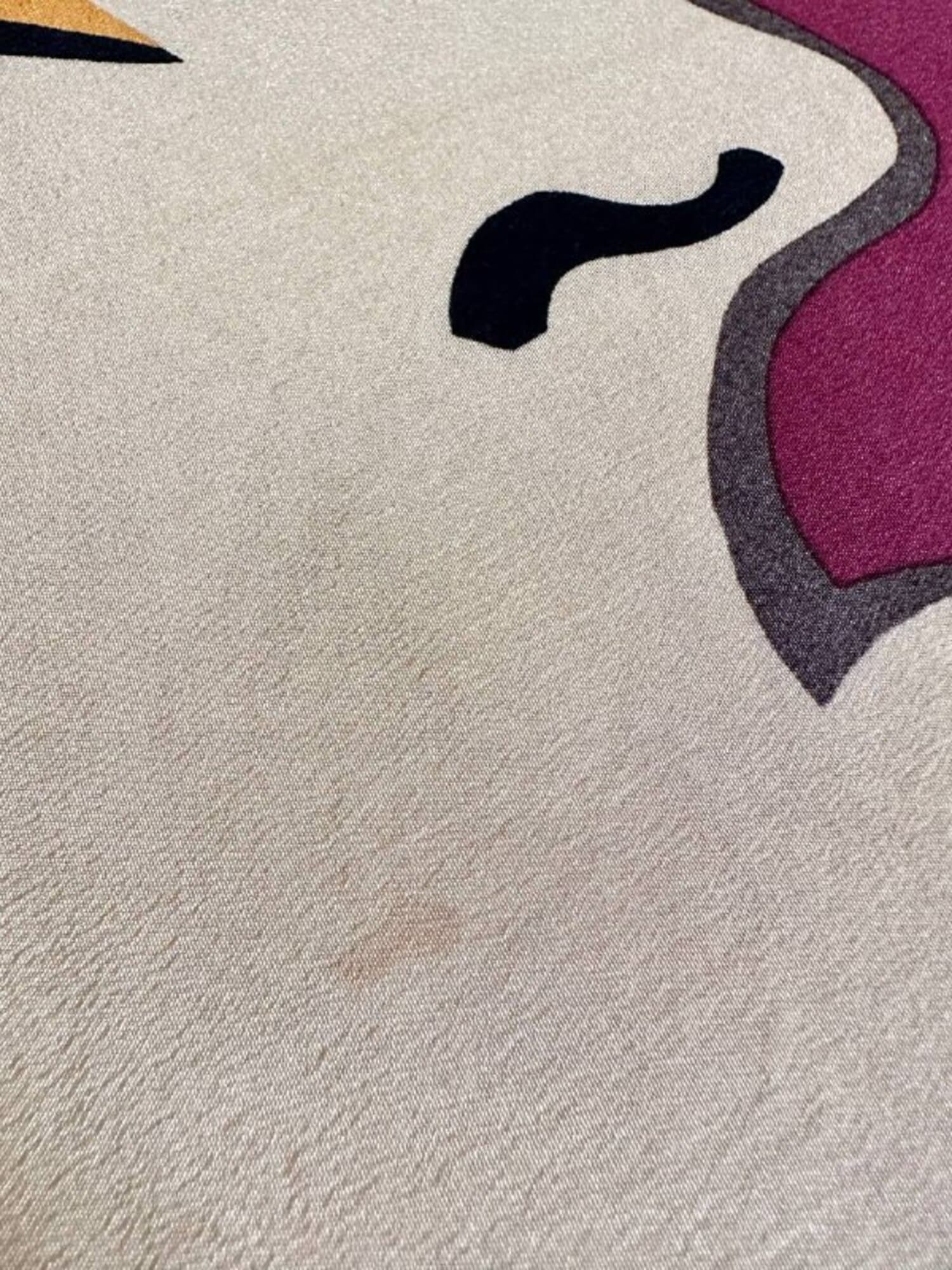 Buone condizioni generali. Presenta lievi segni di usura e piccoli fori, tipici dei pezzi da collezione vintage. Eventuali imperfezioni, piccole macchie o lievi scoloriture sono da considerarsi segni autentici del tempo, che testimoniano la storia del capo. Si prega di fare riferimento alle foto.