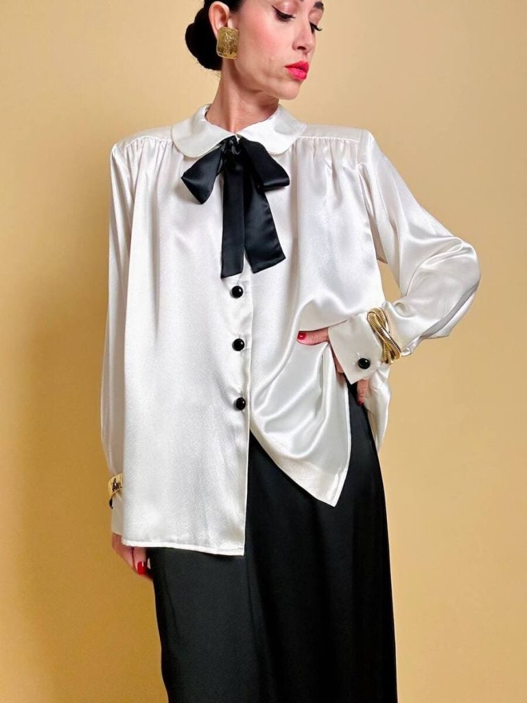 Maxi clip oro con logo “Yves Saint Laurent”. Forma rettangolare, superficie irregolare effetto martellato, logo YSL a rilievo. Clip a paletta con logo inciso.