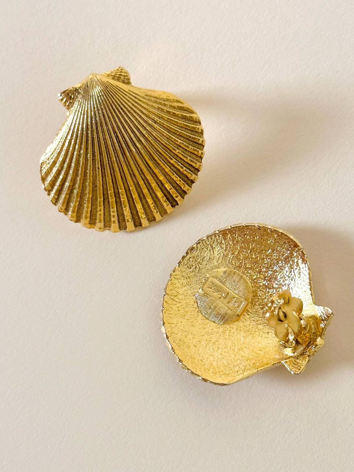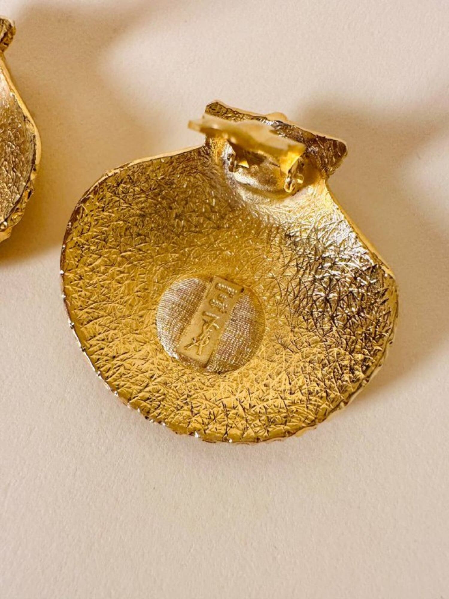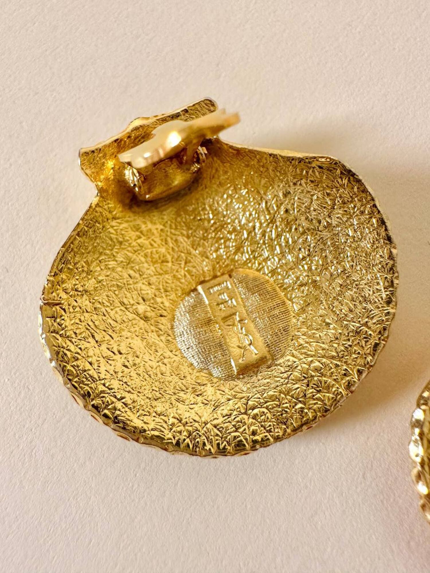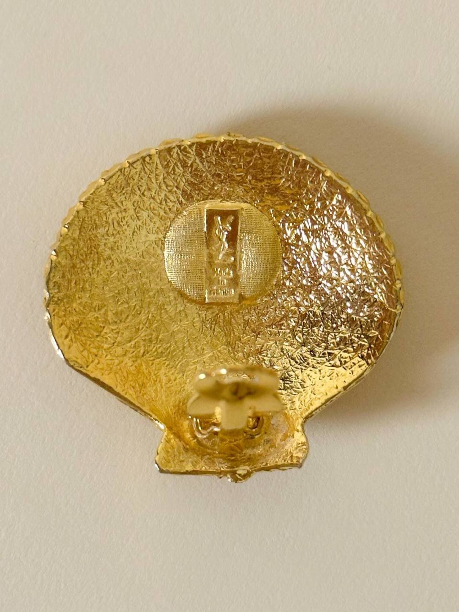 Orecchini a clip dorati a forma di capasanta “Yves Saint Laurent”