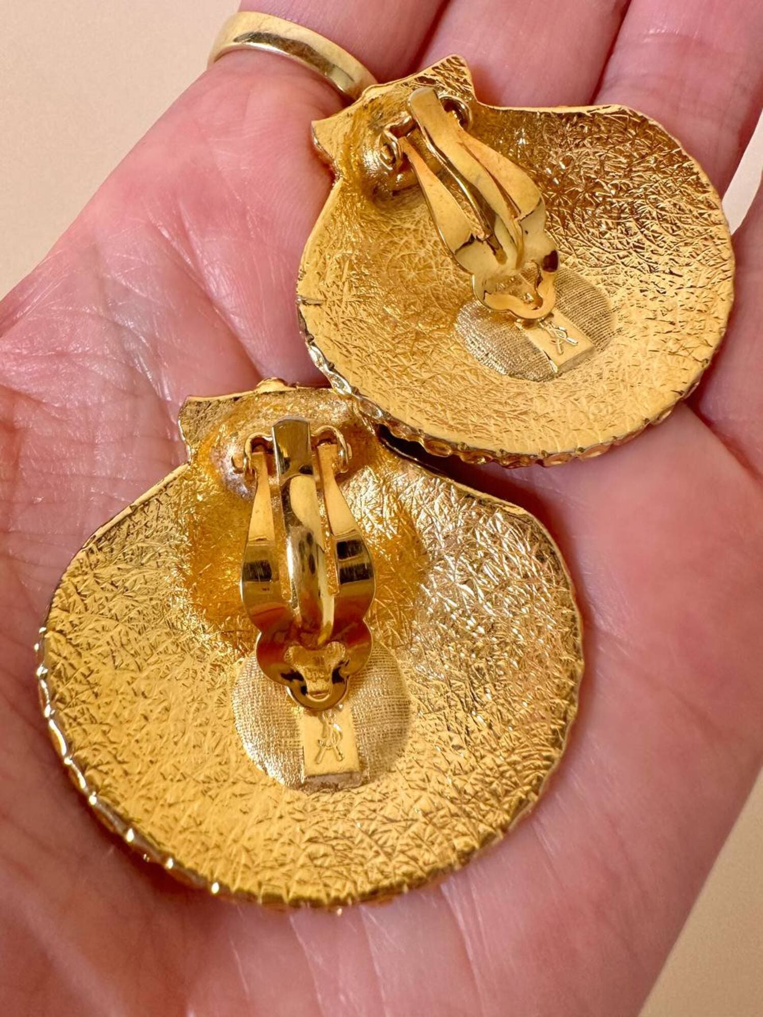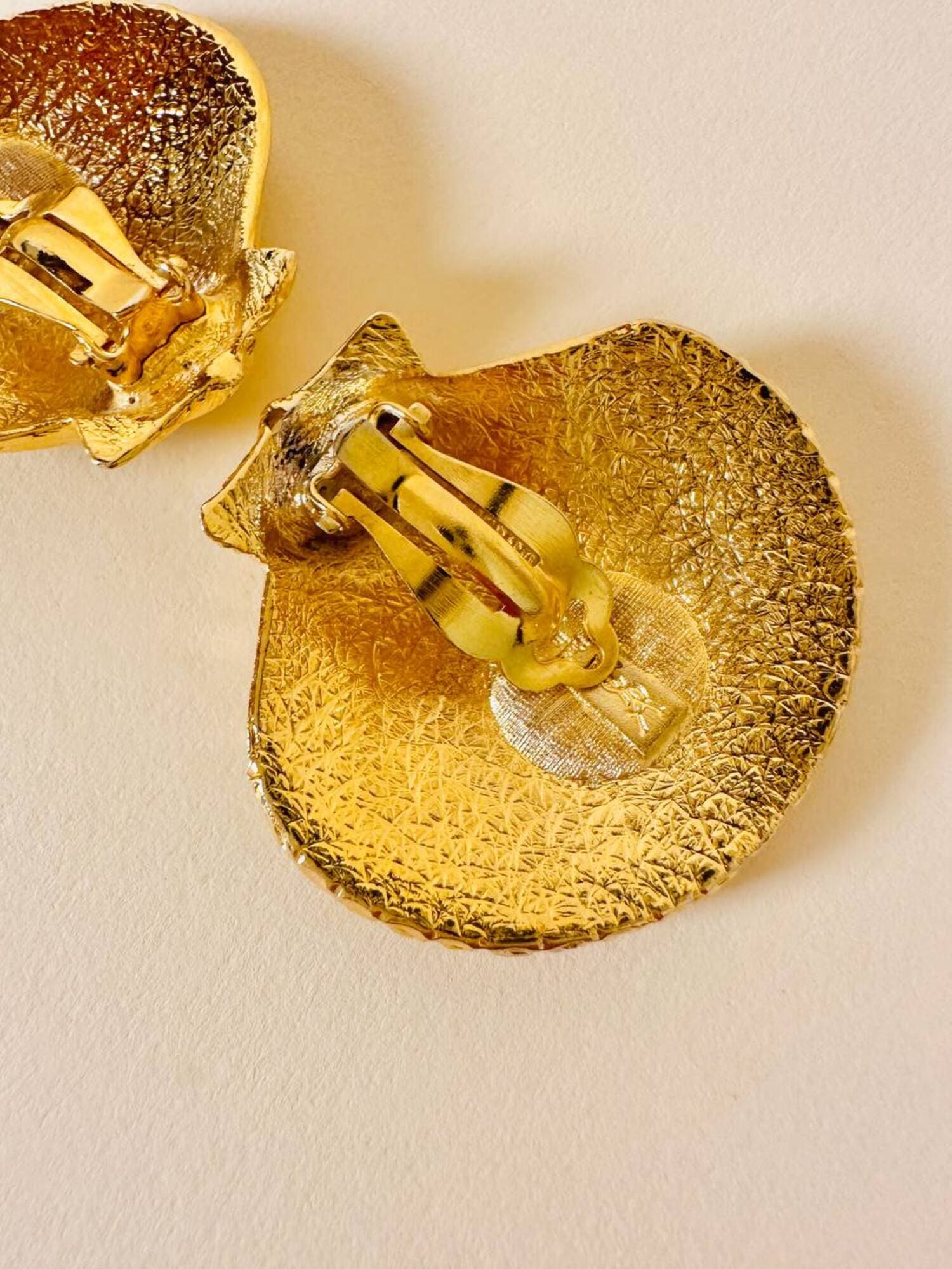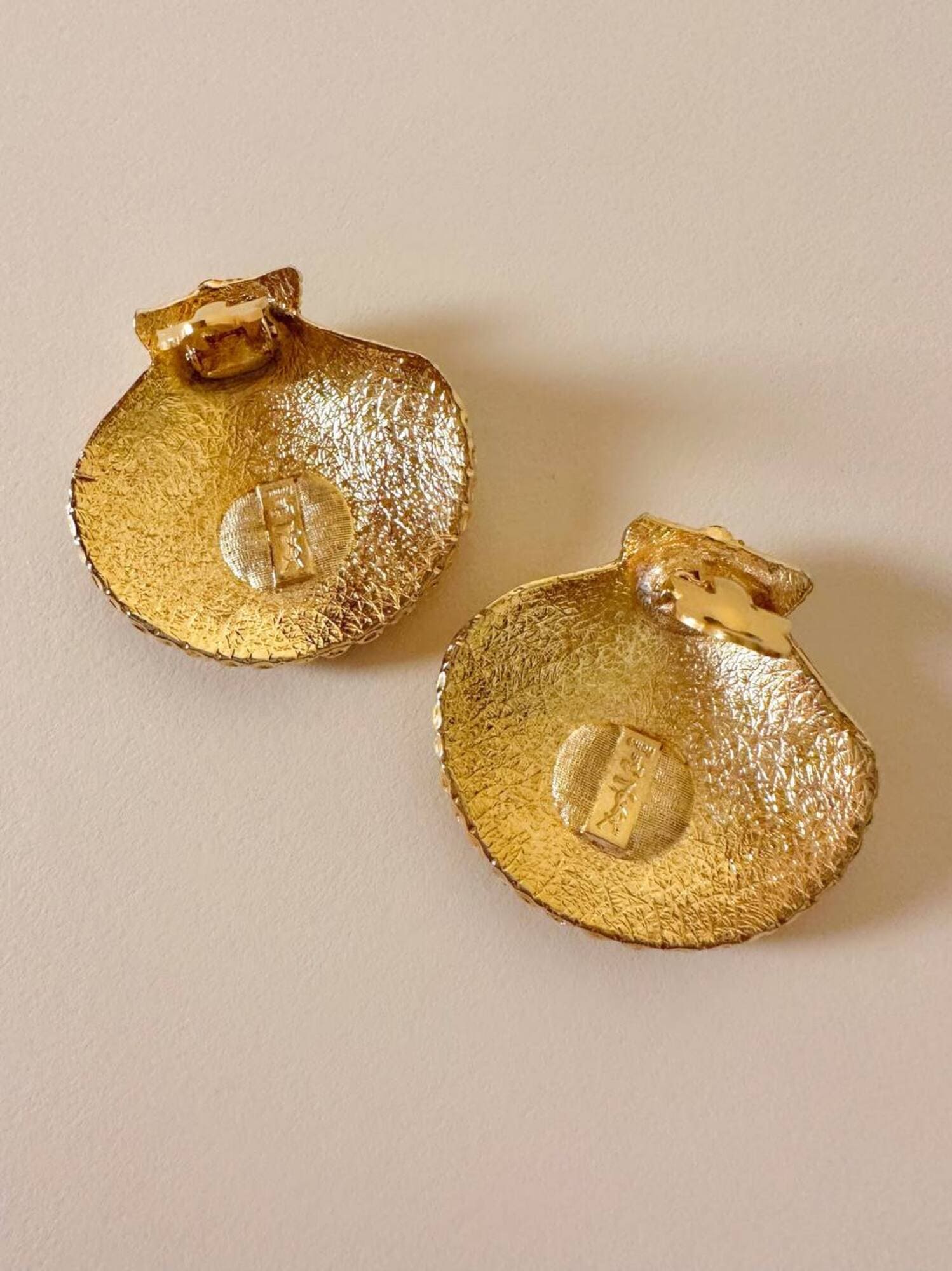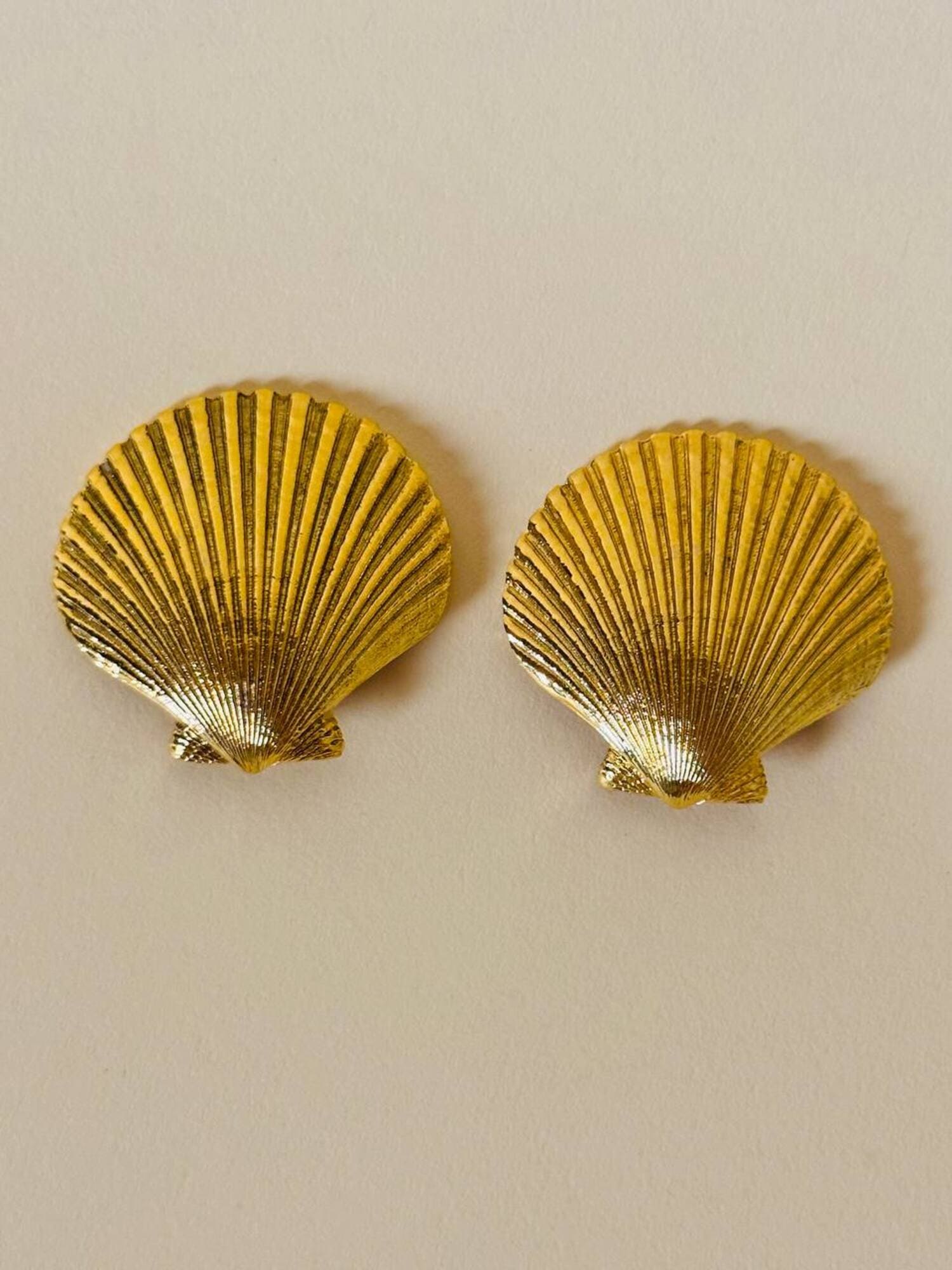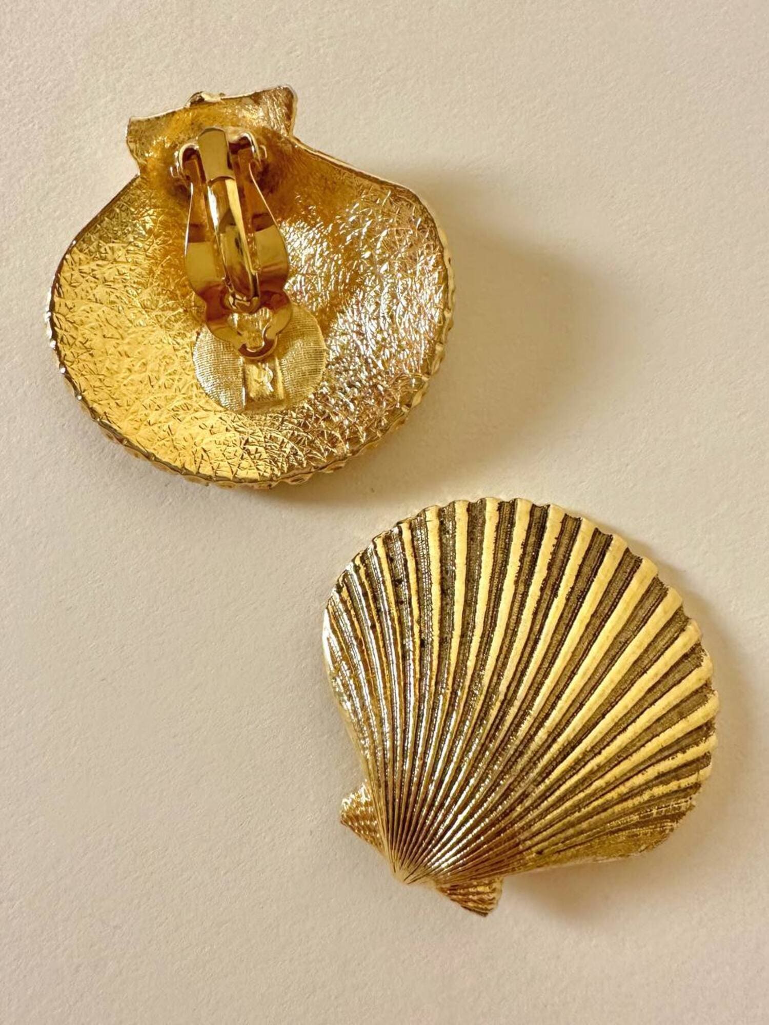 Orecchini a clip dorati a forma di capasanta “Yves Saint Laurent”