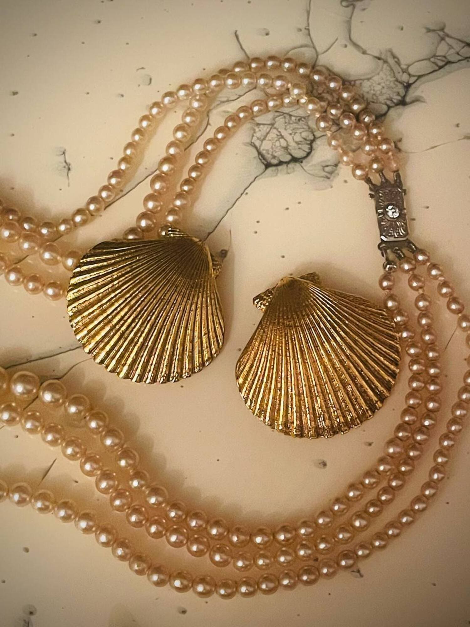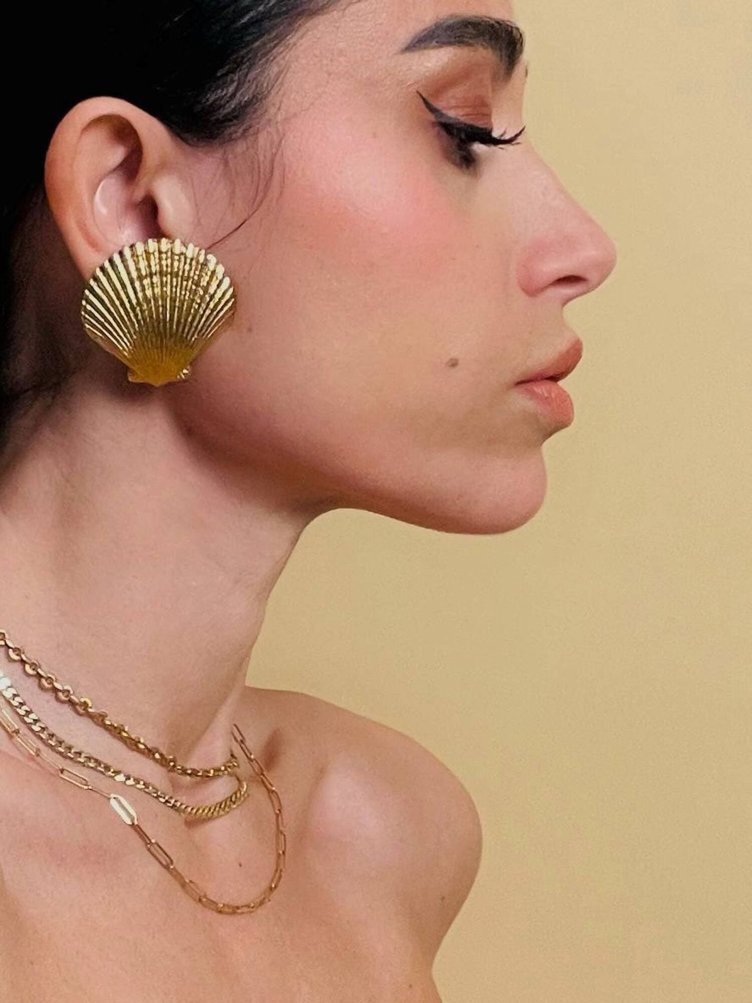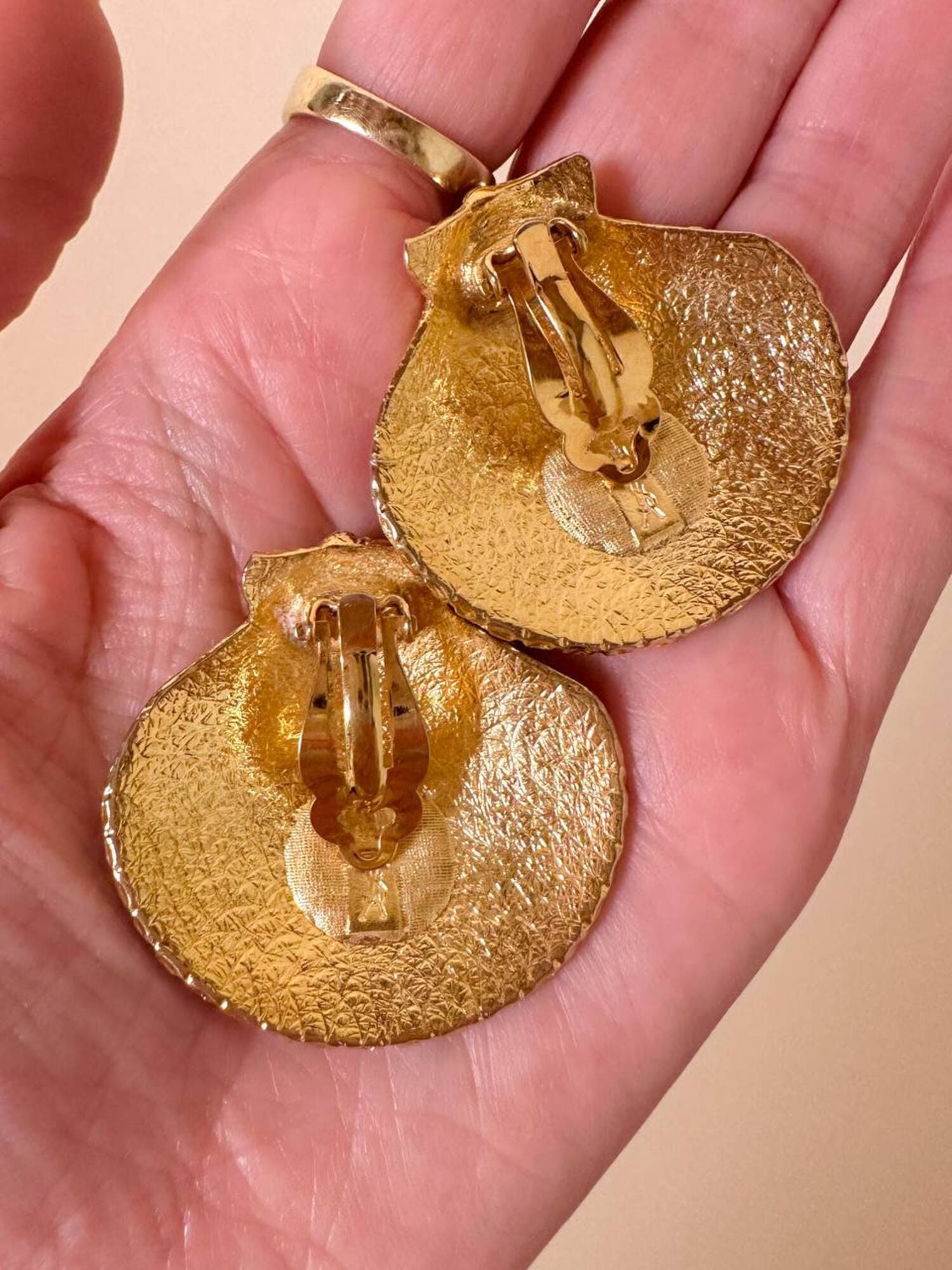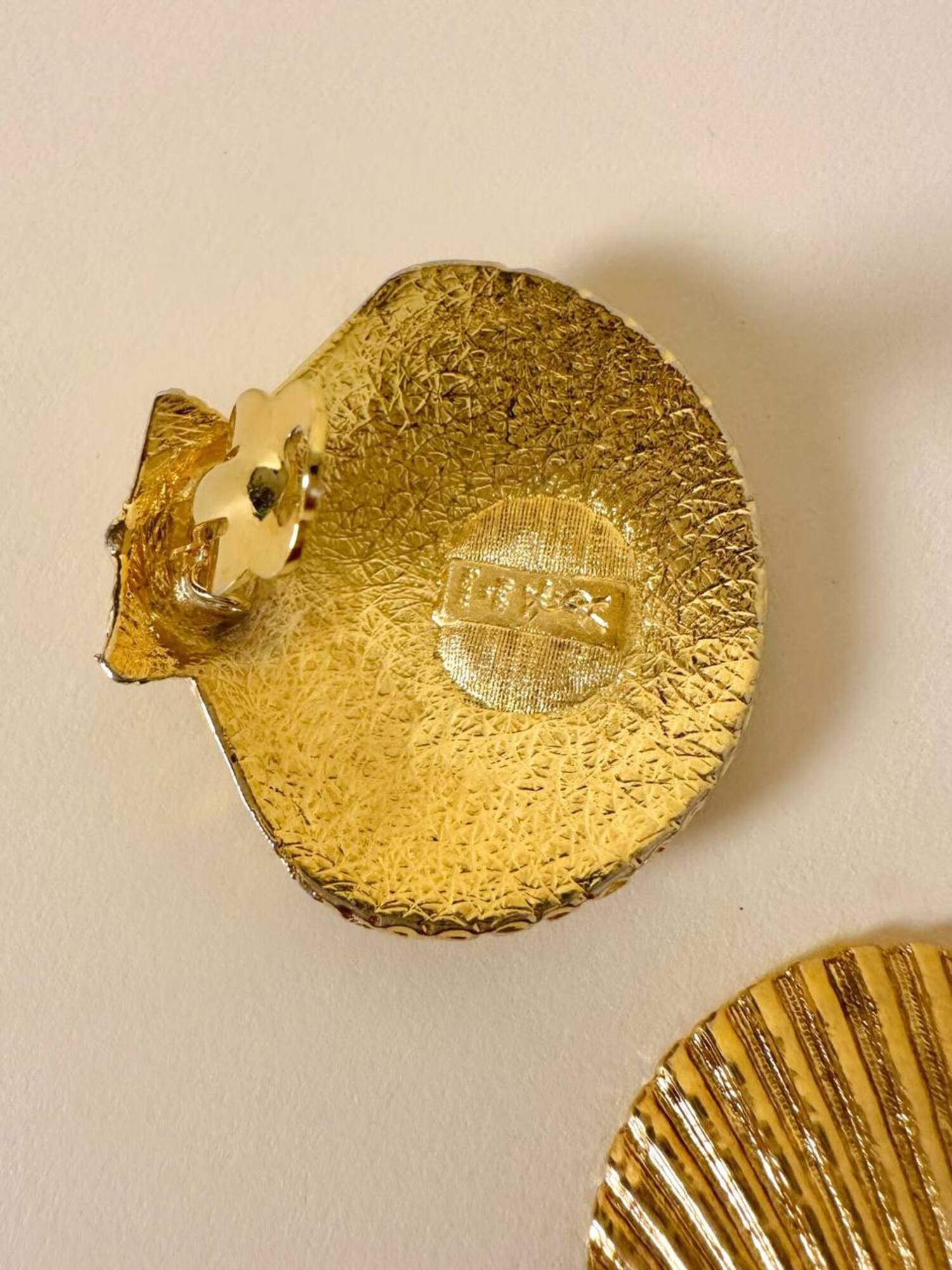 Orecchini a clip dorati a forma di capasanta “Yves Saint Laurent”