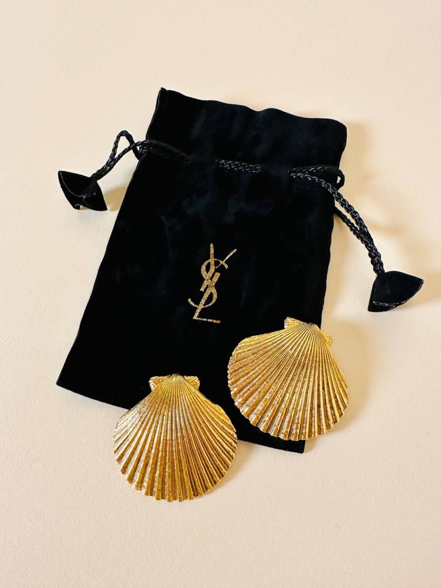 Simbolo di eleganza senza tempo, queste iconiche clip a forma di capasanta firmate “Yves Saint Laurent” raccontano l’essenza dello stile parigino. Realizzate in metallo dalla linea sinuosa e raffinata, presentano una chiusura a paletta pratica e discreta, pensata per valorizzare qualsiasi acconciatura con un tocco sofisticato. La chiusura a clip assicura una vestibilità comoda e sicura, ideale anche per chi non ha i lobi forati. Sul retro, il punzone “YSL Made in France” ne certifica l’autenticità e la qualità artigianale, confermando la cura e l’eccellenza che da sempre contraddistinguono la maison. Custodite in un’elegante dustbag nera con coulisse, perfetta per conservarle e portarle sempre con sé, queste clip rappresentano l’accessorio ideale per chi ama i dettagli ricercati e desidera impreziosire il proprio look con un elemento di classe. Perfette da indossare in ogni occasione, dalle uscite informali alle serate più esclusive, uniscono funzionalità e fascino couture in una creazione destinata a non passare inosservata.