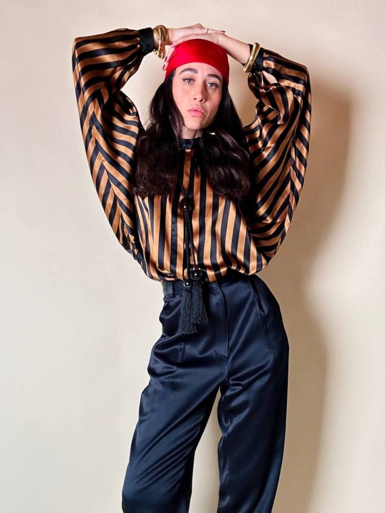 Riporta taglia 42. Veste da una 40 (S) come in foto a una 42 (M).