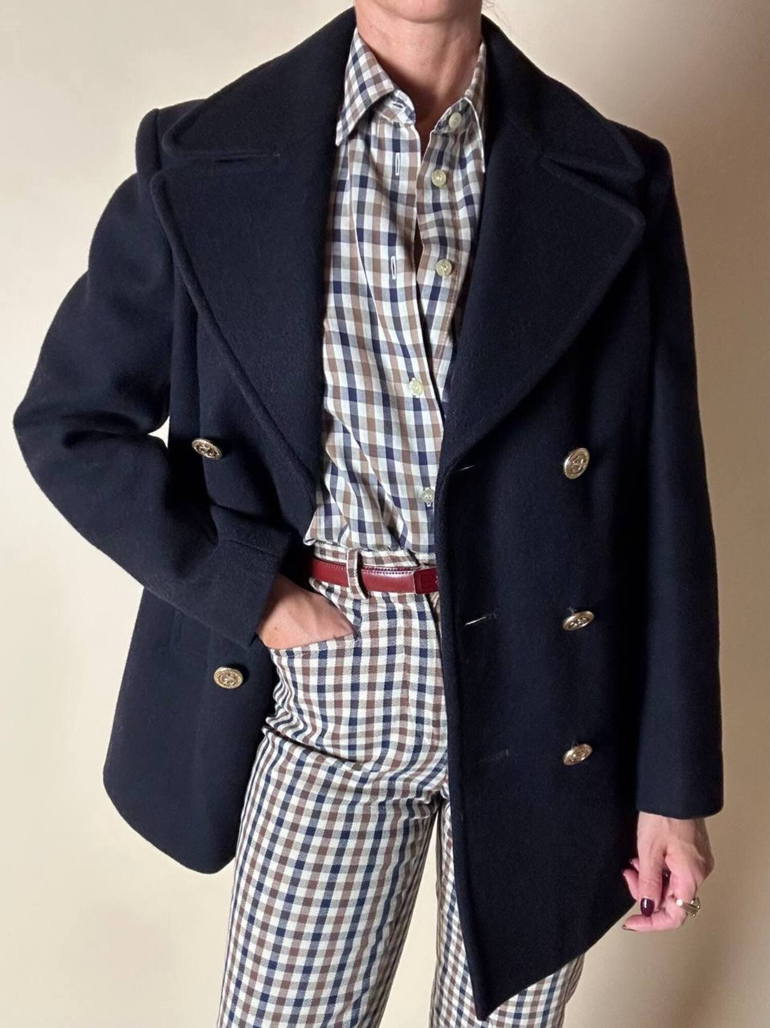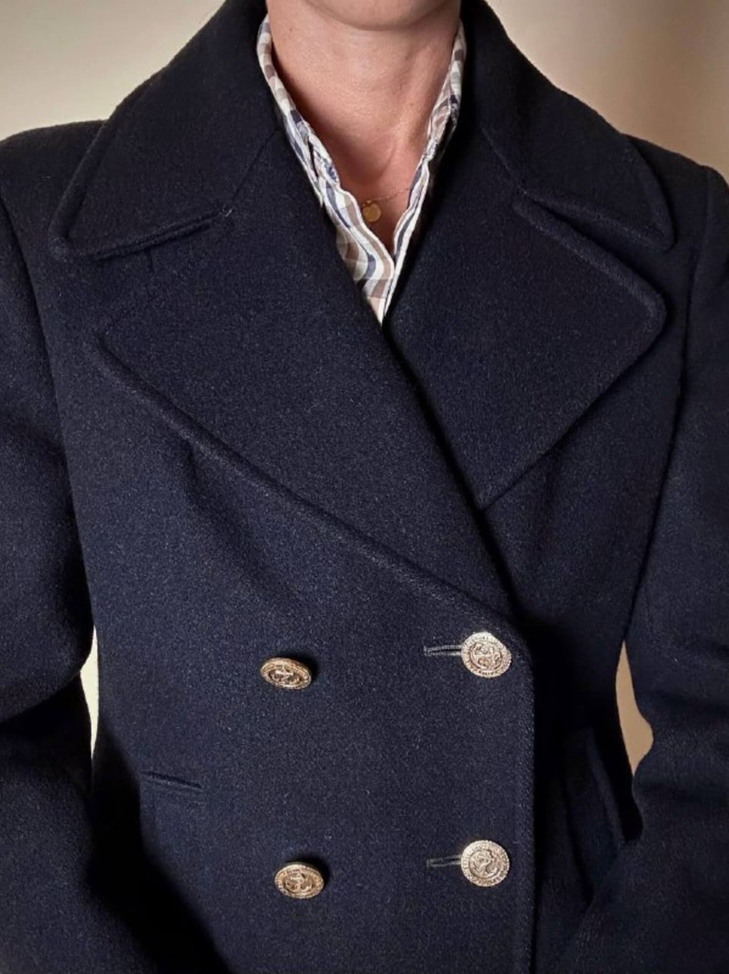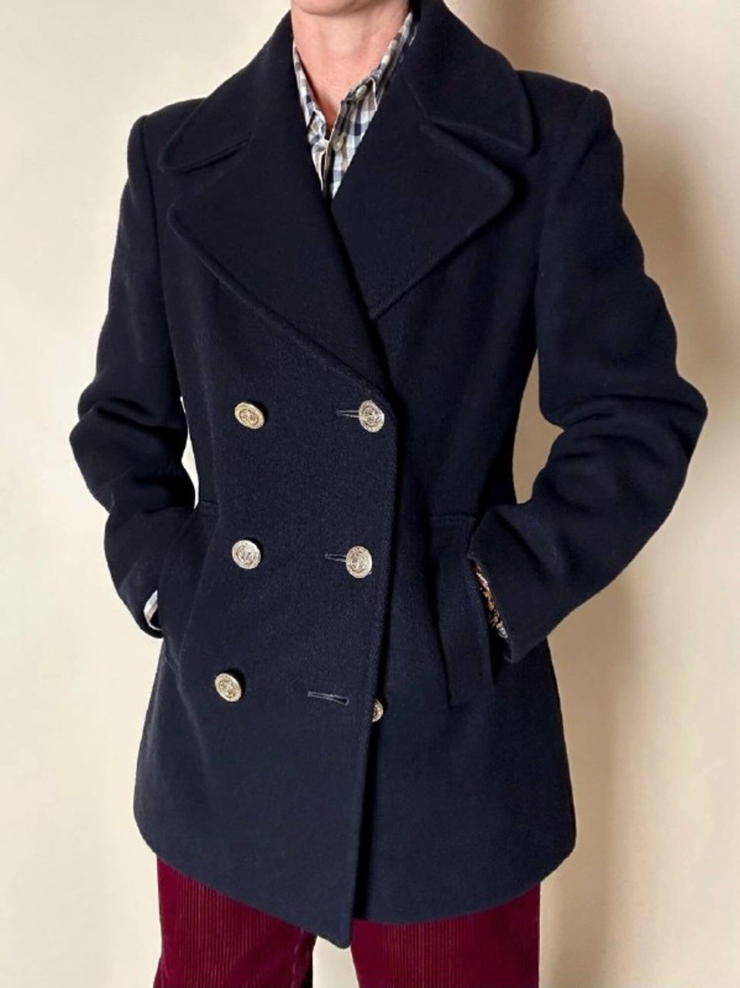 Questo peacoat Gloverall in lana blu notte rappresenta l’essenza del classico capospalla navy reinterpretato con la cura sartoriale e la qualità distintiva del Made in England. Realizzato in pregiata lana inglese, offre calore, struttura e un’eleganza sobria che attraversa le epoche senza perdere stile e carattere. Il taglio classico con ampi rever richiama l’eredità marinaresca del modello, mentre le tasche verticali enfatizzano il design pulito e funzionale. I bottoni dorati, impreziositi da firma Gloverall e ancora centrale, aggiungono una nota luminosa e iconica che definisce immediatamente lo stile del capo. Completamente foderato in tinta garantisce comfort e una vestibilità impeccabile. Un must-have senza tempo: essenziale, raffinato, autentico. Il peacoat che non può mancare nel guardaroba di chi ama la tradizione sartoriale con un tocco distintivo.
