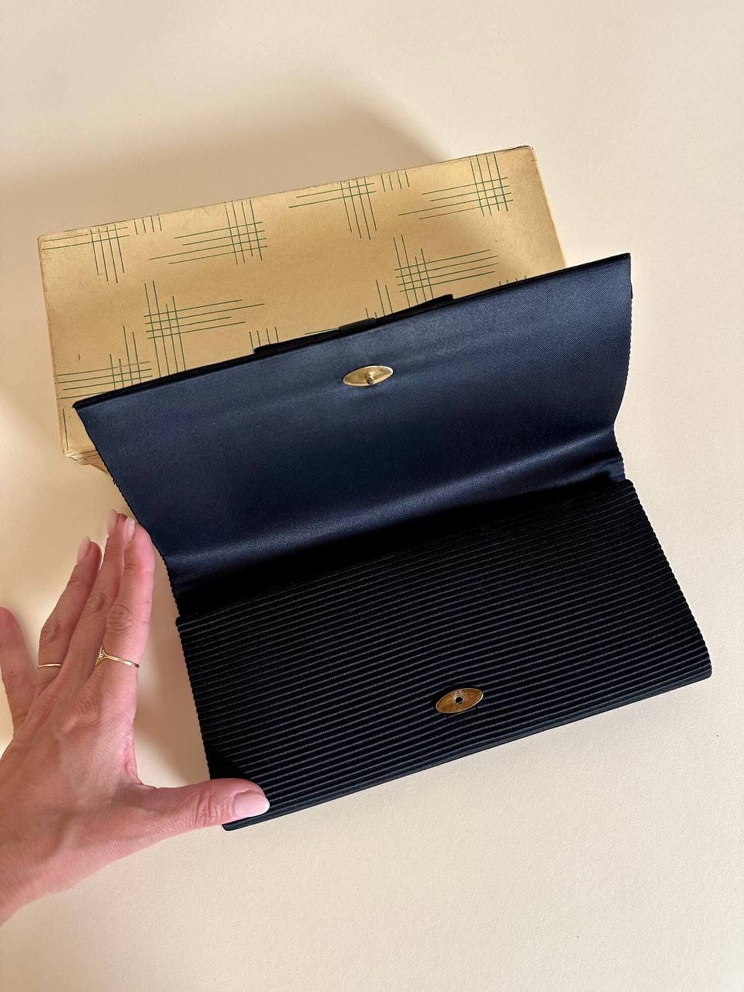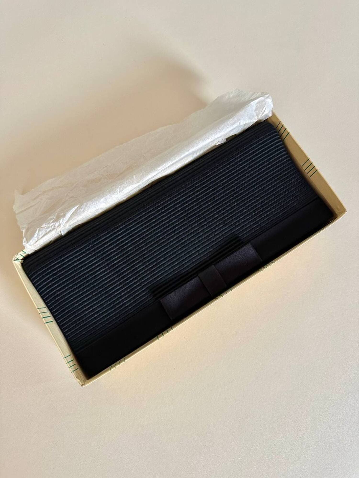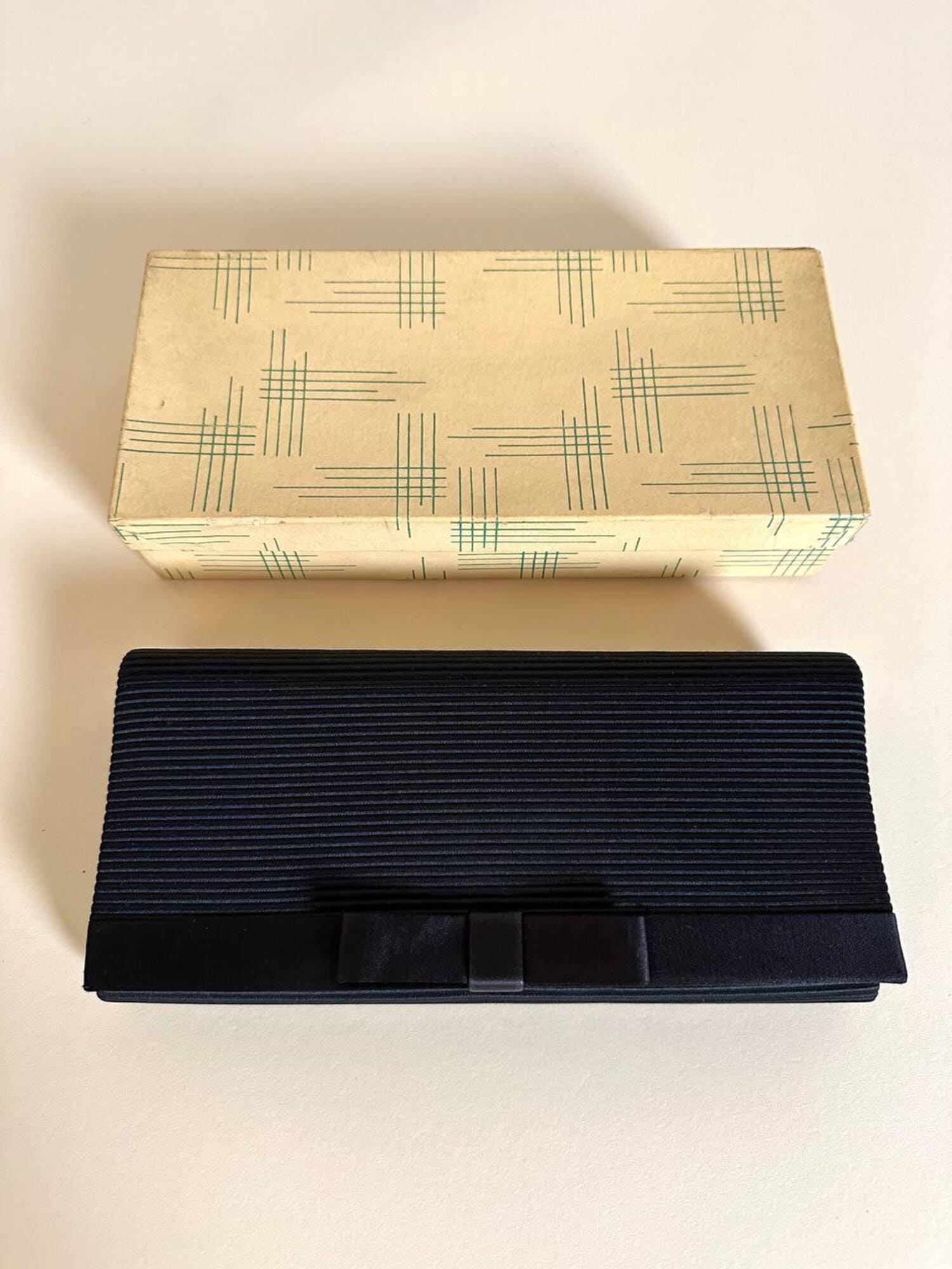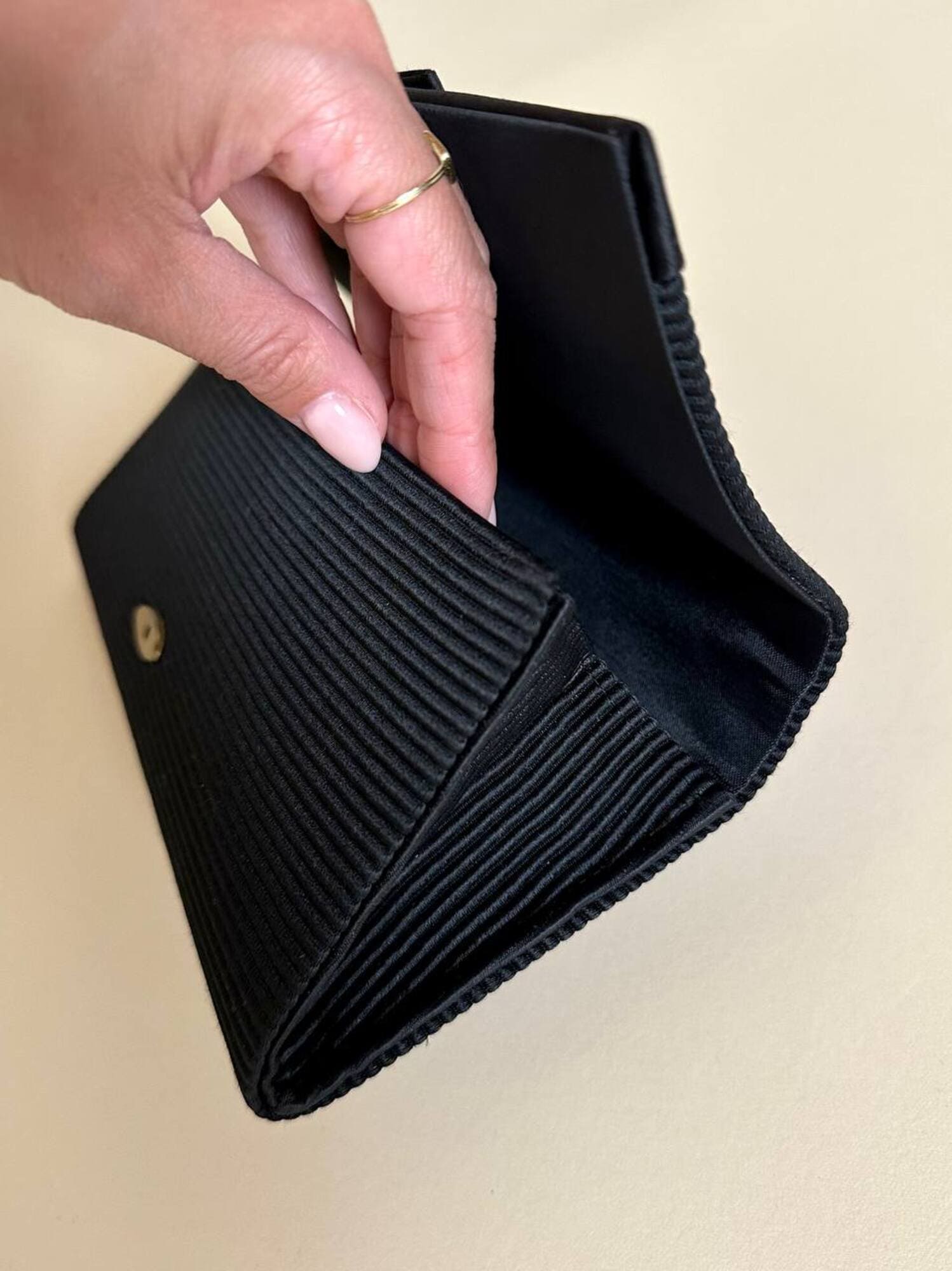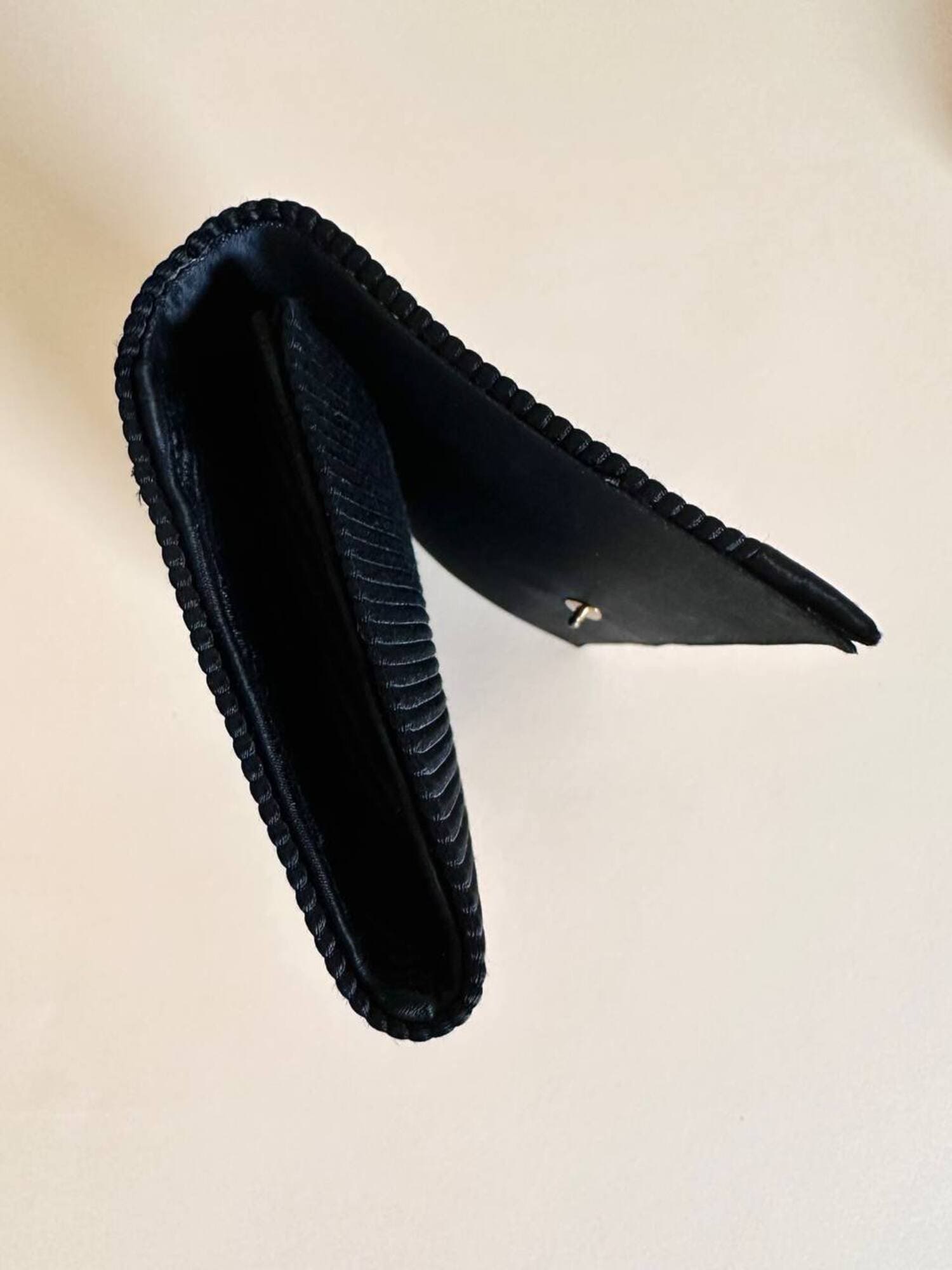 Elegante e senza tempo, questa pochette in tessuto canneté è un piccolo gioiello di stile pensato per accompagnare con grazia le occasioni più speciali. La patta frontale, sobria ma sofisticata, è impreziosita da un fiocco centrale in raso nero, che aggiunge un tocco di femminilità raffinata. Dalla linea compatta ma sorprendentemente capiente, è studiata per contenere tutto l’essenziale, dal rossetto al telefono. Si porta esclusivamente a mano, sottolineando il suo carattere formale e chic, perfetta con un abito da sera o a un tailleur ricercato.