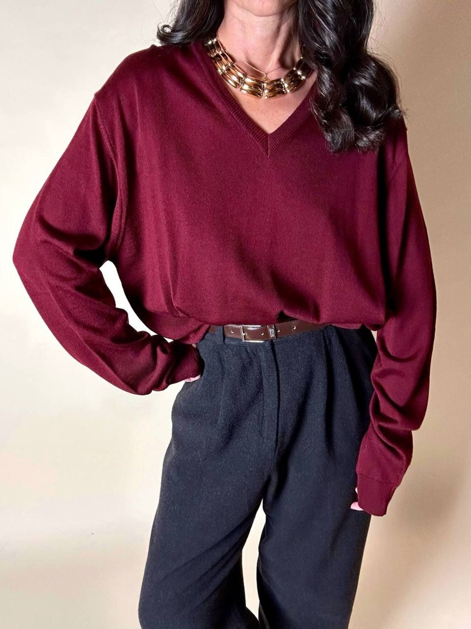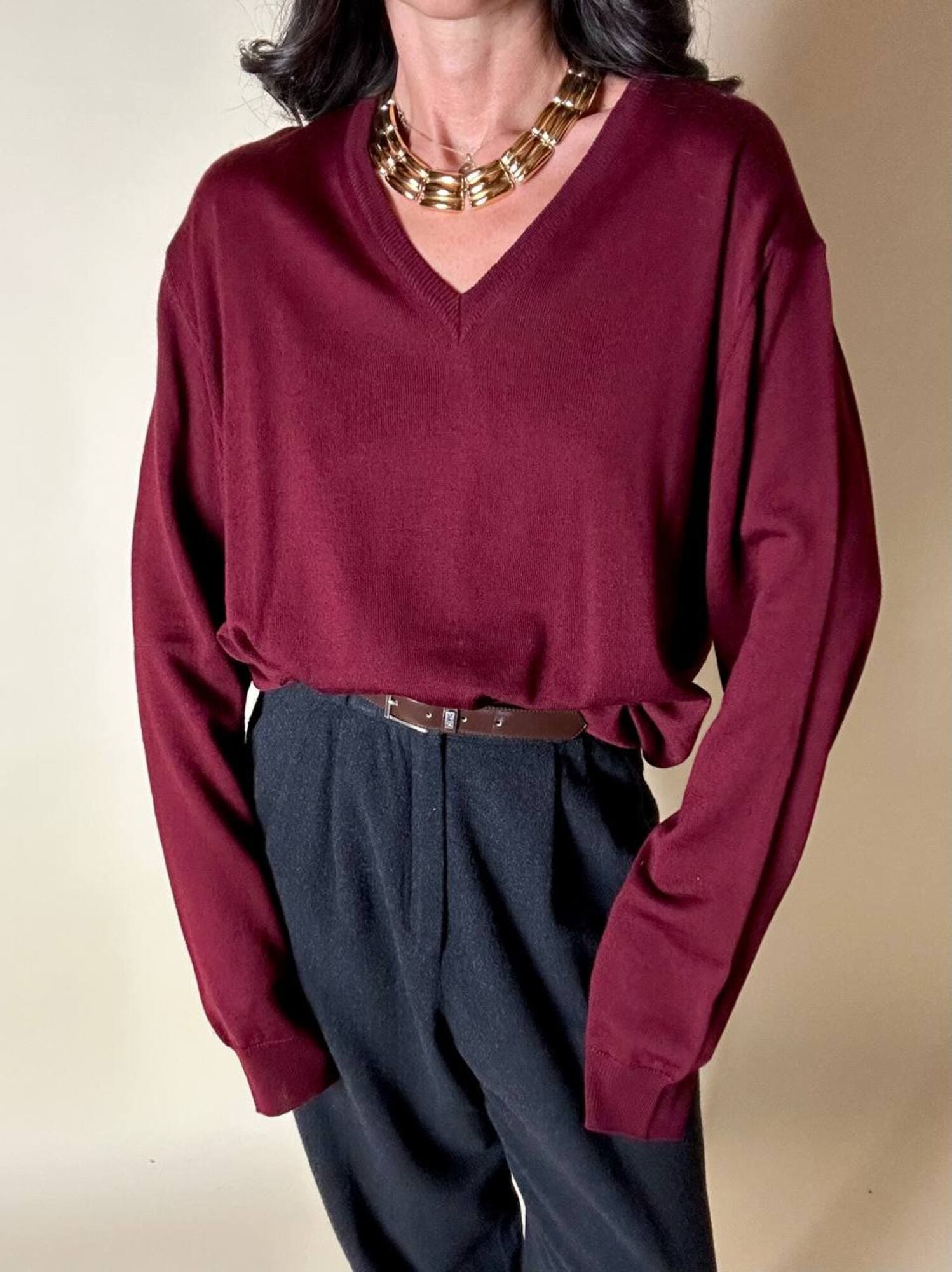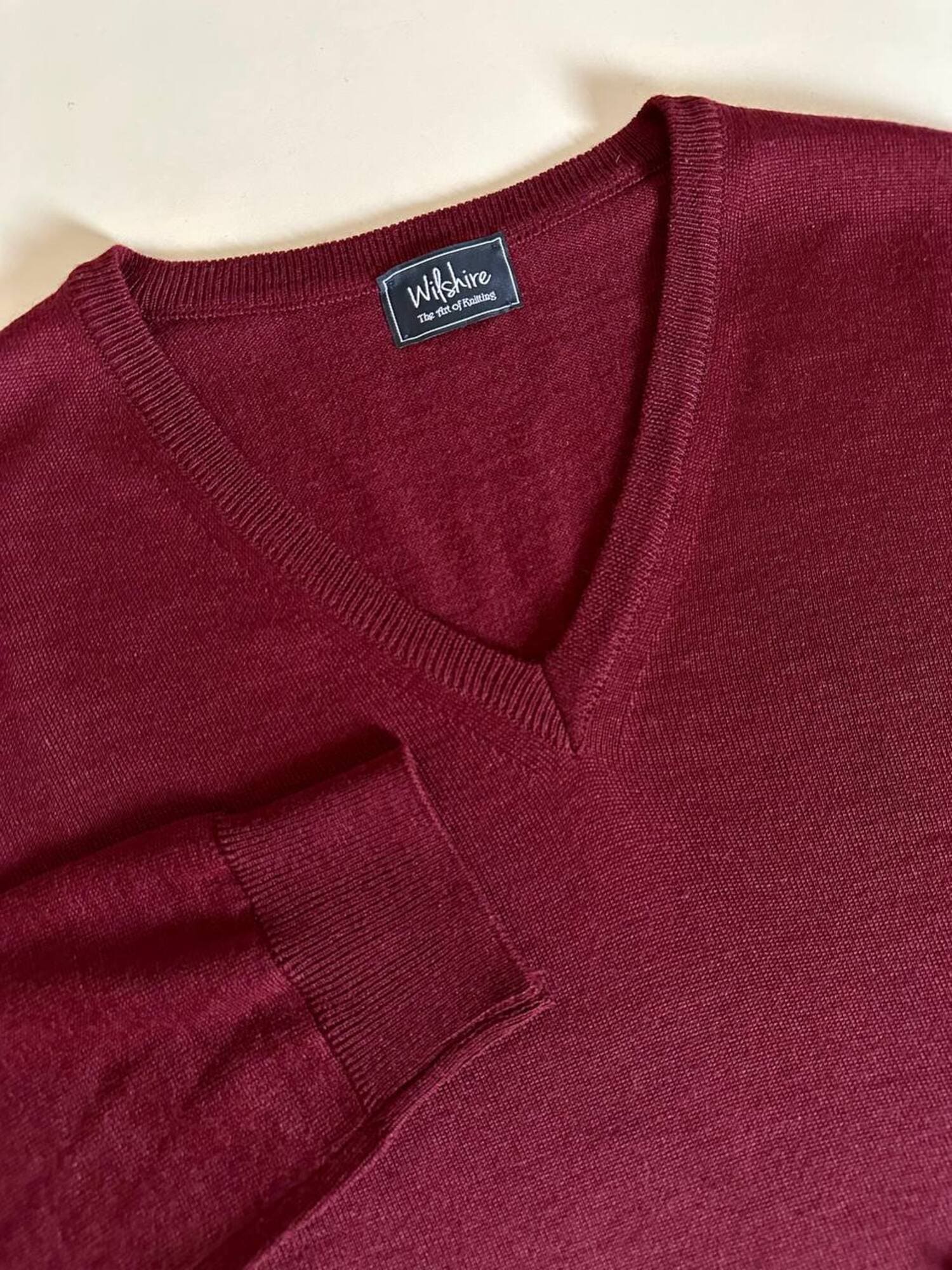 Pullover con scollo a V in misto lana bordeaux Wifshire