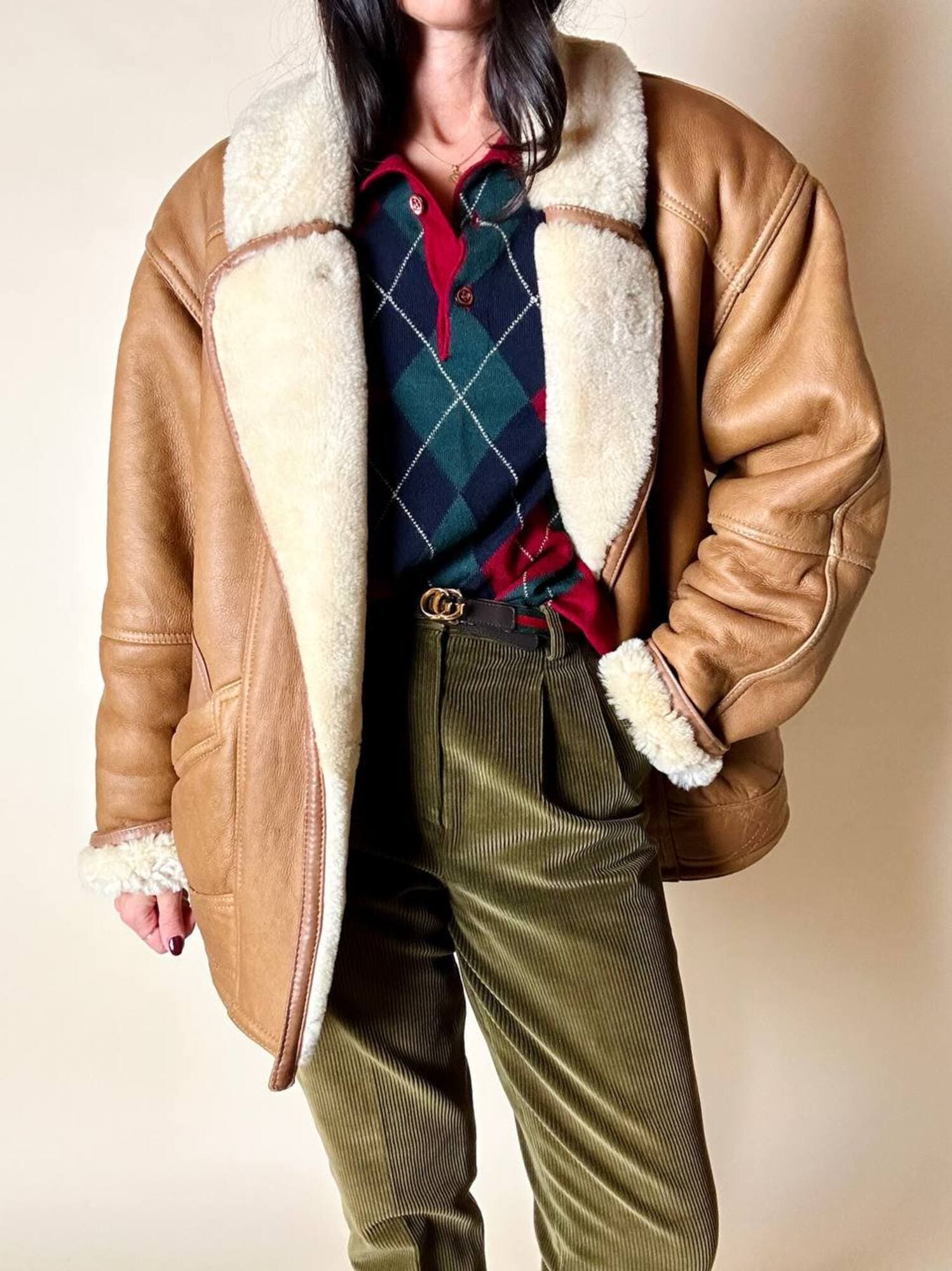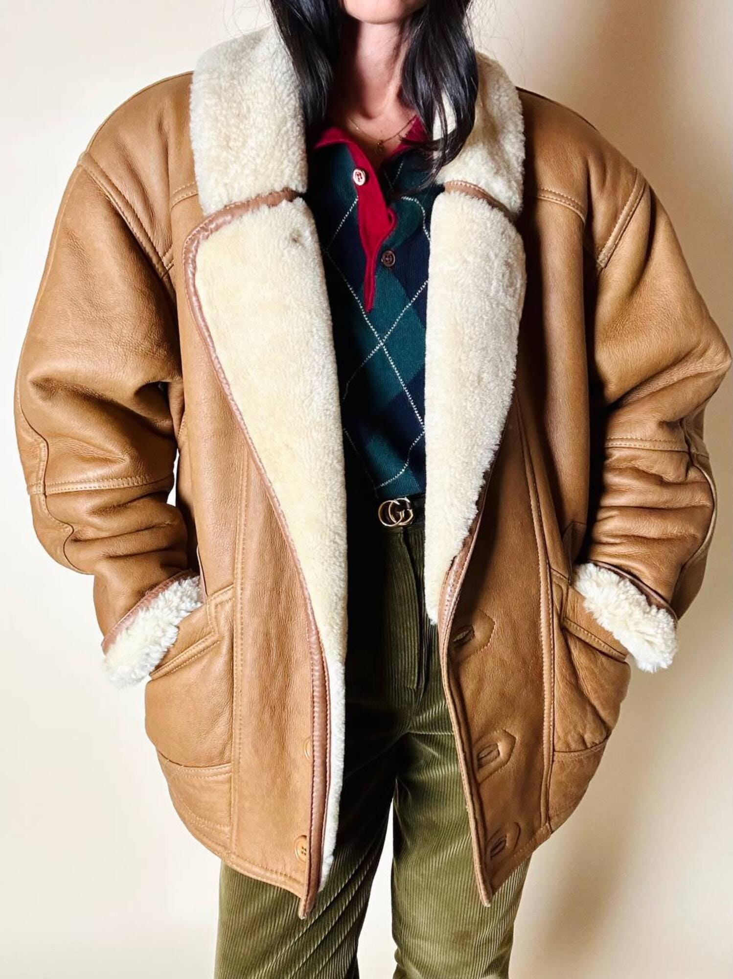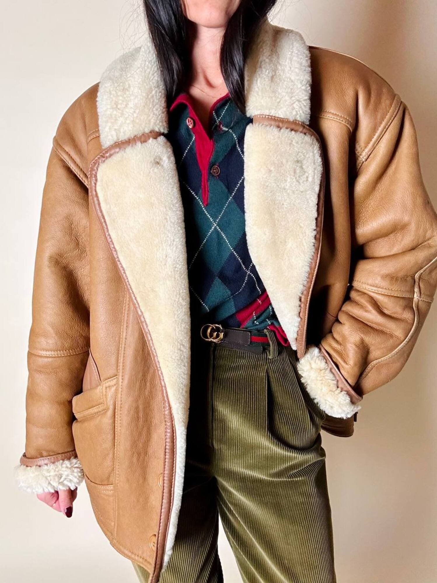 Ottime condizioni. Segnalo il vello leggermente più scuro nella piegatura del collo. Piccole imperfezioni, venature o variazioni di colore sono caratteristiche naturali della vera pelle, testimoniano la sua autenticità e unicità.