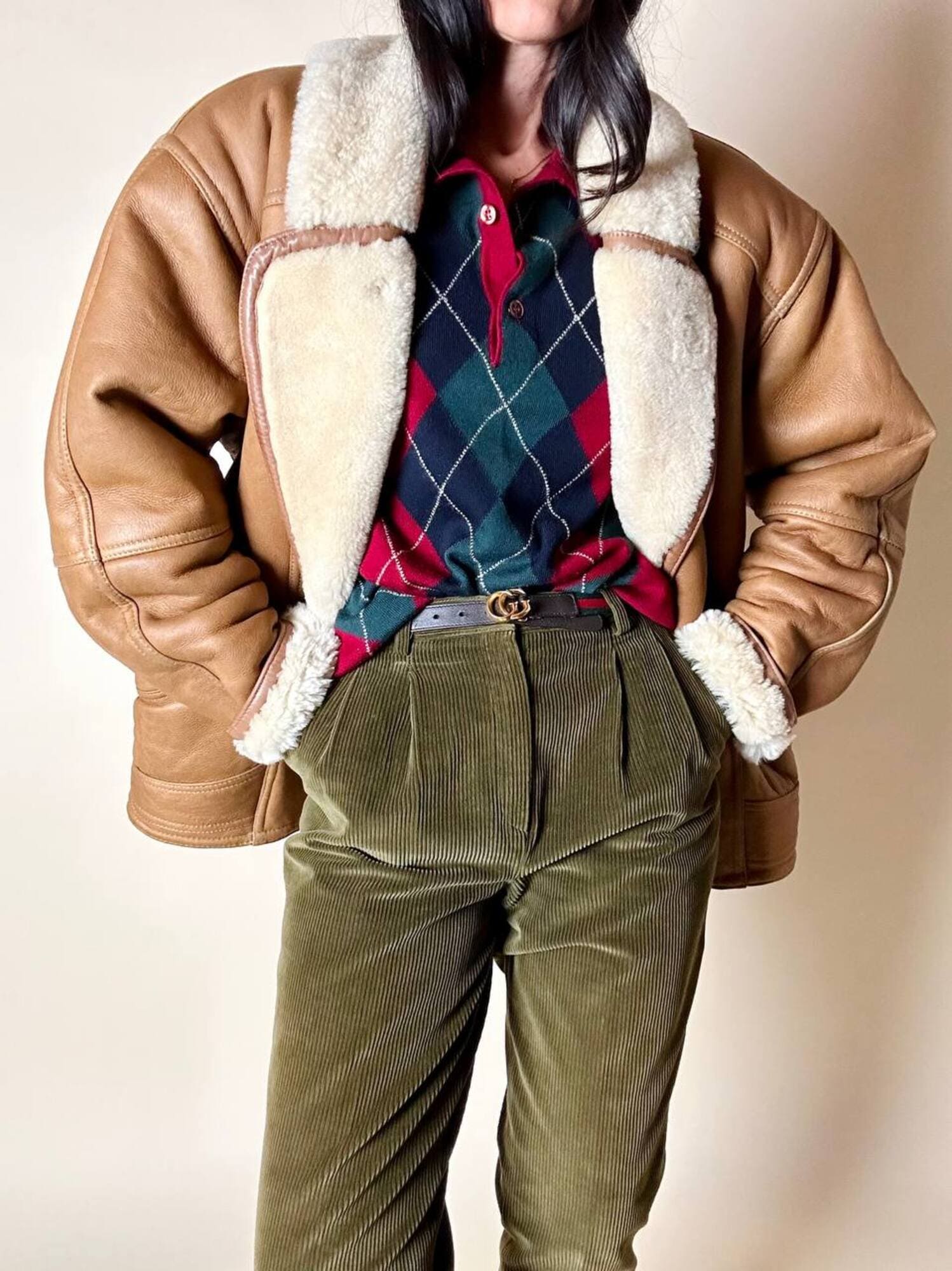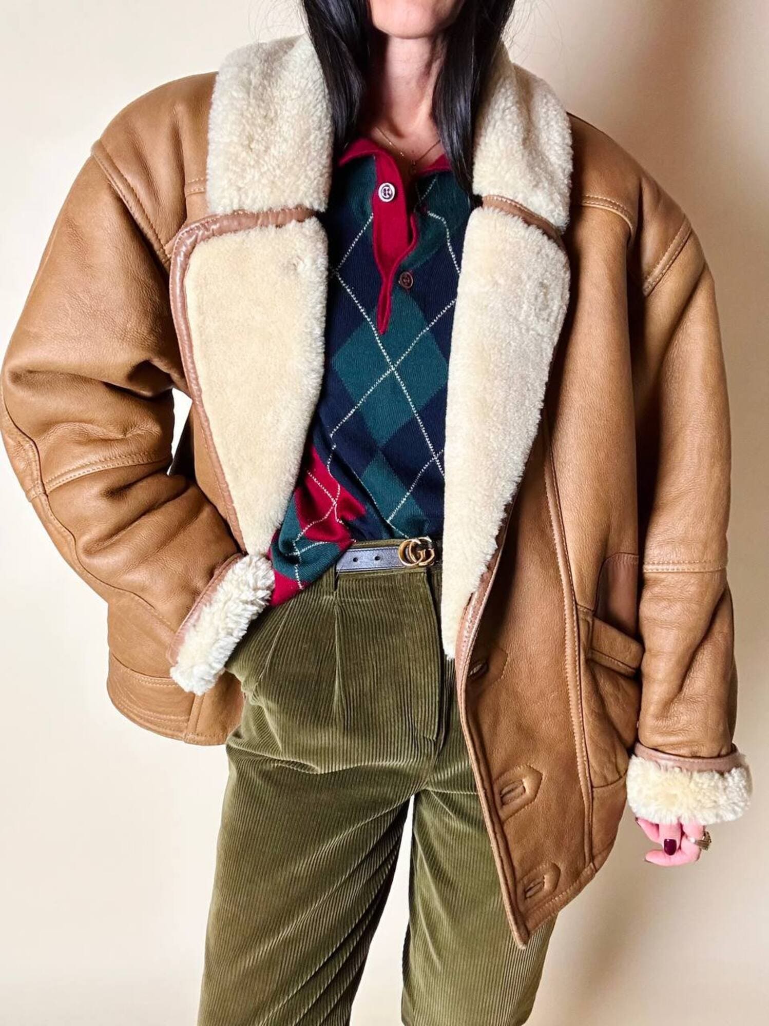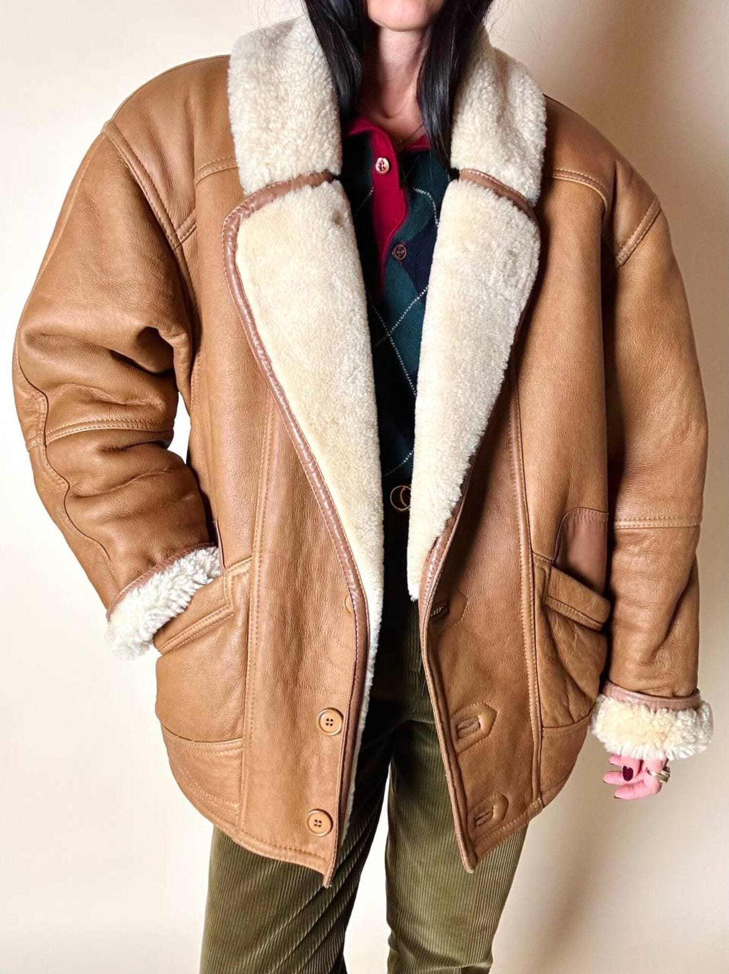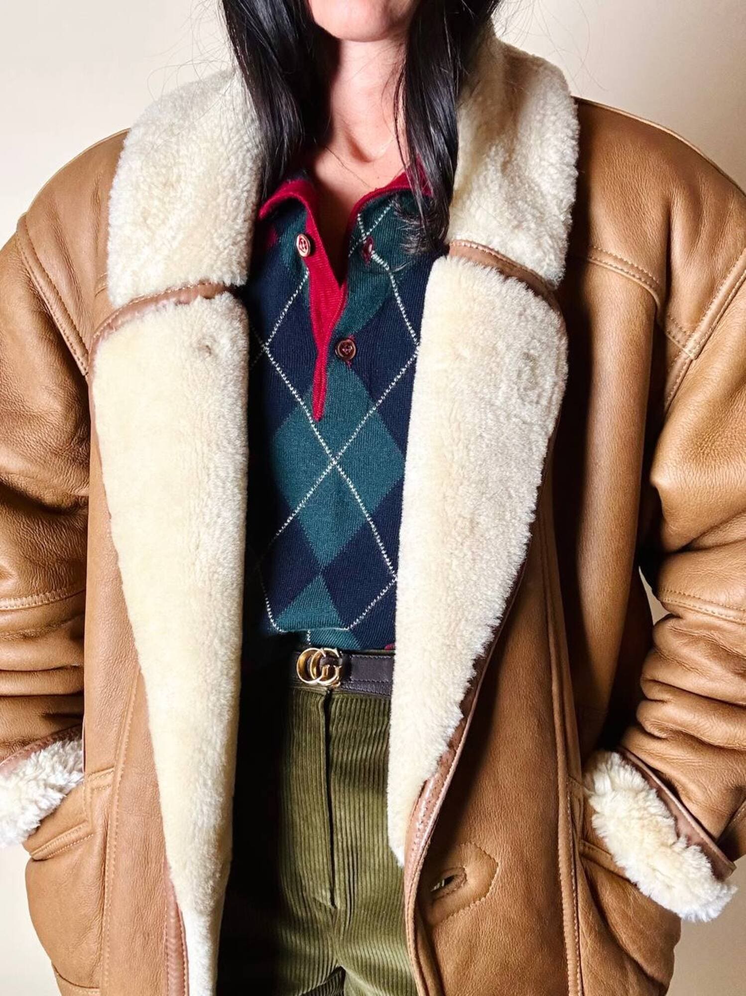 Ottime condizioni. Segnalo il vello leggermente più scuro nella piegatura del collo. Piccole imperfezioni, venature o variazioni di colore sono caratteristiche naturali della vera pelle, testimoniano la sua autenticità e unicità.