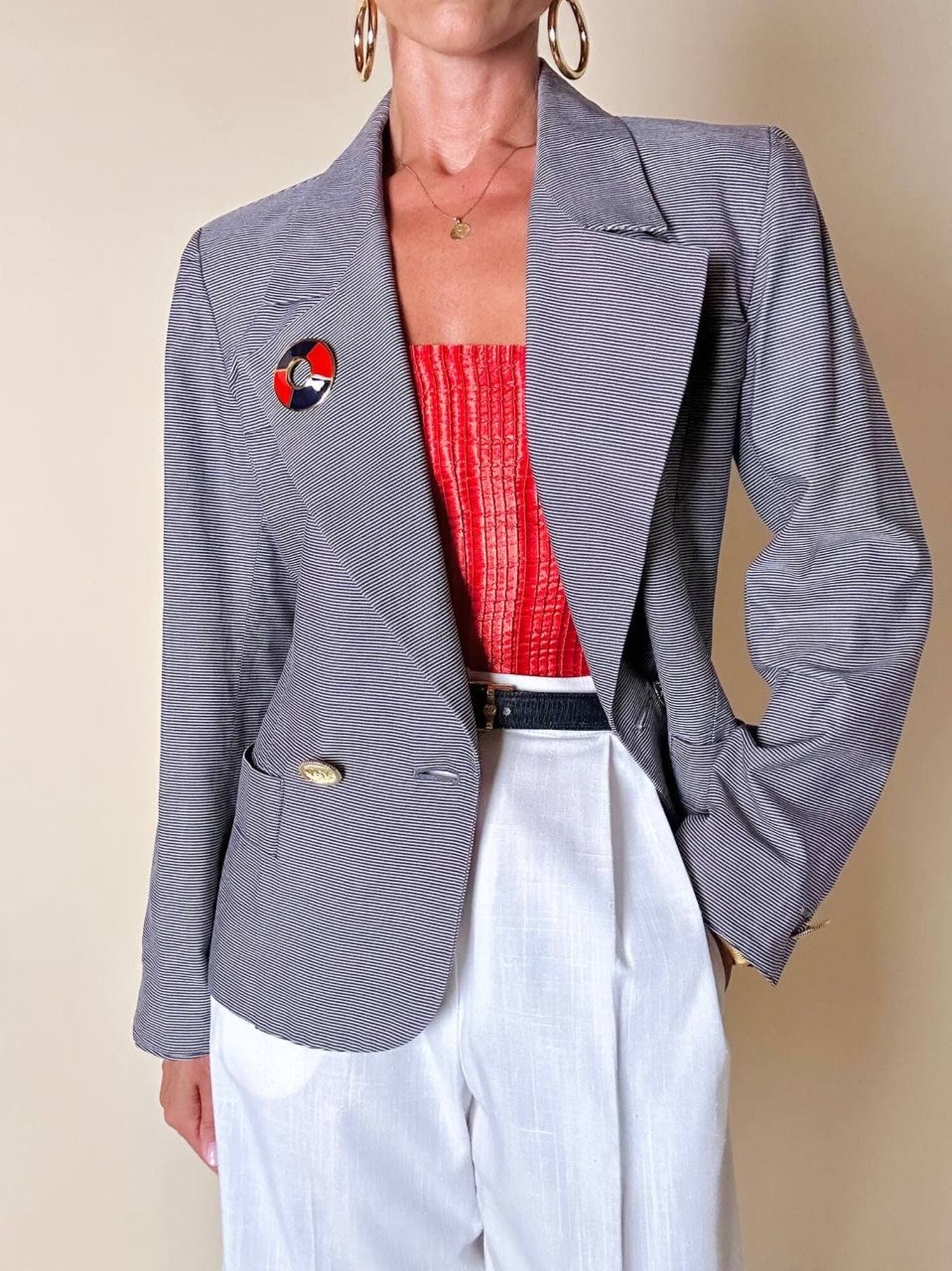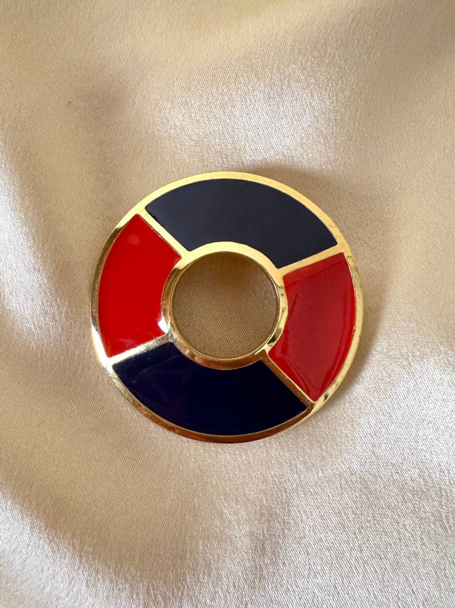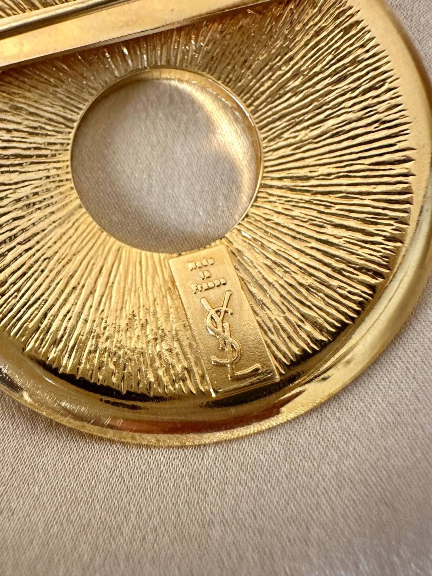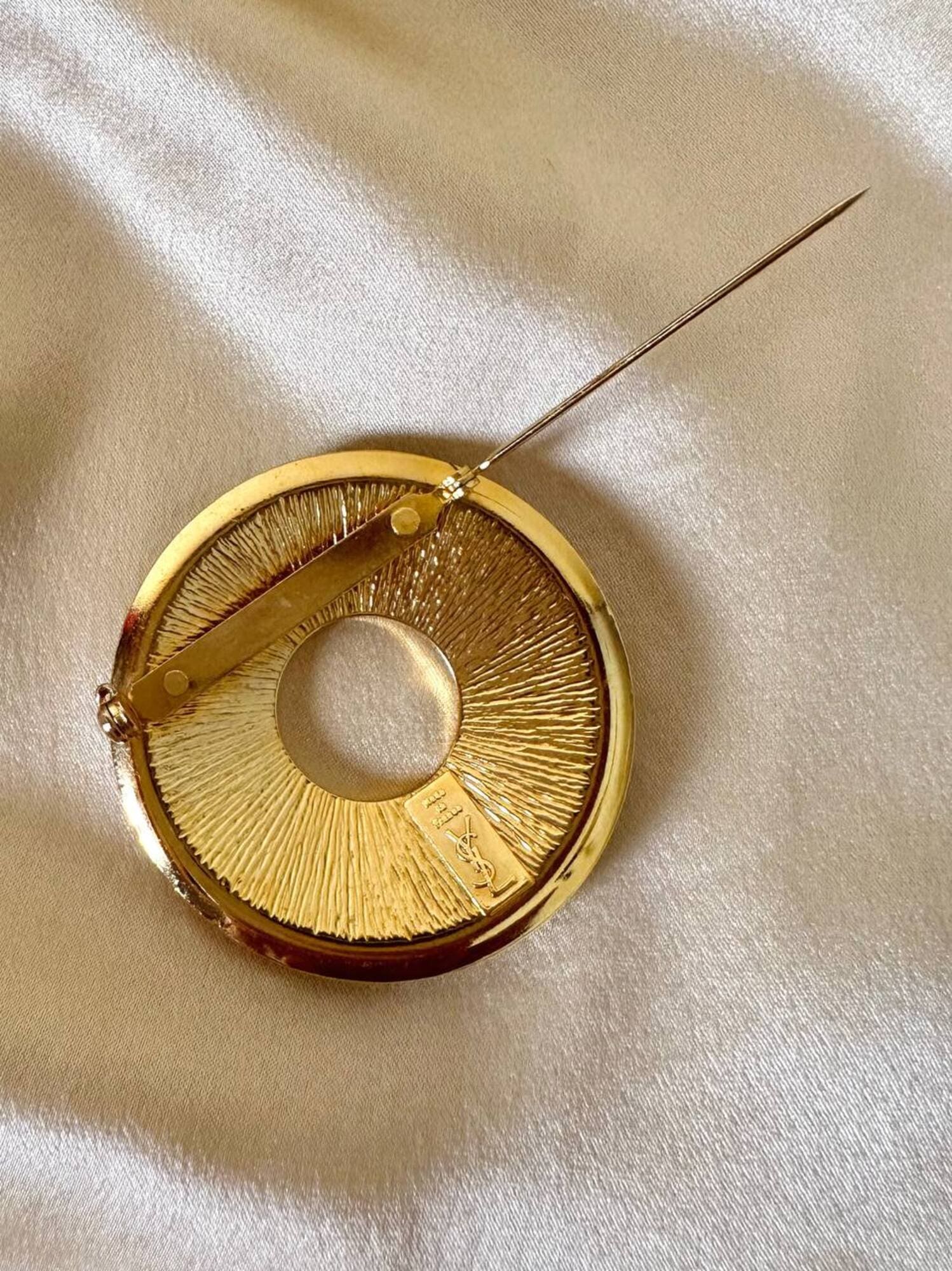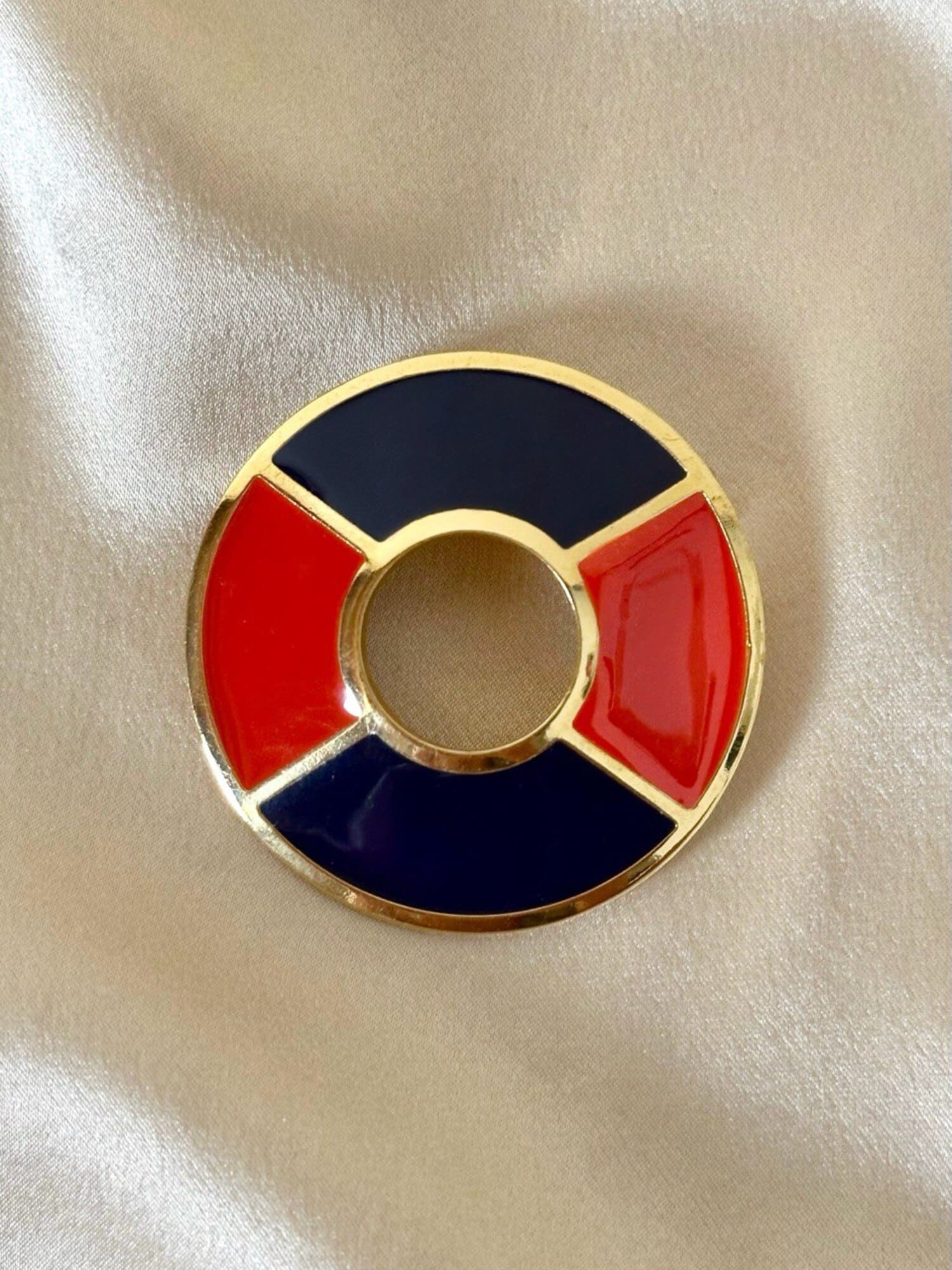 Piccola, preziosa, iconica: questa spilla firmata Yves Saint Laurent unisce la creatività della maison a un’estetica raffinata e giocosa, ispirata all’universo nautico. Realizzata in metallo dorato lucido, la spilla ha la forma stilizzata di un salvagente, reinterpretato in chiave gioiello grazie all’alternanza di smalto rosso e blu intenso che ne definisce i volumi con equilibrio e vivacità. Nel retro è presente il punzone “YSL Made in France”. Un accessorio originale e sofisticato, perfetto da appuntare su blazer, giacche, camicie o cappotti per aggiungere un dettaglio couture dallo spirito marinaro, elegante ma ironico. La firma “Yves Saint Laurent” incisa sul retro ne certifica l’autenticità e il pregio.