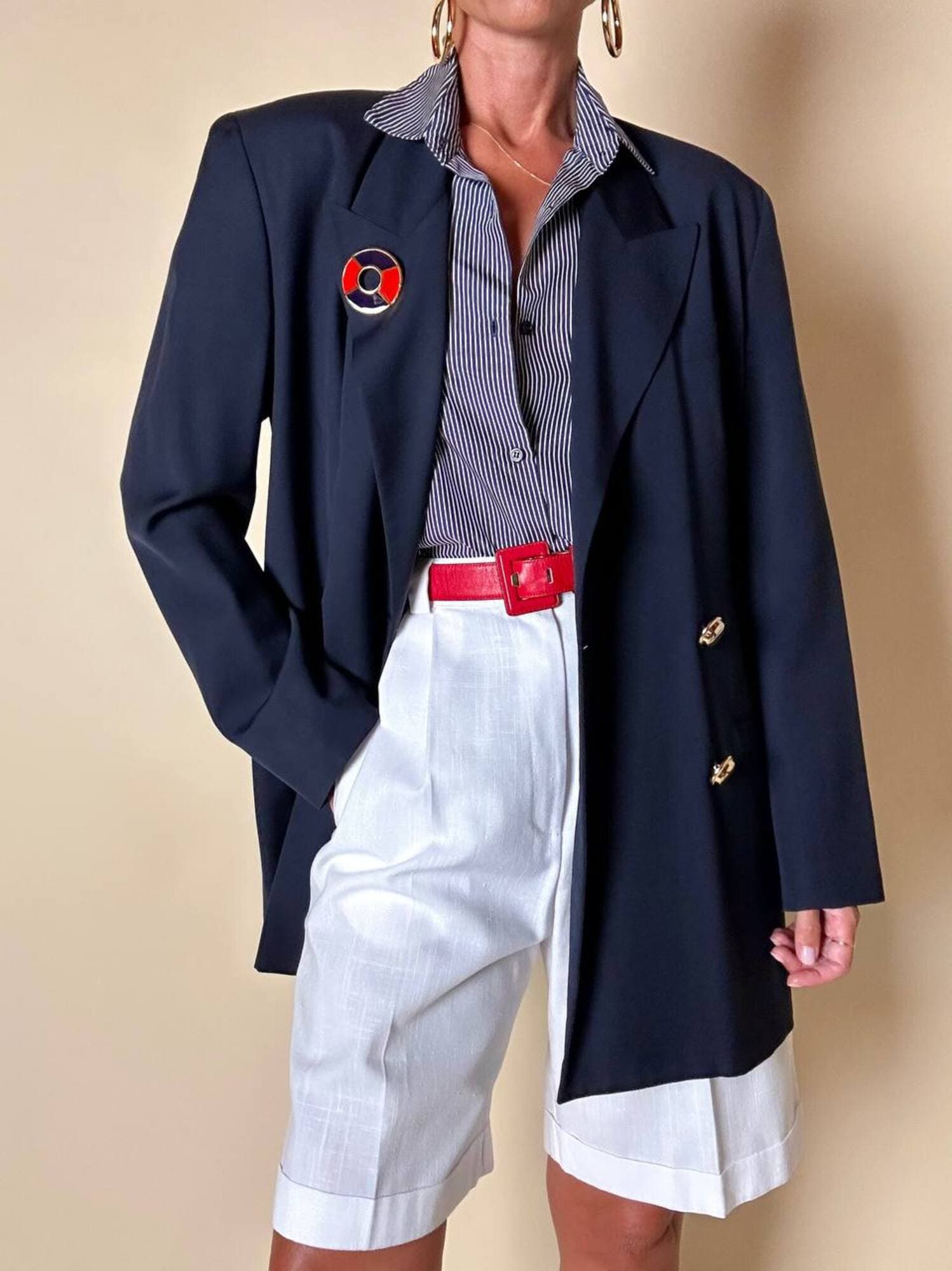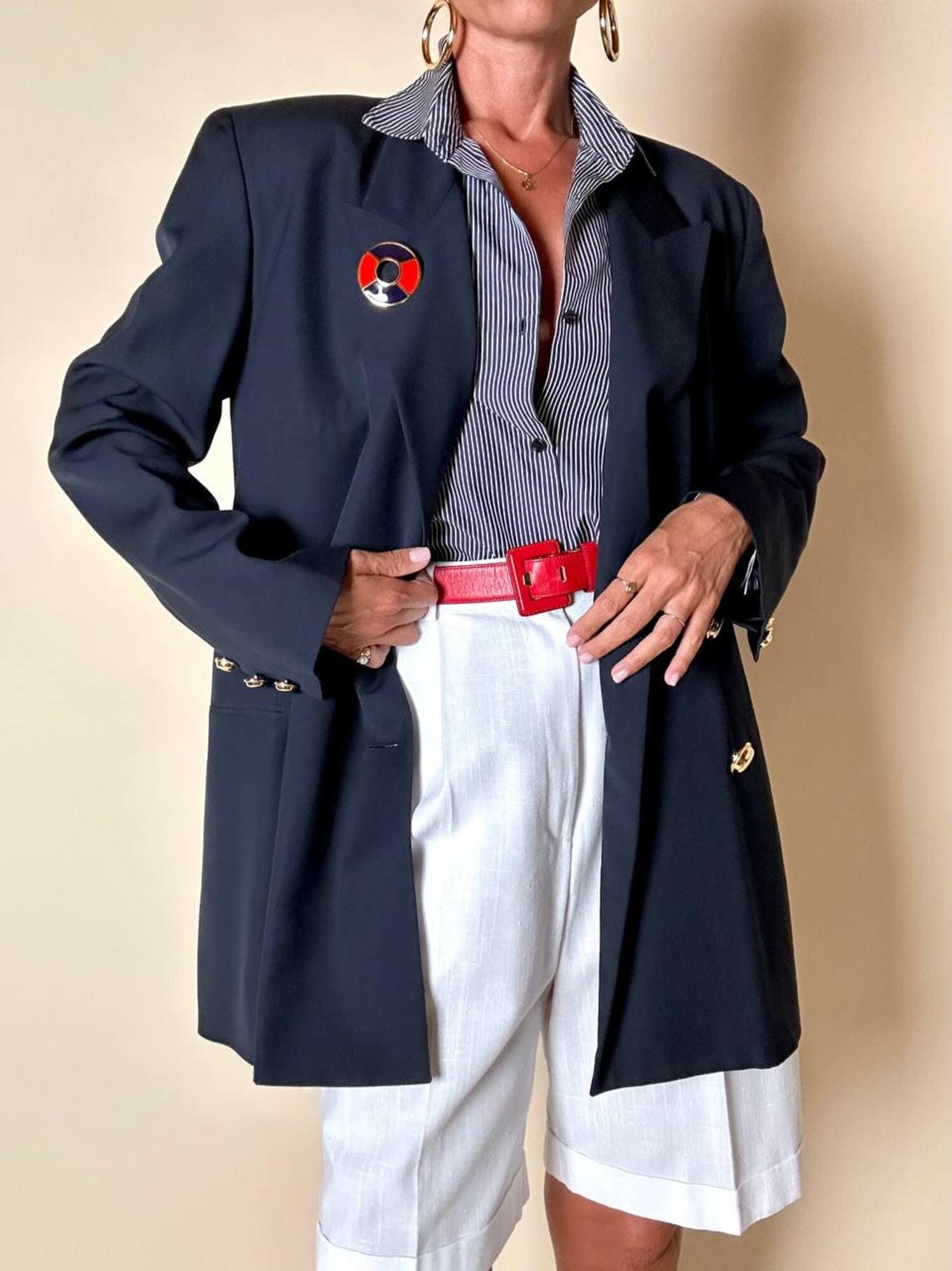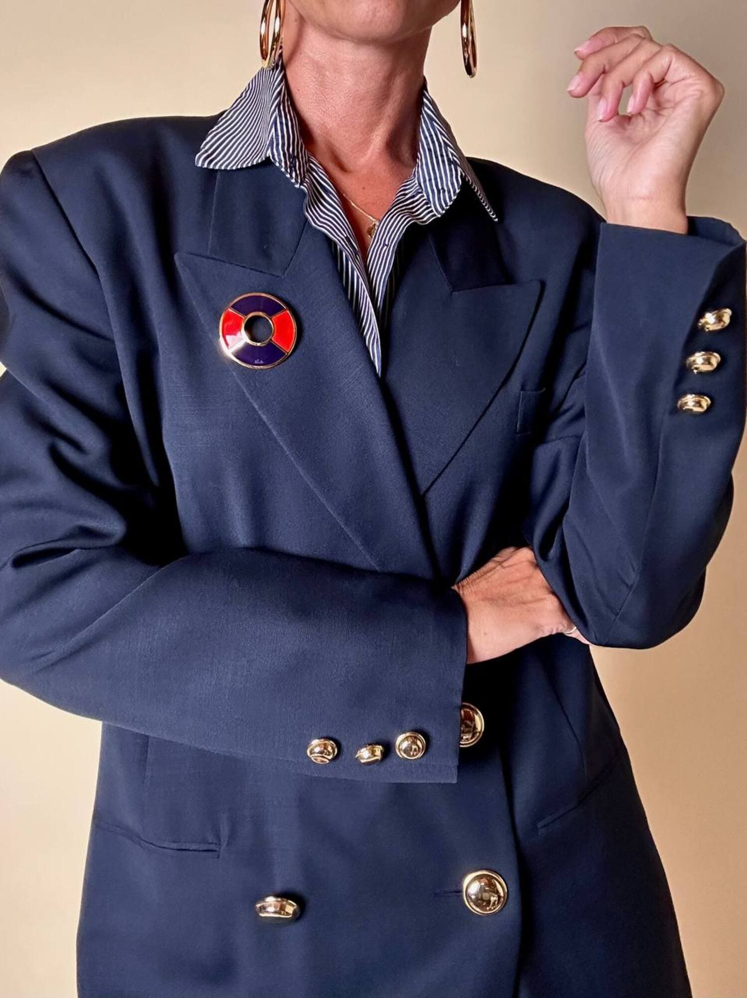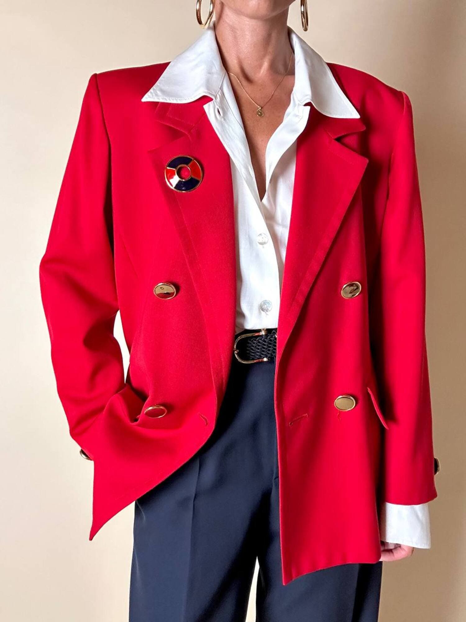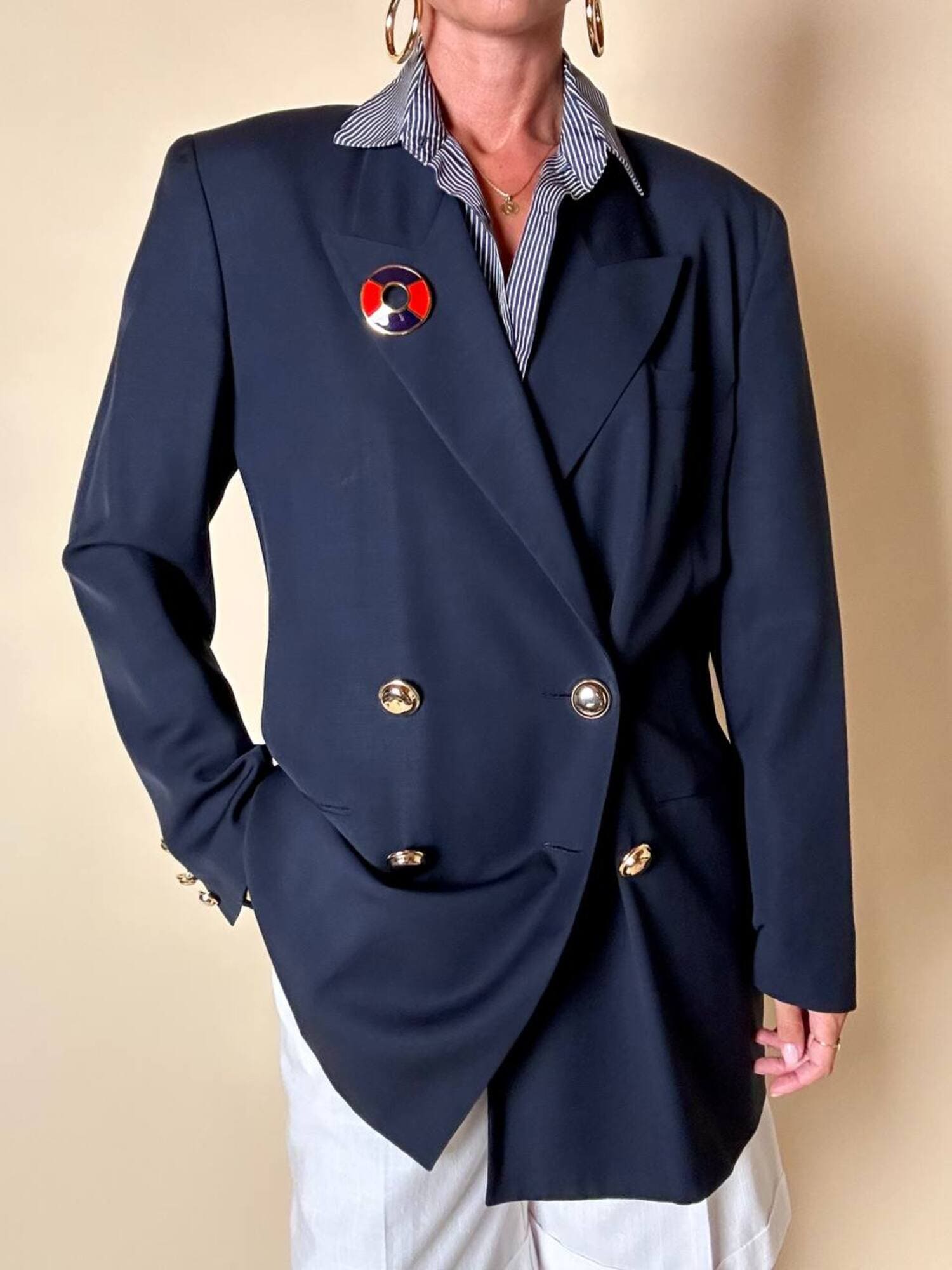 Piccola, preziosa, iconica: questa spilla firmata Yves Saint Laurent unisce la creatività della maison a un’estetica raffinata e giocosa, ispirata all’universo nautico. Realizzata in metallo dorato lucido, la spilla ha la forma stilizzata di un salvagente, reinterpretato in chiave gioiello grazie all’alternanza di smalto rosso e blu intenso che ne definisce i volumi con equilibrio e vivacità. Nel retro è presente il punzone “YSL Made in France”. Un accessorio originale e sofisticato, perfetto da appuntare su blazer, giacche, camicie o cappotti per aggiungere un dettaglio couture dallo spirito marinaro, elegante ma ironico. La firma “Yves Saint Laurent” incisa sul retro ne certifica l’autenticità e il pregio.